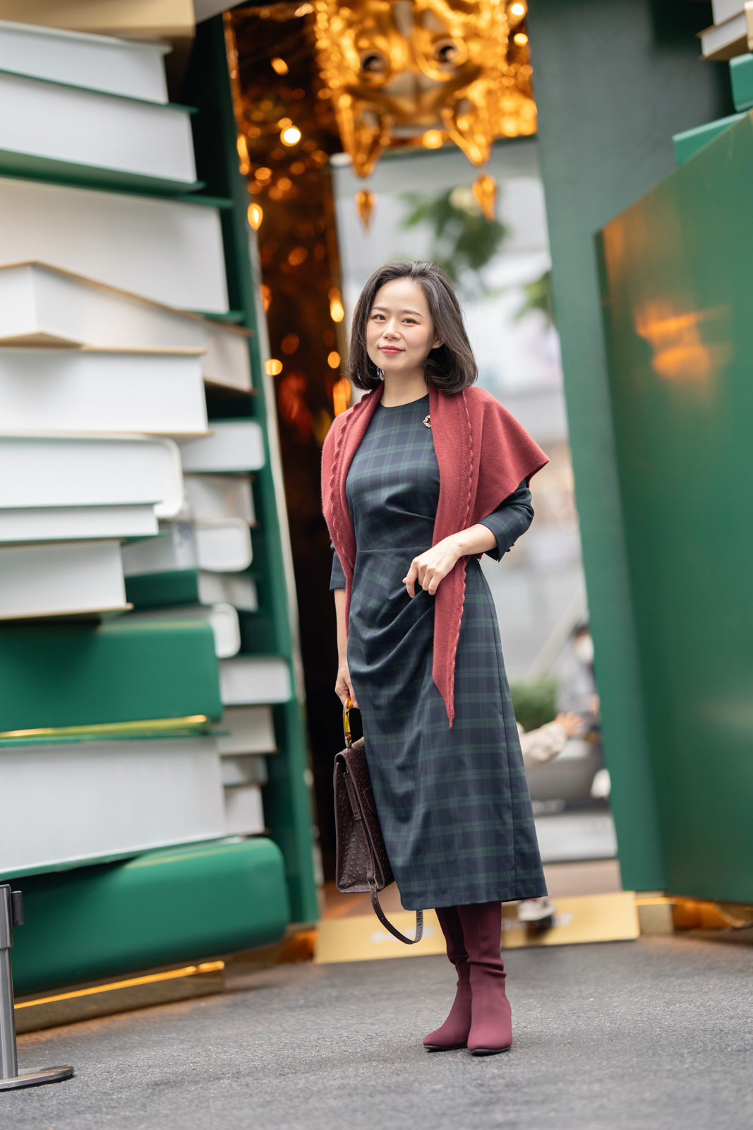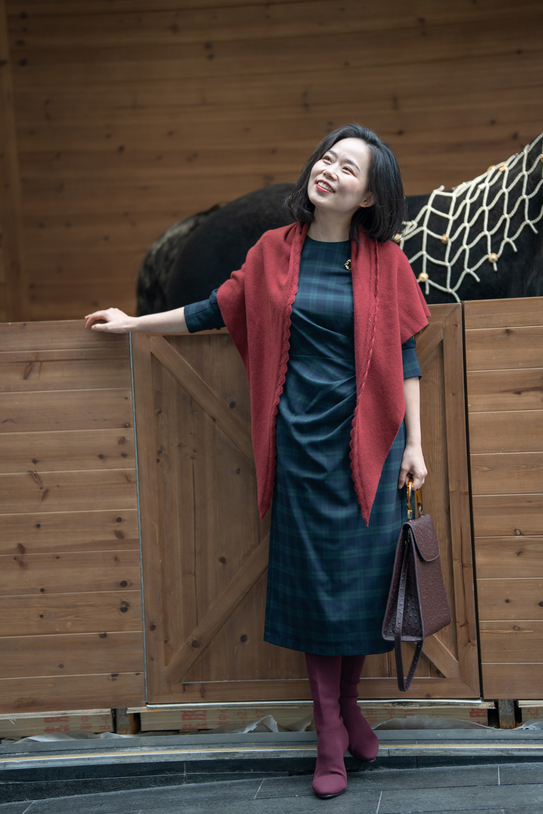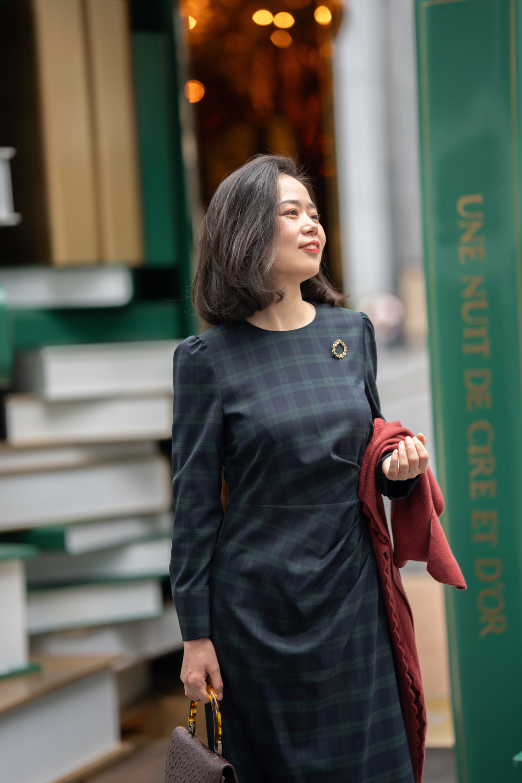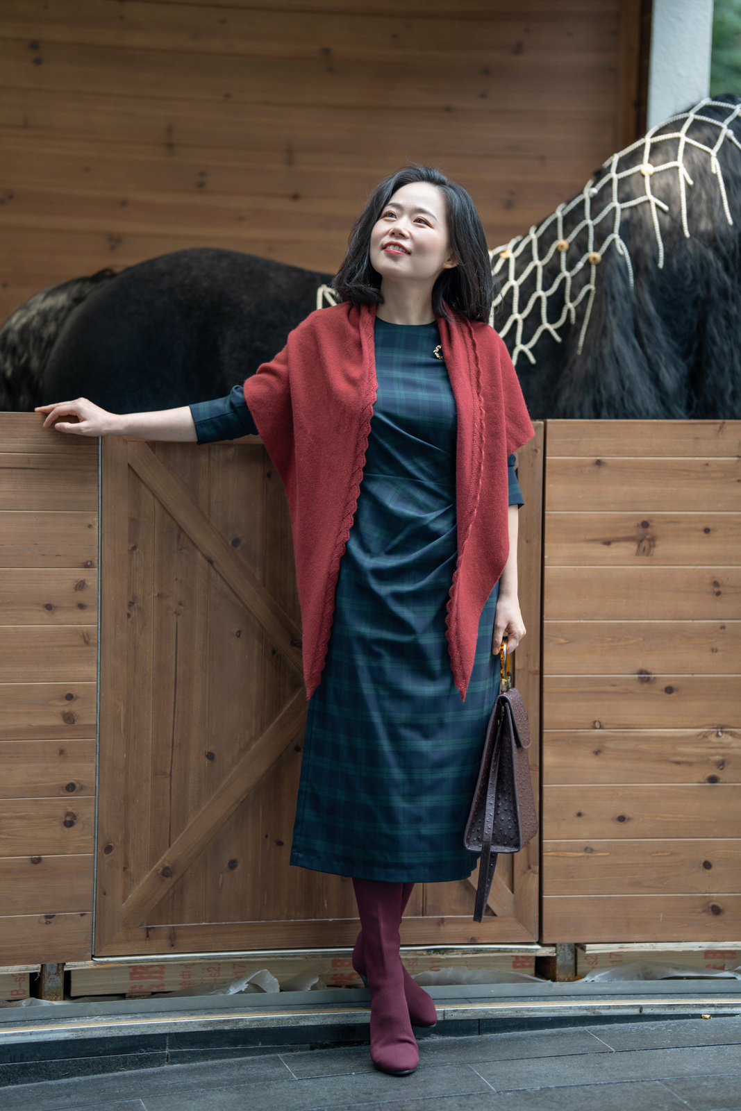 以经典格纹羊毛混纺面料设计的这款连身裙,有端丽的气质,轮廓不紧也不松,充满值得信任的美好女人味。蓝绿交织的经典苏格兰格纹如高地上的原野,悠远中焕发蓬勃生机,蕴藏坚韧长久的生命力……周身低调之中透露着丰富的细节,巧妙的褶裥设计以不规则的流动曲线修饰腰腹,增加创意与灵动感,举手投足间展露淑女自信迷人姿态。在穿衣自由、流行凌乱的时代,“结果的生命树”以持守经典之姿传递内心不被环境所扰的安稳,以珍爱形象就是珍爱生命的坚持,抵挡世界的喧嚣,以优雅长青之美回应宝贵有爱的生命……