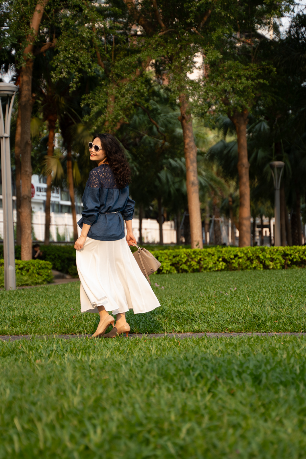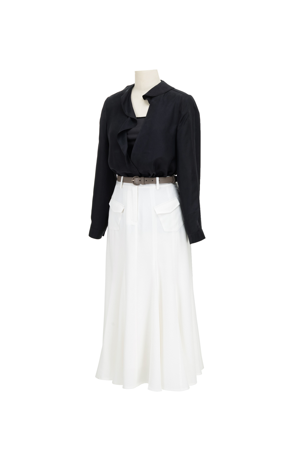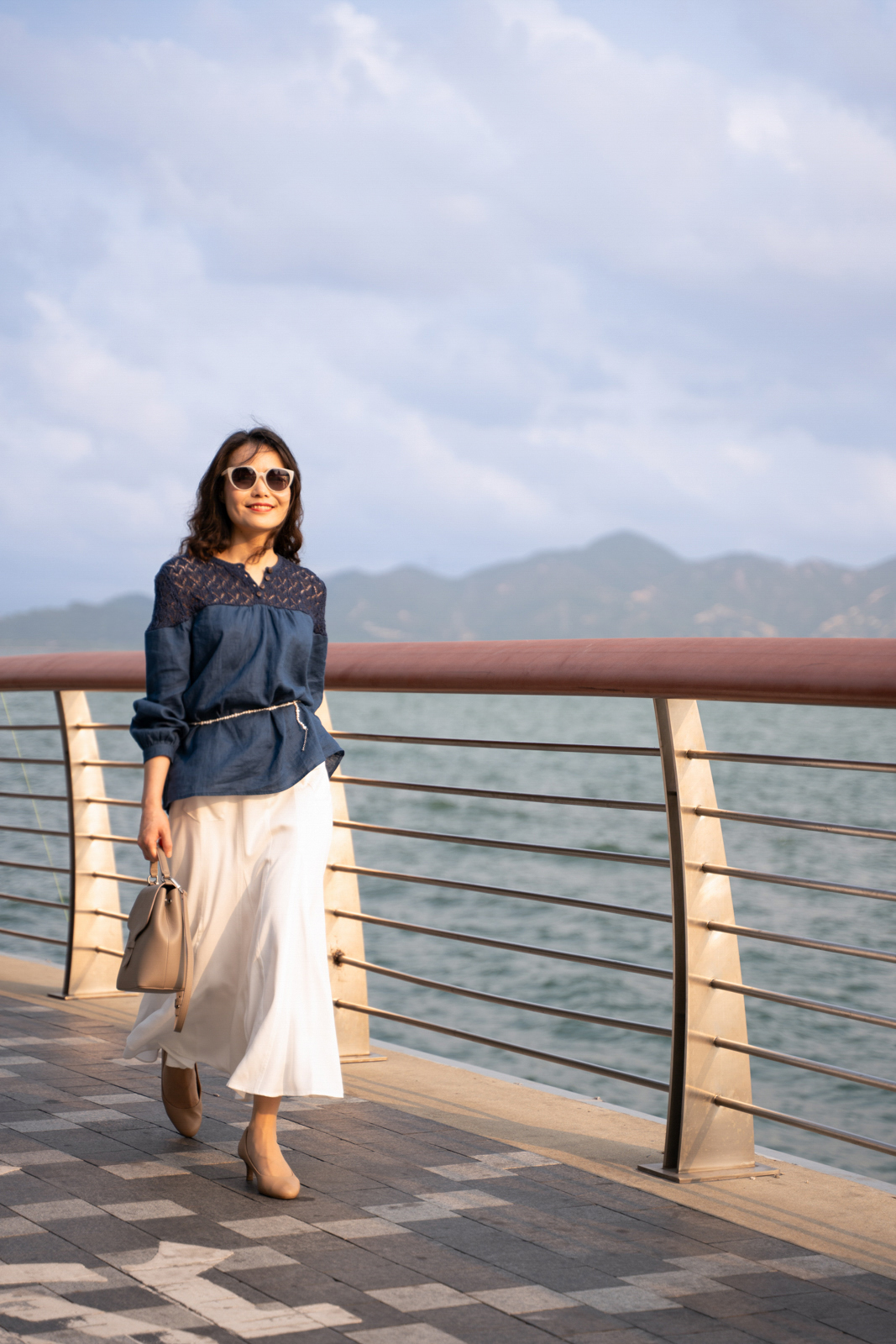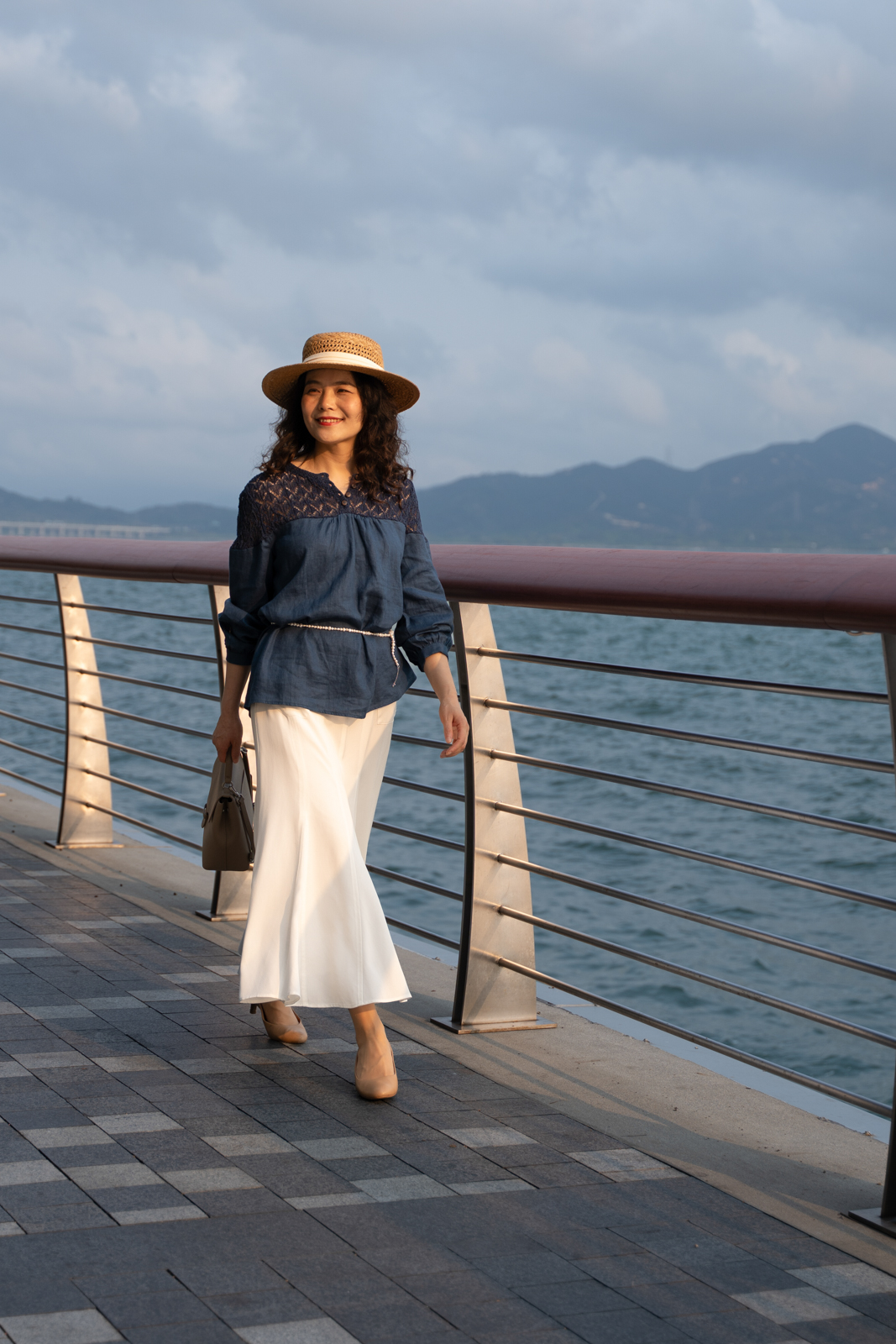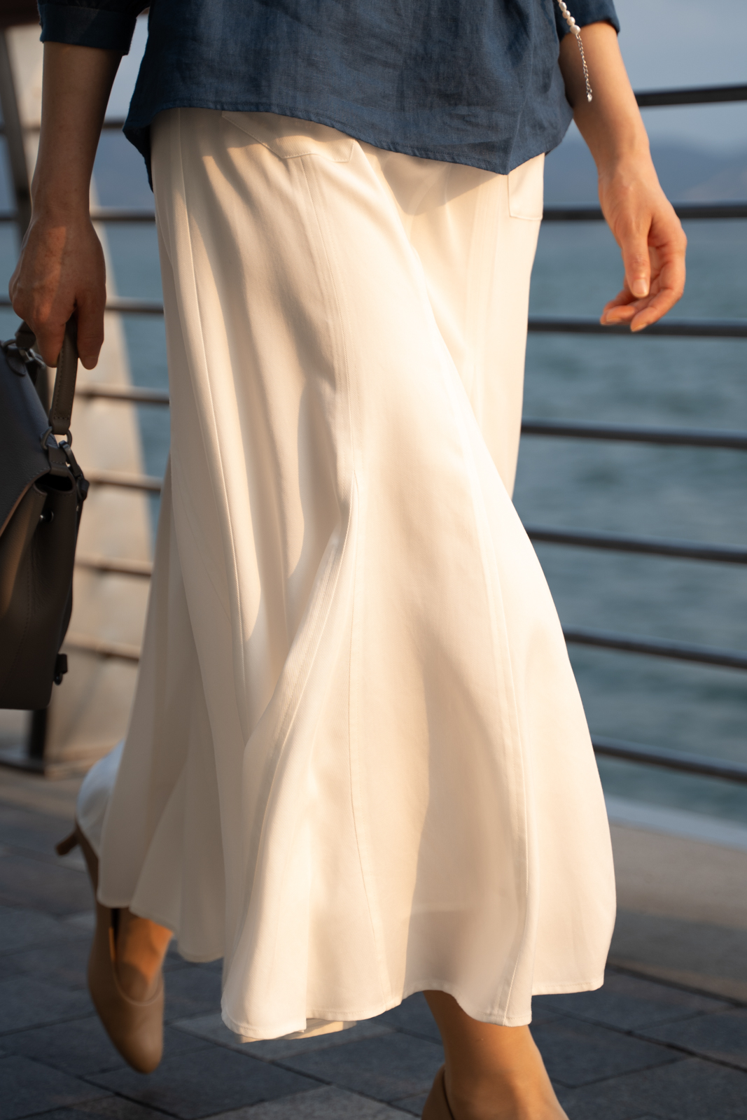 一条白裙子对于淑女而言,不止是一件衣物,它是纯洁与优雅的视觉符号,一袭干净的白色,其间蕴含着温柔、清雅与不动声色的妩媚。此款玛亚系列长半裙采用100%天丝牛仔面料精制而成,自带悬垂与清凉感,巧妙的12片式分割剪裁,营造修身立体的效果,让半裙盛放出最优雅的轮廓,两侧贴袋设计是点睛的一笔,打破柔美的线条,注入了潇洒的气息,让其气质更加的丰富迷人。