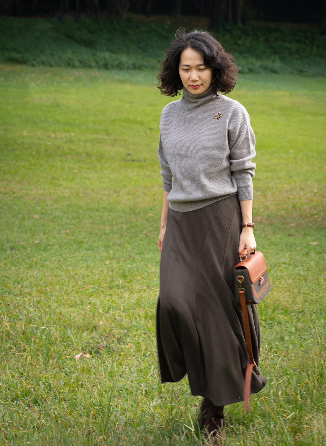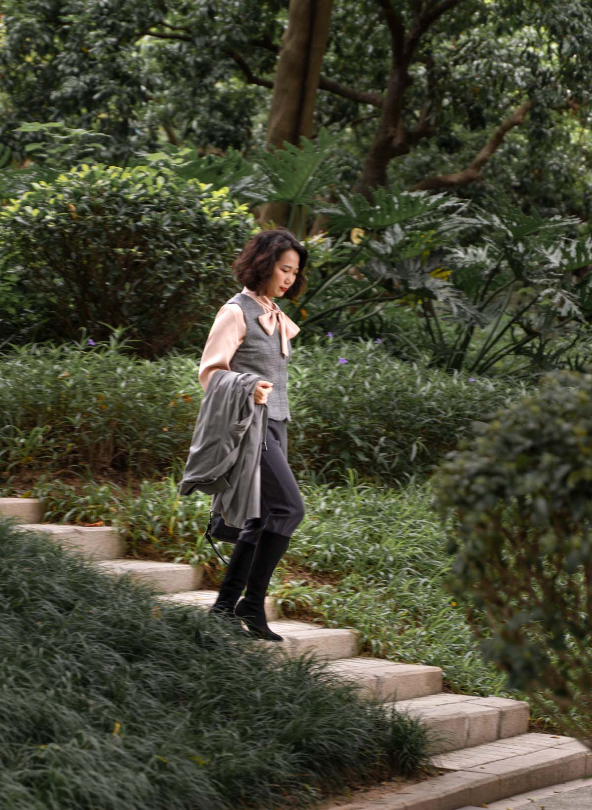美妙的配乐让音感丰富有层次,总能将主题衬托得鲜明生动,而衣橱里如何能少了美妙的配乐呢?完整的造型要有主有次、有轻有重,搭配比例得当才精彩、才好看……“美妙配乐”像一曲发自肺腑倾泻而下的乐歌,有流畅的线条,有飘逸的动感,不规则的压褶方式充满情感的张力,如同起伏的音符组成美妙的配乐……使用3米多富足的进口面料制作却不显膨胀,细致巧妙的压褶艺术带来紧腰松摆的韵律,令它站立是收缩的、走动时是飘逸的,有垂坠的灵动之美。色彩性格谦逊包容的灰色有着细... 美妙配乐 人字纹常常出现在有老派生活理念、不张扬、不追求流行的人身上,越是喜欢经得起品味的事物,越是喜欢挖掘美学底蕴的人,越能理解人字纹身上代表长久、低调、淡定、内敛的美学价值……她是都市里从容优雅的身影,周围人行色匆匆,唯有她独行于风中,脚步笃定踏实,有自己的节奏……一贯而下的线条利落有型,包容的气度呈现松而不垮的精神气质,让人印象深刻;她是英伦乡间悠然散步的身影,人字纹的格调经典有历史底蕴,考究而不张扬,米灰色温暖含蓄,轻松将双手放置于两侧斜... 淡定的风景