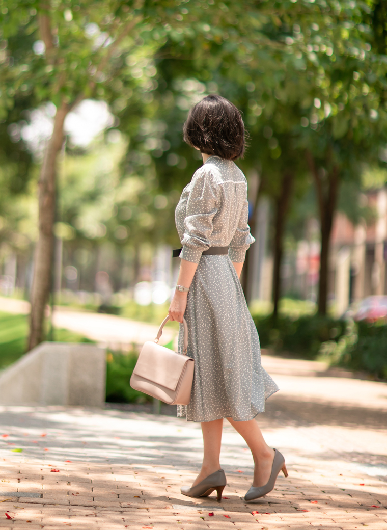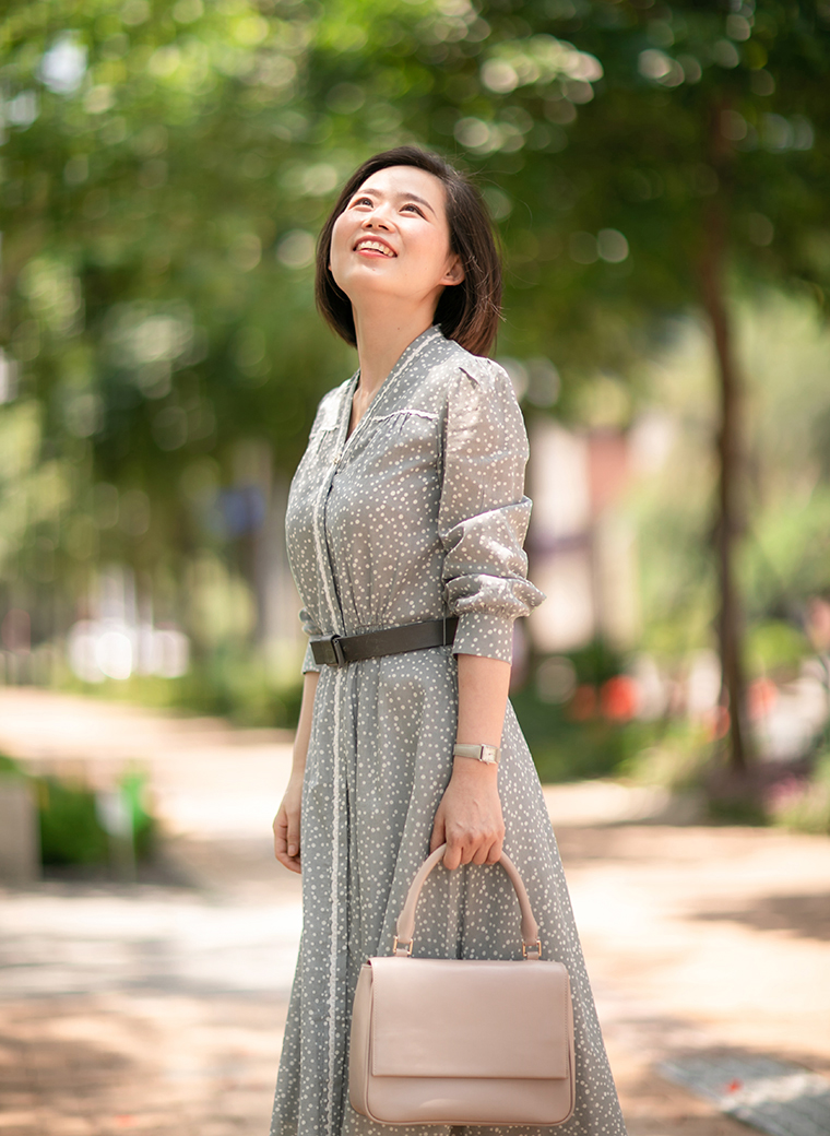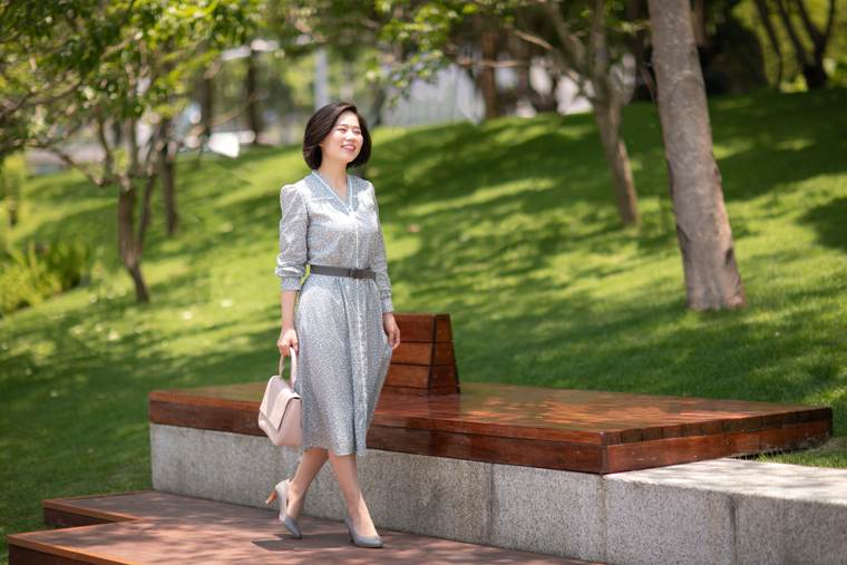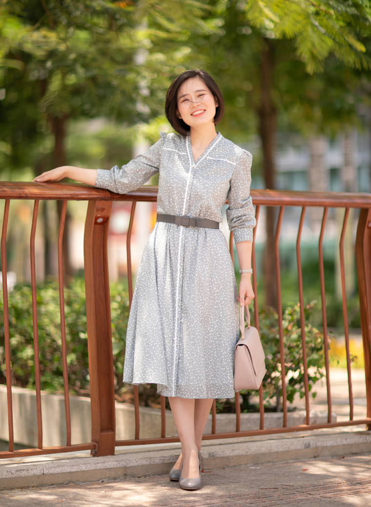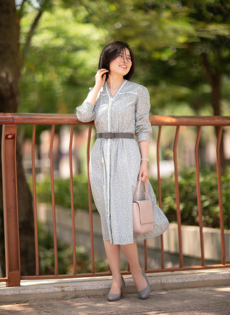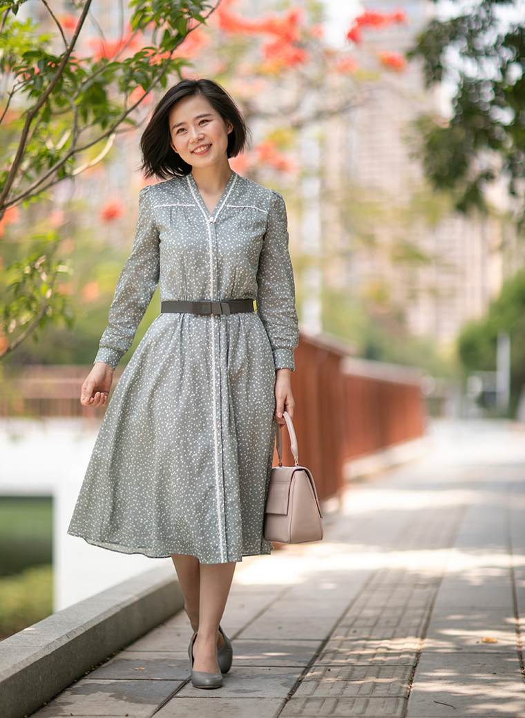 也许你会问,炎炎夏日我会穿长袖吗?这正是设计师优美的带领和体贴的考量。古朴透气的棉麻纱材质极具呼吸感,虽是长袖,却不失炎夏所需的凉快,为你轻松抵御燥热侵袭,更有在大温差的室内室外切换的体贴——为你遮阳防晒,亦为你抵挡空调风的侵袭。柔和、谦逊、清雅的灰色上,自由地飘落着大小不一的白色波点,带给人安静、恬静、温婉的喜悦;前胸、后背、领口、门襟都镶嵌了白色小花边,细腻精美,像一段段贴心清洁的话语,为夏天写下美丽注脚……