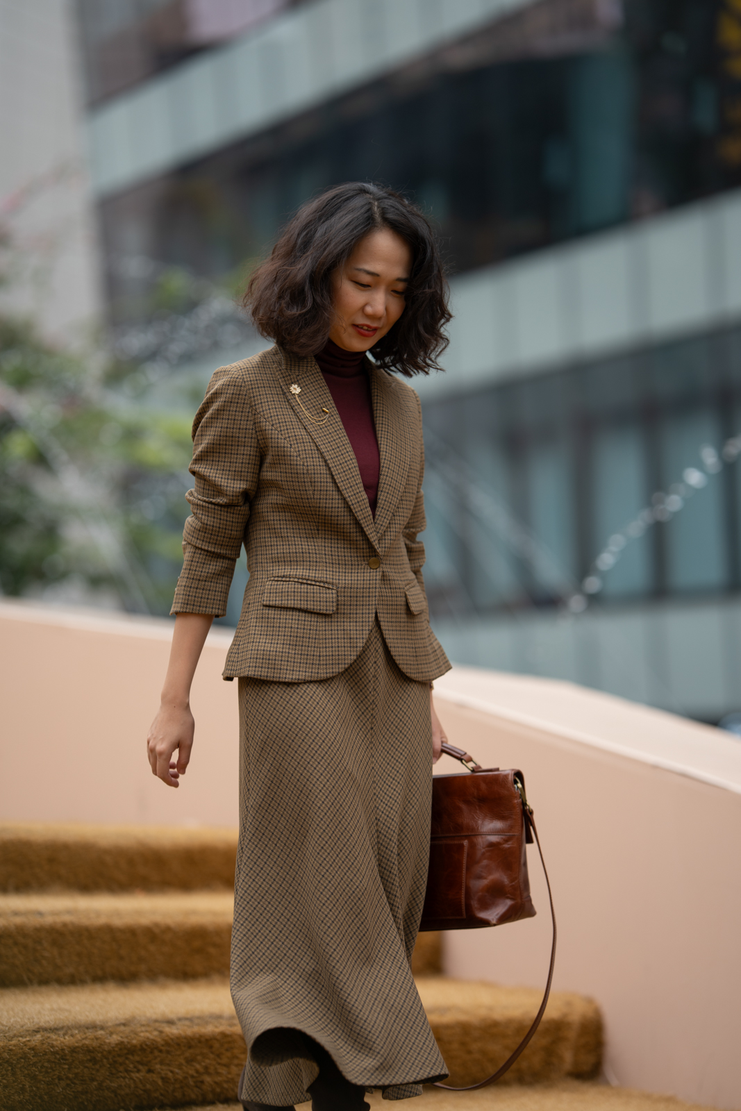 “我的坚持”会在时间的检验中脱颖而出,不突兀的表达正是它被铭记的关键。谦逊的灰与诚恳的褐交织,再现千鸟格的隽永与经典。不易皱的进口纤维面料,令Jacket廓形清晰有致、舒适有型,挺括的同时却不粗硬。经典的枪驳领和别致的袋盖,令简洁的设计基调深入人心。“我的坚持”是秋冬里一份温暖高雅的情调,亦是衣橱中历久弥新的经典,相信淑女不俗的选择将会成就生活品位中一份长情的陪伴……