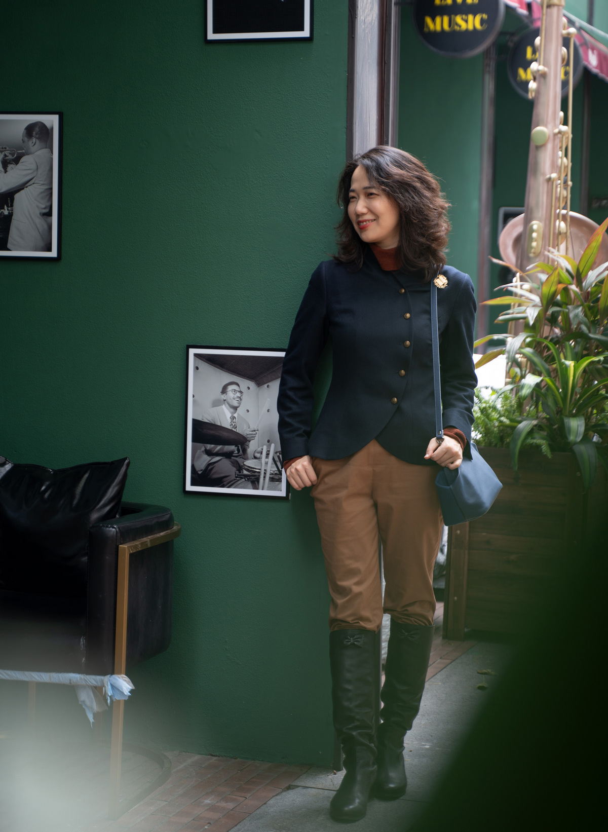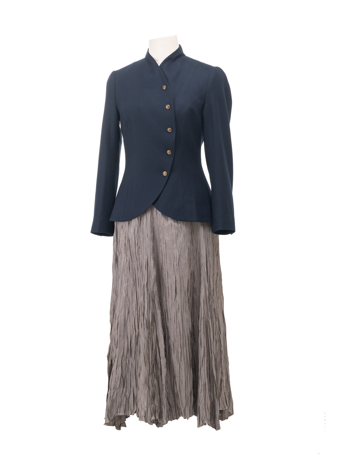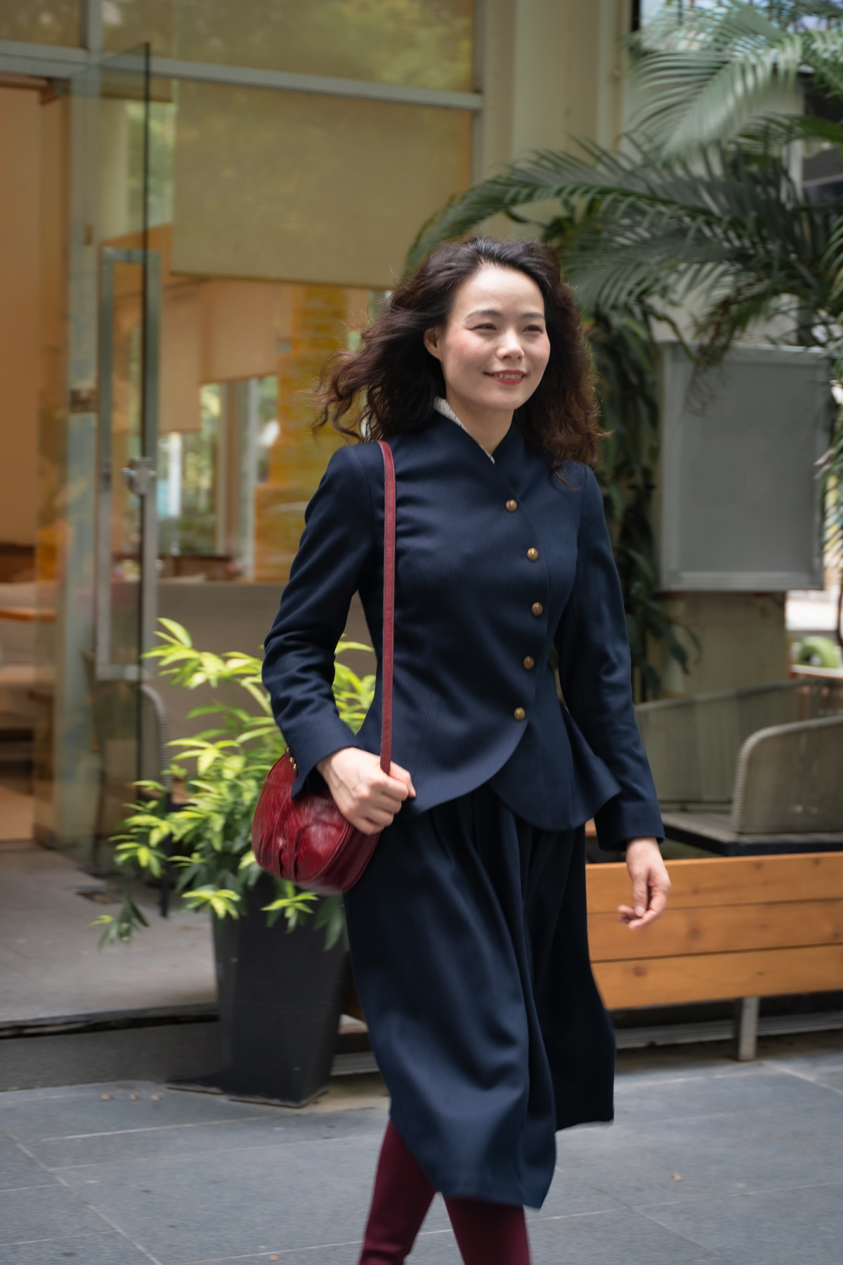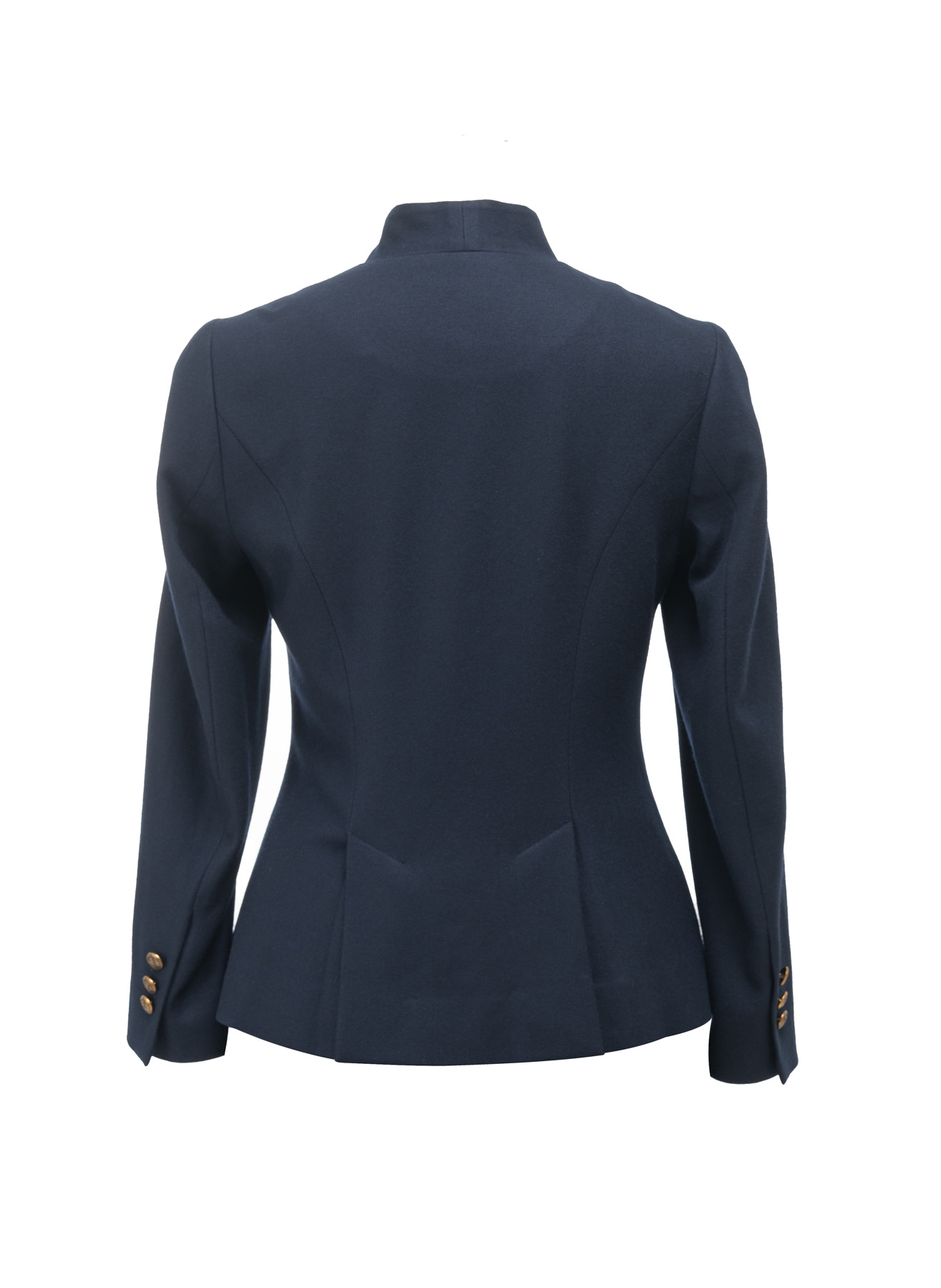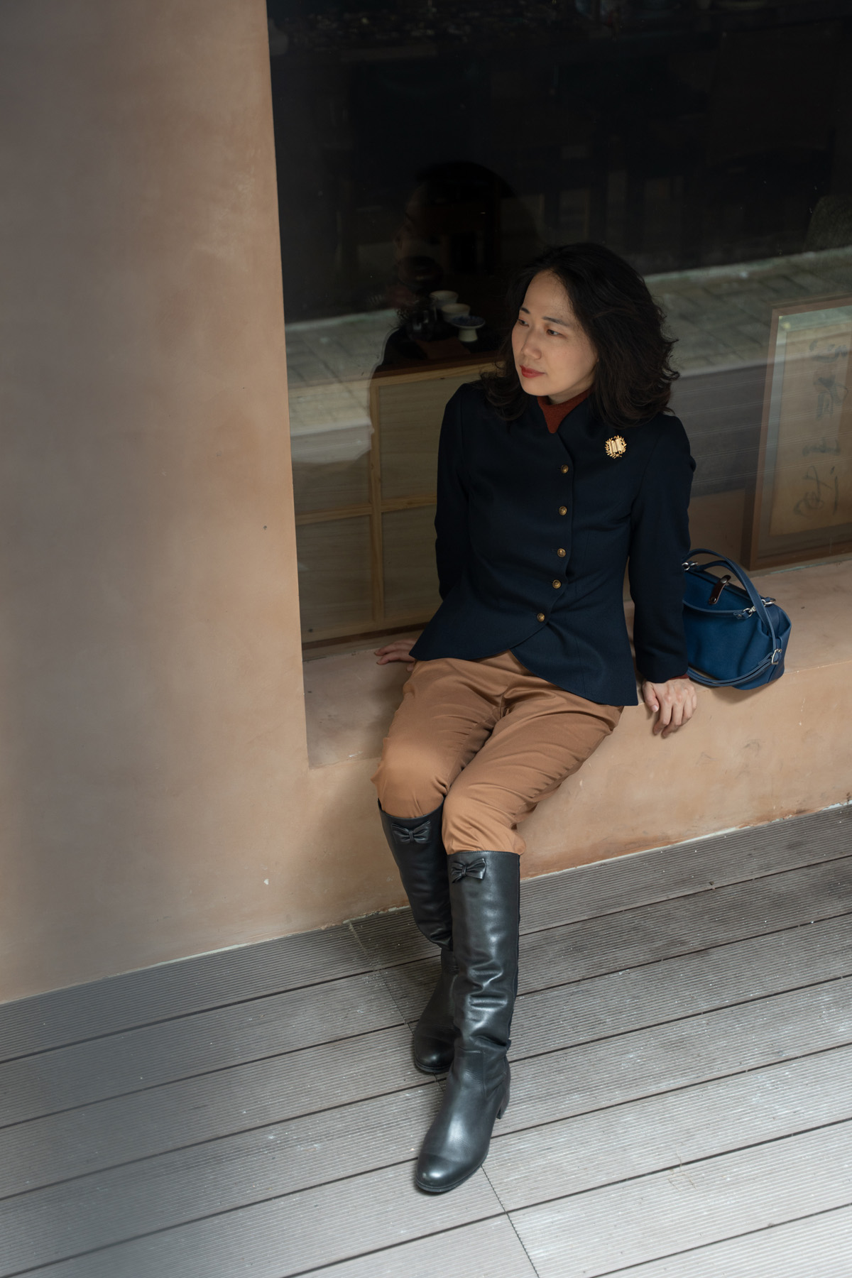全羊毛质地的细腻与柔软是碧波蓝天里的柔情,深蓝的沉稳深邃润饰着内心的宽广与丰富;领口的设计修饰颈部曲线,像天鹅美颈般优美端庄,流畅而下交叠出的弧线形门襟设计灵动自然,好似湖面泛起的波澜,古铜色复古扣饰妆点其上像粼粼波光,整体造型昂扬优美,经典实穿,是兼顾品位质感和易搭配性的优雅设计,让淑女安然笃定又竭力生活的精神气质有准确而迷人的表达……
