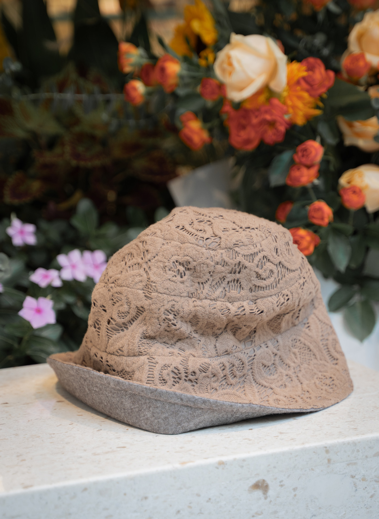 复古精致的帽型结合可双面佩戴的精湛工艺为造型搭配注入精彩的力量。卡其色精美的蕾丝与灰褐色针织羊毛面料碰撞出古典的优雅,既带下温暖的呵护又展现精彩复古的造型,它“宜古宜今”的气质映衬着淑女优雅精致的品格。可折叠易收纳,贴心成为淑女秋冬保暖与形象的美丽助手……