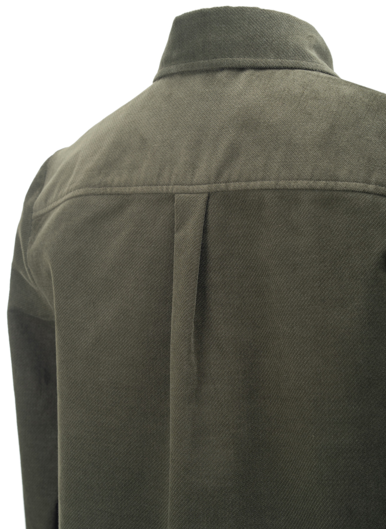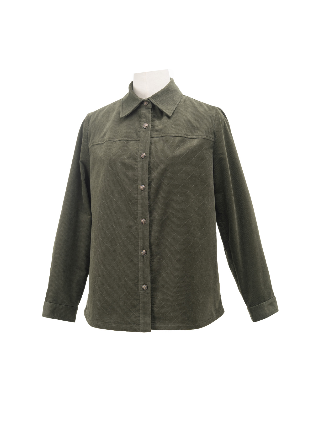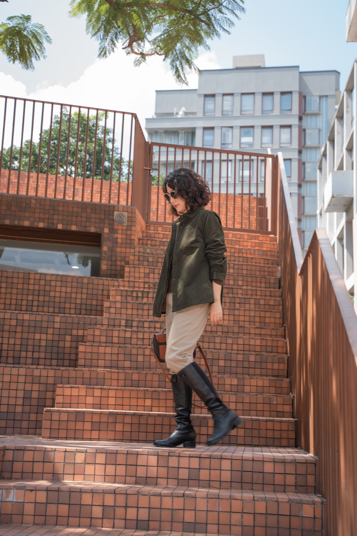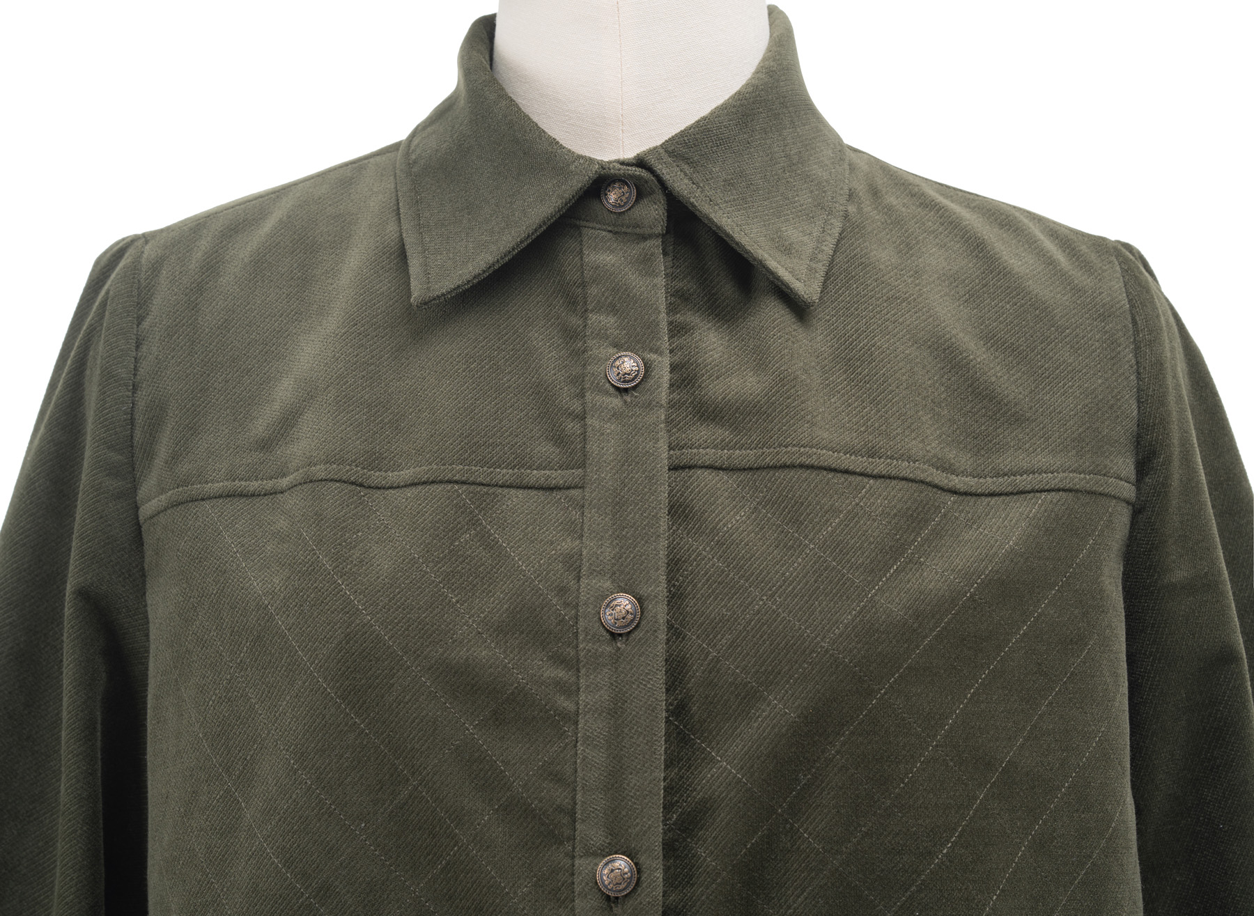 有故事的设计总是很迷人,“故事”也会因穿着者的生命历程而变得生动、隽永、丰富、精彩……“故事”的开头,是来自对永恒生命的向往,那一抹深沉的橄榄绿不畏时光的磨砺,总以谦和平稳积极的笔触书写,给人永不磨灭的希望。“故事”在进口平绒细腻的质感里书写温暖,精湛的车缝技术勾勒出若隐若现的菱形格纹,仿佛在复古纸页上描画书写的格式,规整精致,又赋予层次。再以古铜色金属扣做“标点”,充满怀旧的情感,是对美好时光的追忆与纪念……