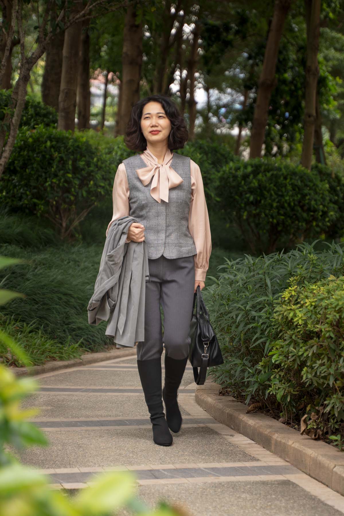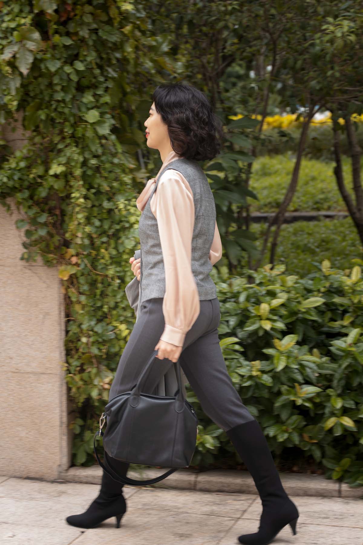 在经典衣橱中,裤装代表的就是一种轻便、自由行走的生活态度,是健康、潇洒、步履生风的魅力风采。此款灰色人字纹针织修腿裤面料采用聚酯纤维、天丝、氨纶与羊毛的科学配比,兼顾了舒适、保暖、修饰腿型及经典品位,是日常穿搭的实用单品。简约的腰节最能修饰腰腹线条,同时极佳的弹力确保舒适穿着的体感,考究的分割线轻描淡写却极具修饰性,视觉上令腿部线条笔直而纤美!最奇妙的是,它可以外穿也可以内穿,既是英姿如画的靴裤,又可以穿着在裙装里充当温暖呵护的优雅内搭,这实在是秋冬不可或缺的美丽却不冻人好助手。