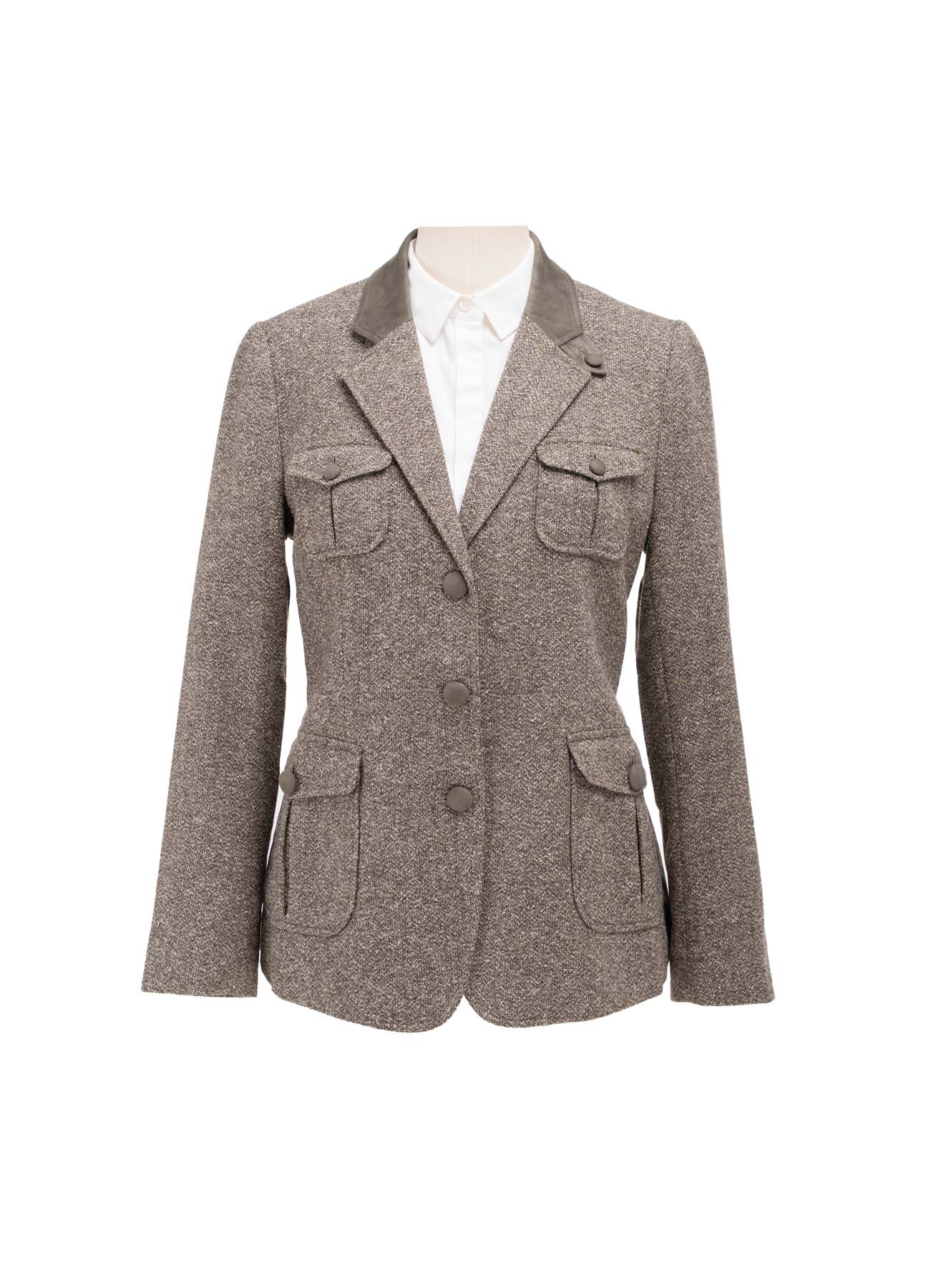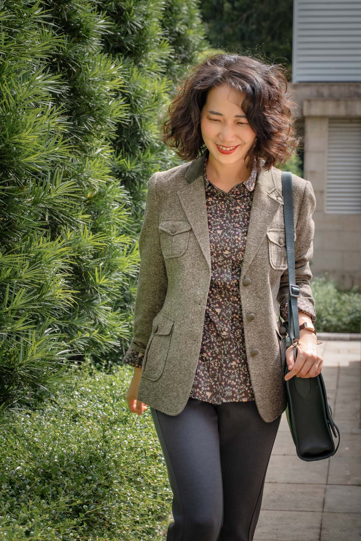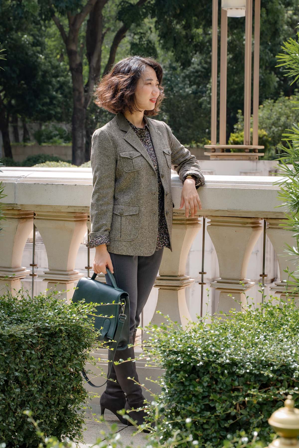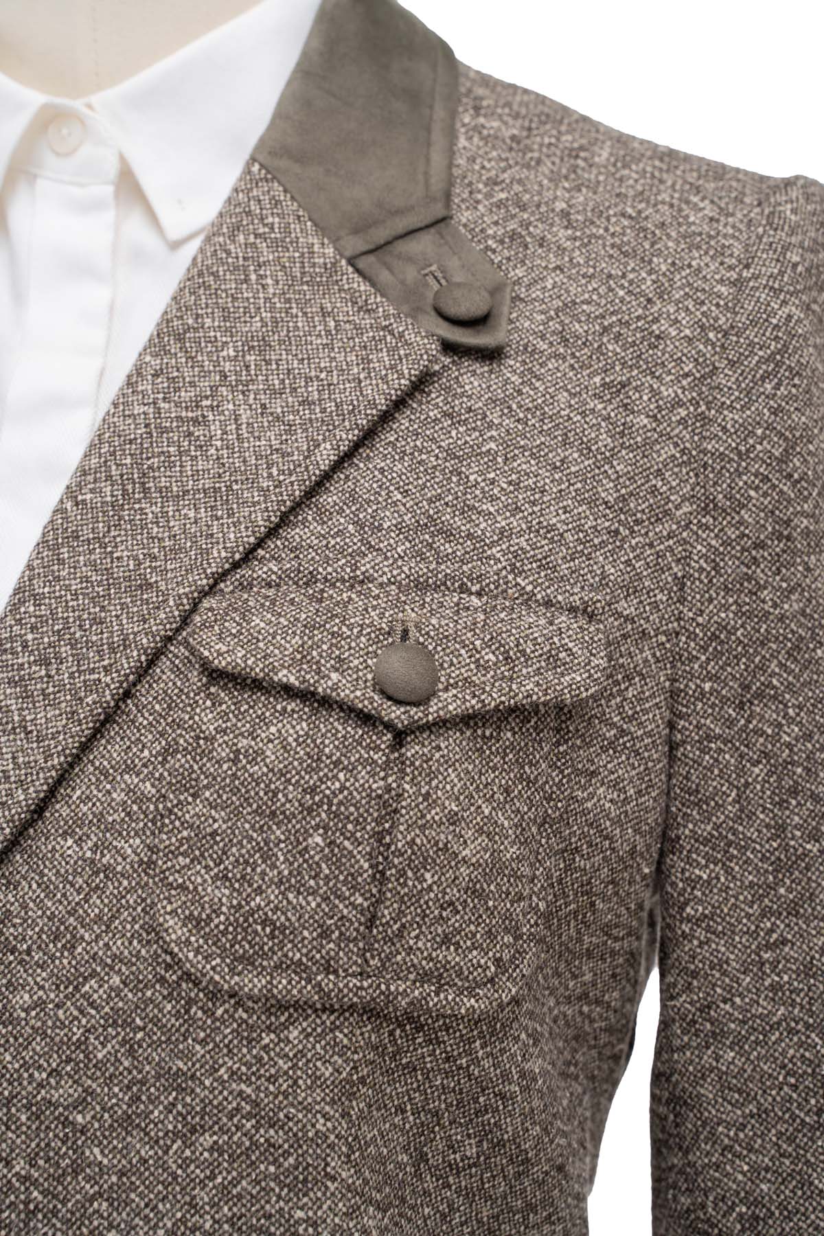 猎装风格的jacket总能唤起人们内心的激情,向往勇敢和自由,让脚步轻快而坚定,从容自在的姿态里是对生活和心灵的宝贵见解:生活需要闲暇时光,心灵需要自由与独处。羊毛桑蚕丝混纺面料制作的Jacket有股老派怀旧风格,结实的肌理感在雪花点古朴中散发练达、坚实、平和的气质,是古老的又是纯真的。衣身上四个口袋设计承袭经典猎装的复古情怀,领口处拼接褐色麂皮,增添耐人寻味的细节,带来原野中自由的气息。后腰处加入松紧设计,修身舒适更显干练精神。处处可见的经典,简单朴实,却越品越耐品,越看越好看。