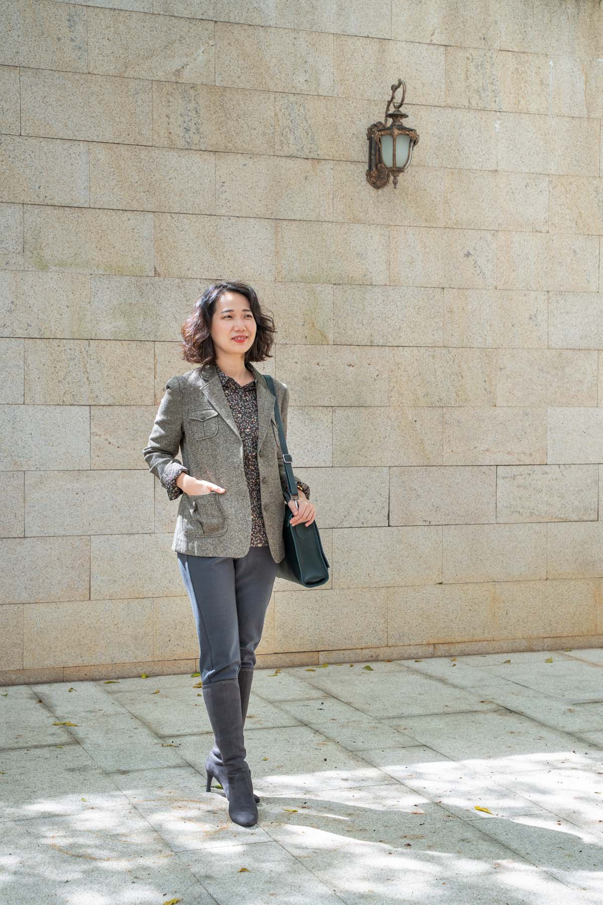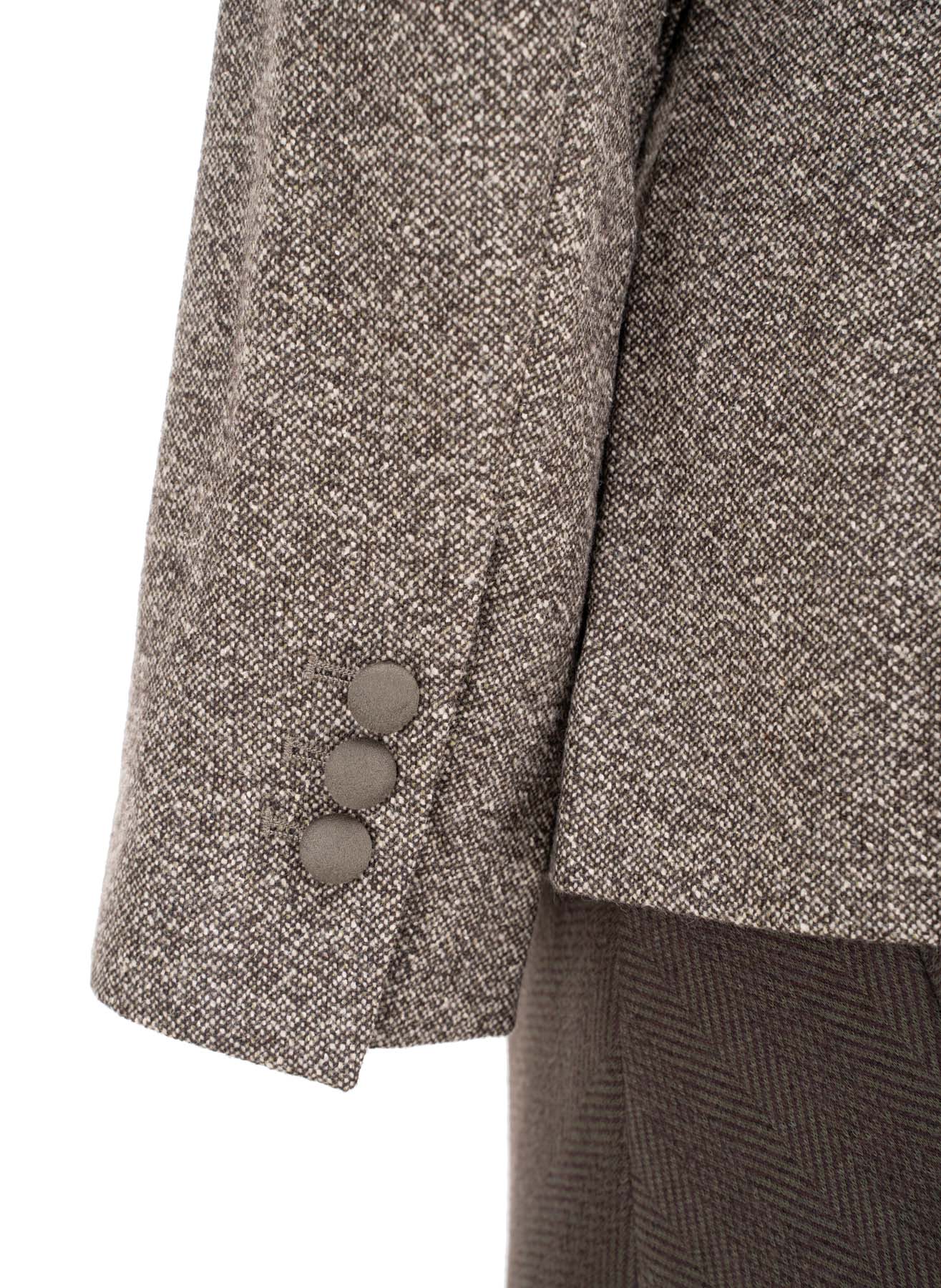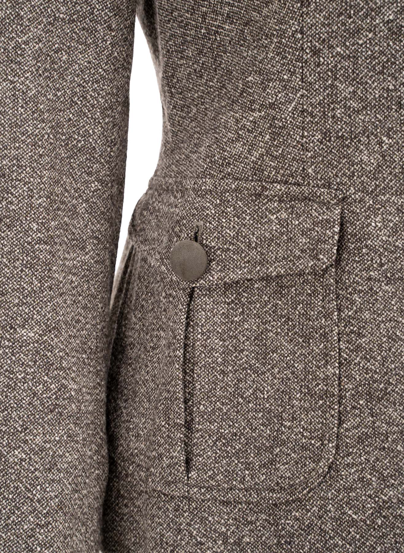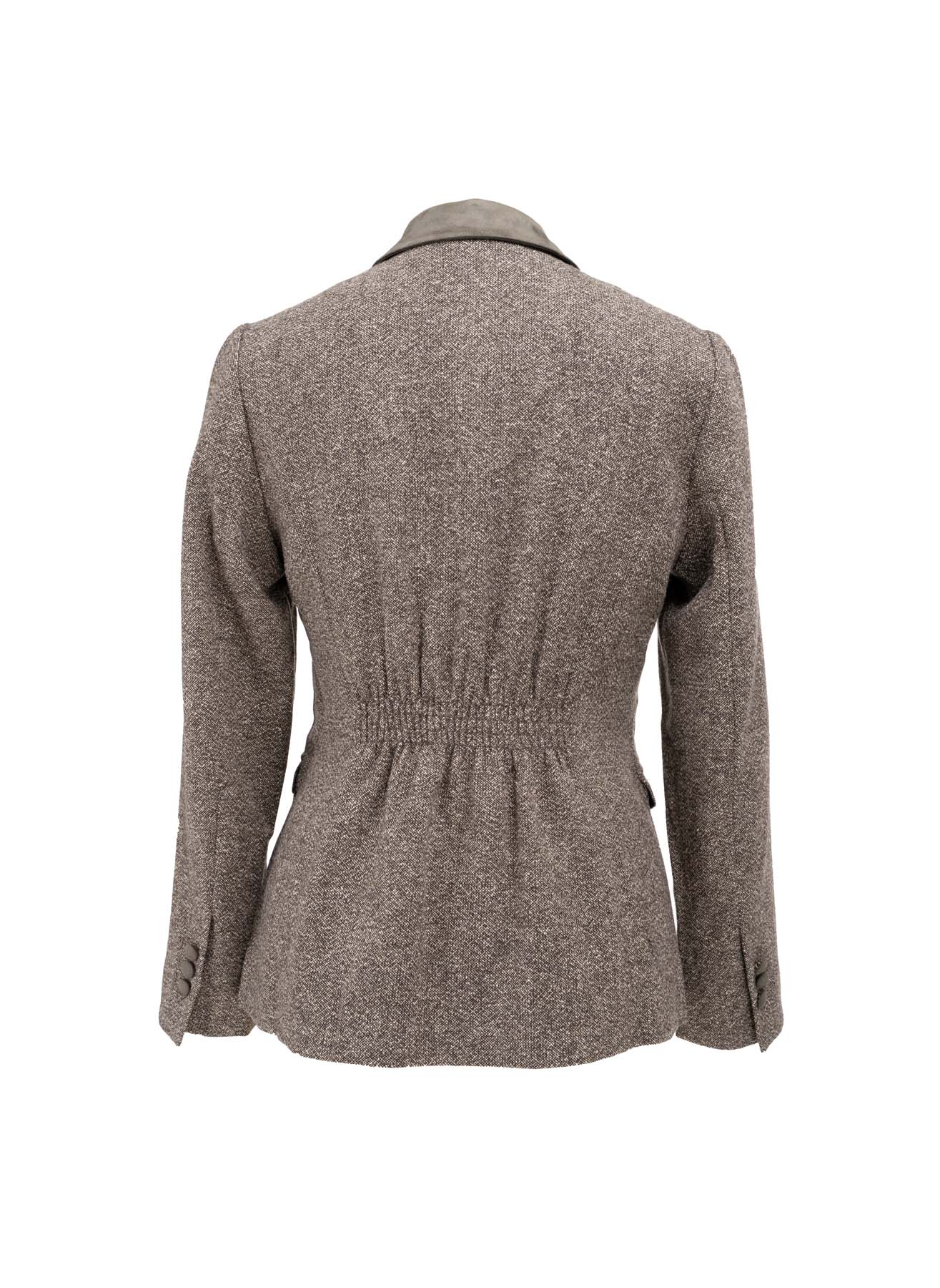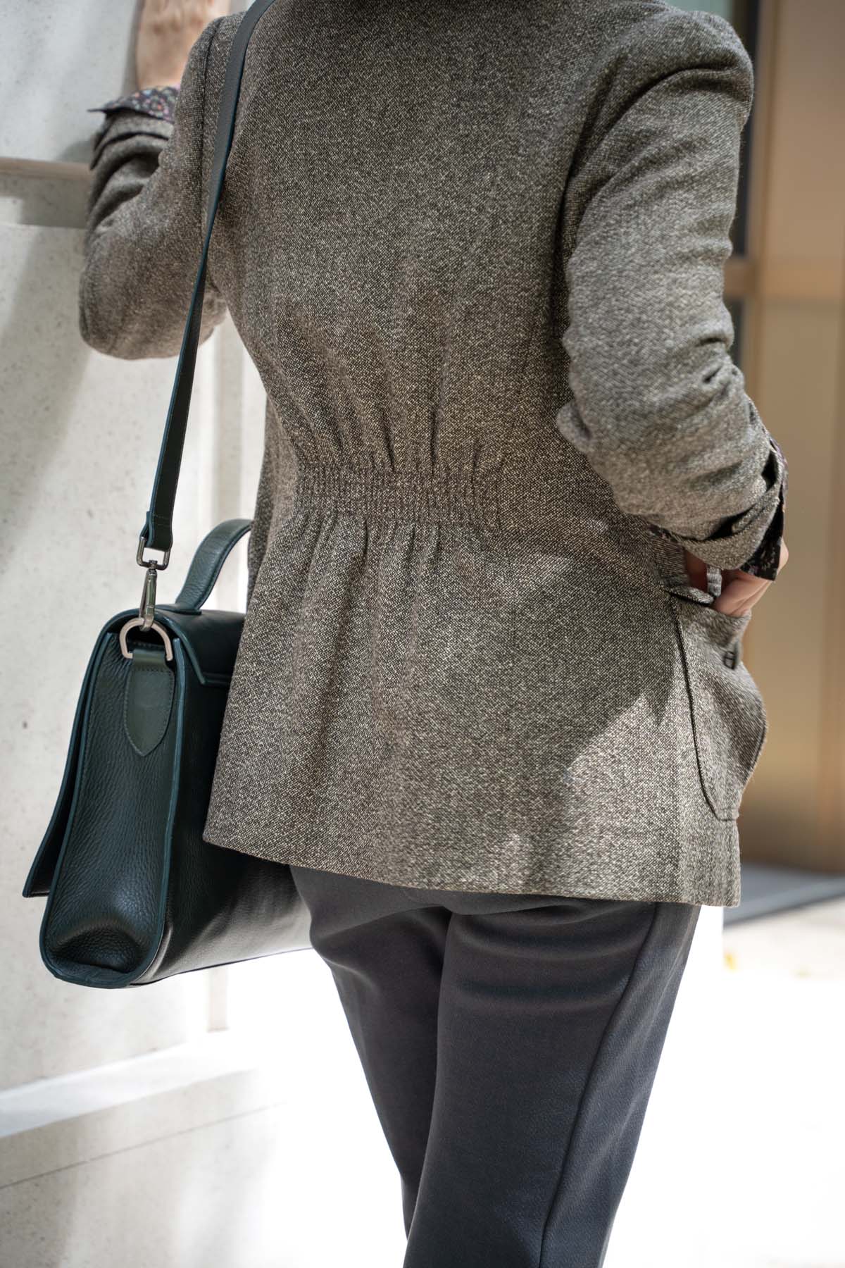 猎装风格的jacket总能唤起人们内心的激情,向往勇敢和自由,让脚步轻快而坚定,从容自在的姿态里是对生活和心灵的宝贵见解:生活需要闲暇时光,心灵需要自由与独处。羊毛桑蚕丝混纺面料制作的Jacket有股老派怀旧风格,结实的肌理感在雪花点古朴中散发练达、坚实、平和的气质,是古老的又是纯真的。衣身上四个口袋设计承袭经典猎装的复古情怀,领口处拼接褐色麂皮,增添耐人寻味的细节,带来原野中自由的气息。后腰处加入松紧设计,修身舒适更显干练精神。处处可见的经典,简单朴实,却越品越耐品,越看越好看。