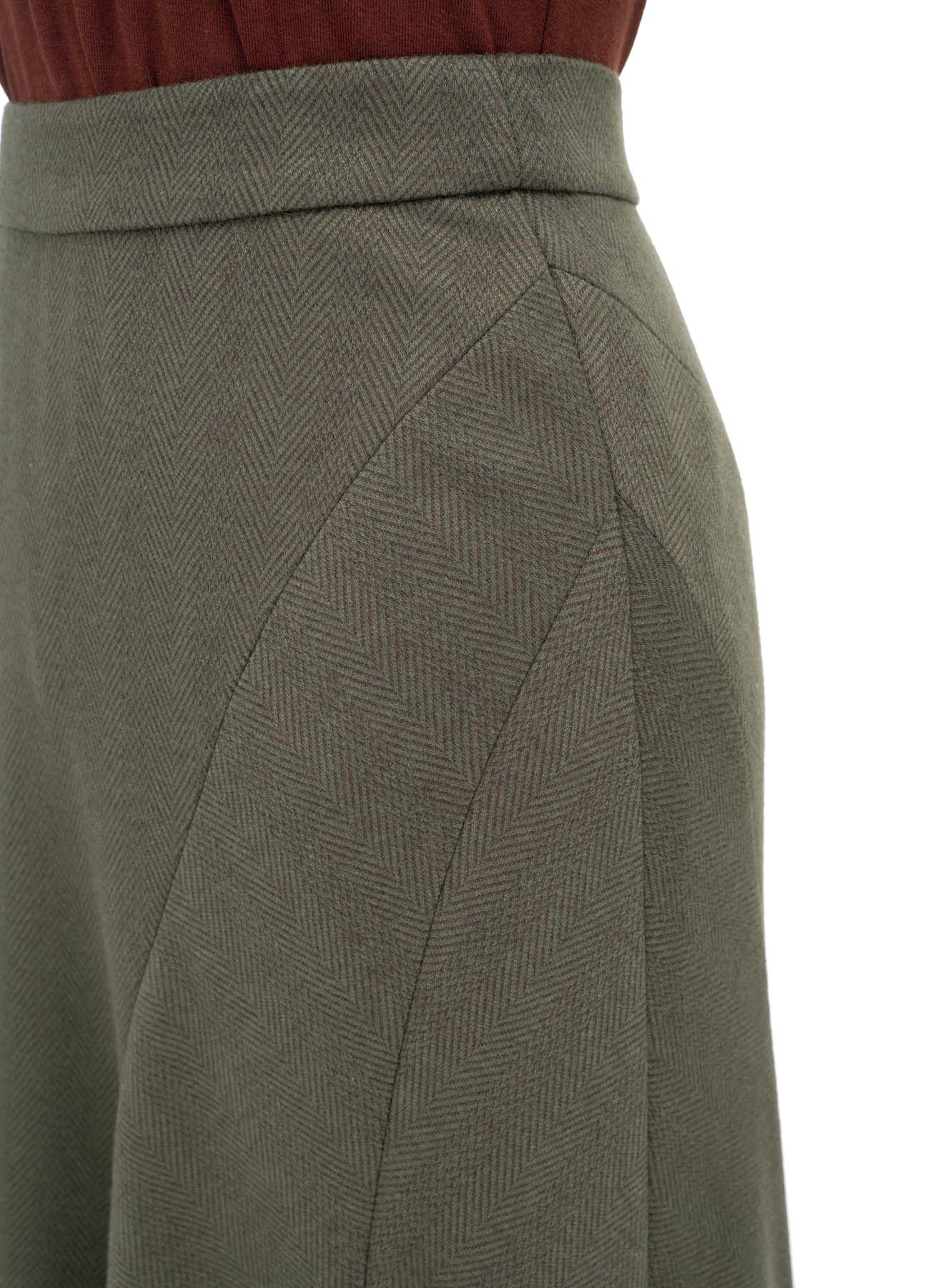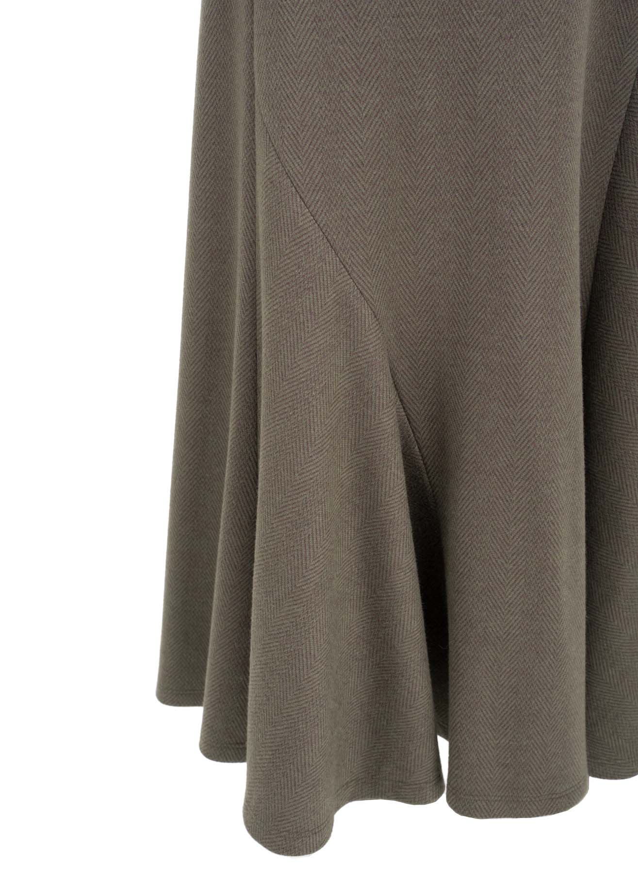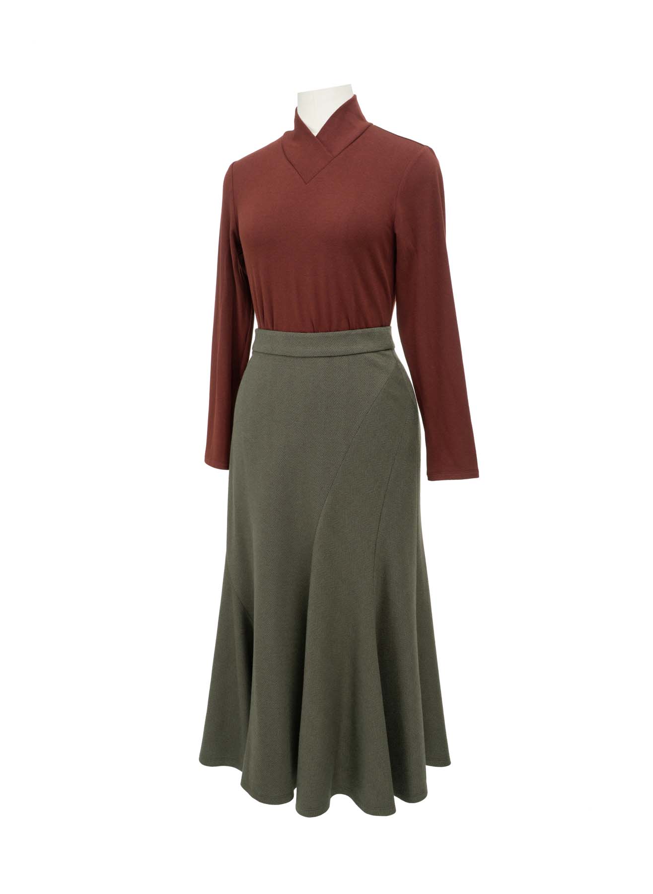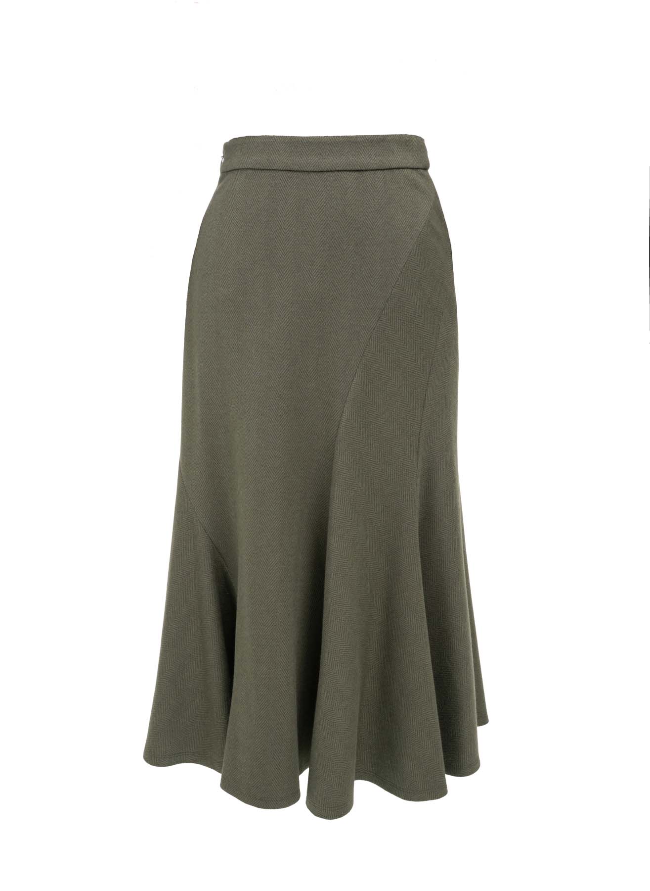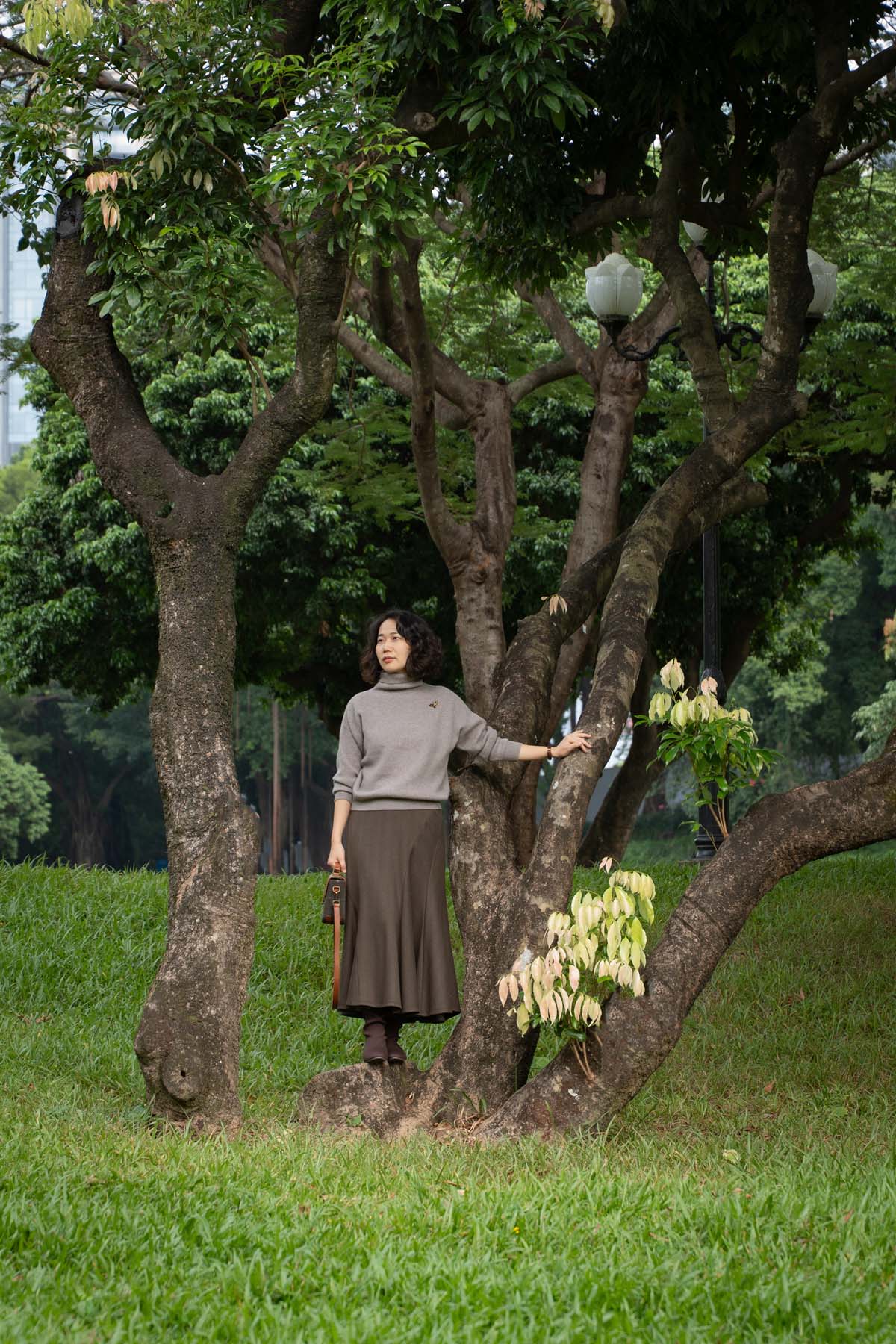 漫步者热爱老派的生活方式,走长长的路,说久久的话,不计算效率,只关乎真实,就像这款迷人半裙上的人字纹图案考究不张扬,历史悠久绵长,走入新时代却毫无慌乱,提醒忙碌者生活该回归安静与平和。漫步者的灵魂自由而独立,以行走的姿态寻找自然之光、生命之美,半裙雅致的绿色有复古文艺的气质,色泽仿佛取之于自然,浑然天成。浪漫,也是漫步者心灵的姿态,含有羊毛、棉、聚酯纤维等多种成分的面料,细腻温暖又呈现柔软的丝滑,侧边带有弧度的破缝设计流畅舒展、别具一格,小鱼尾裙的灵动让寒冷的厚重丝毫没有附着在优雅的生命中,站立时绵长,转动时轻摆,行走时飘逸,记述漫步时的抒情与悠扬……