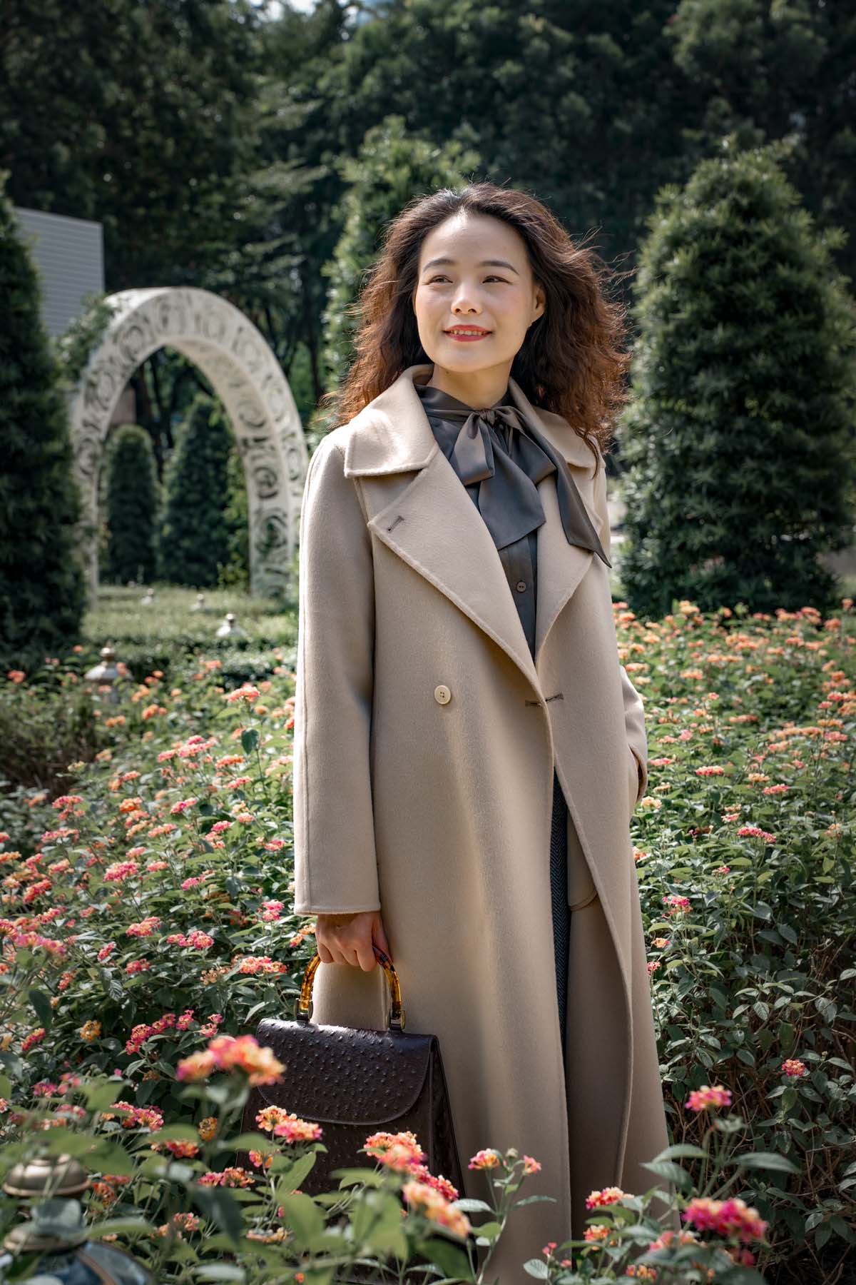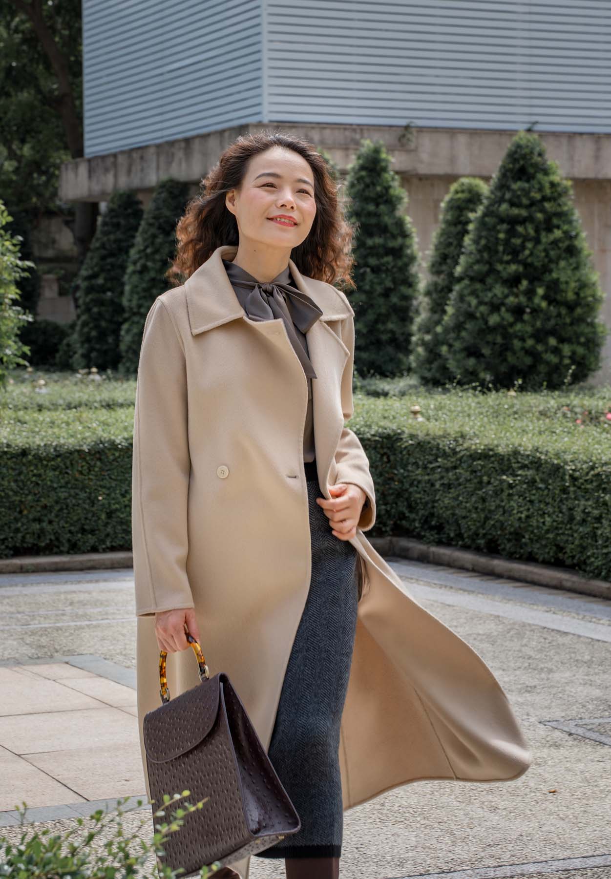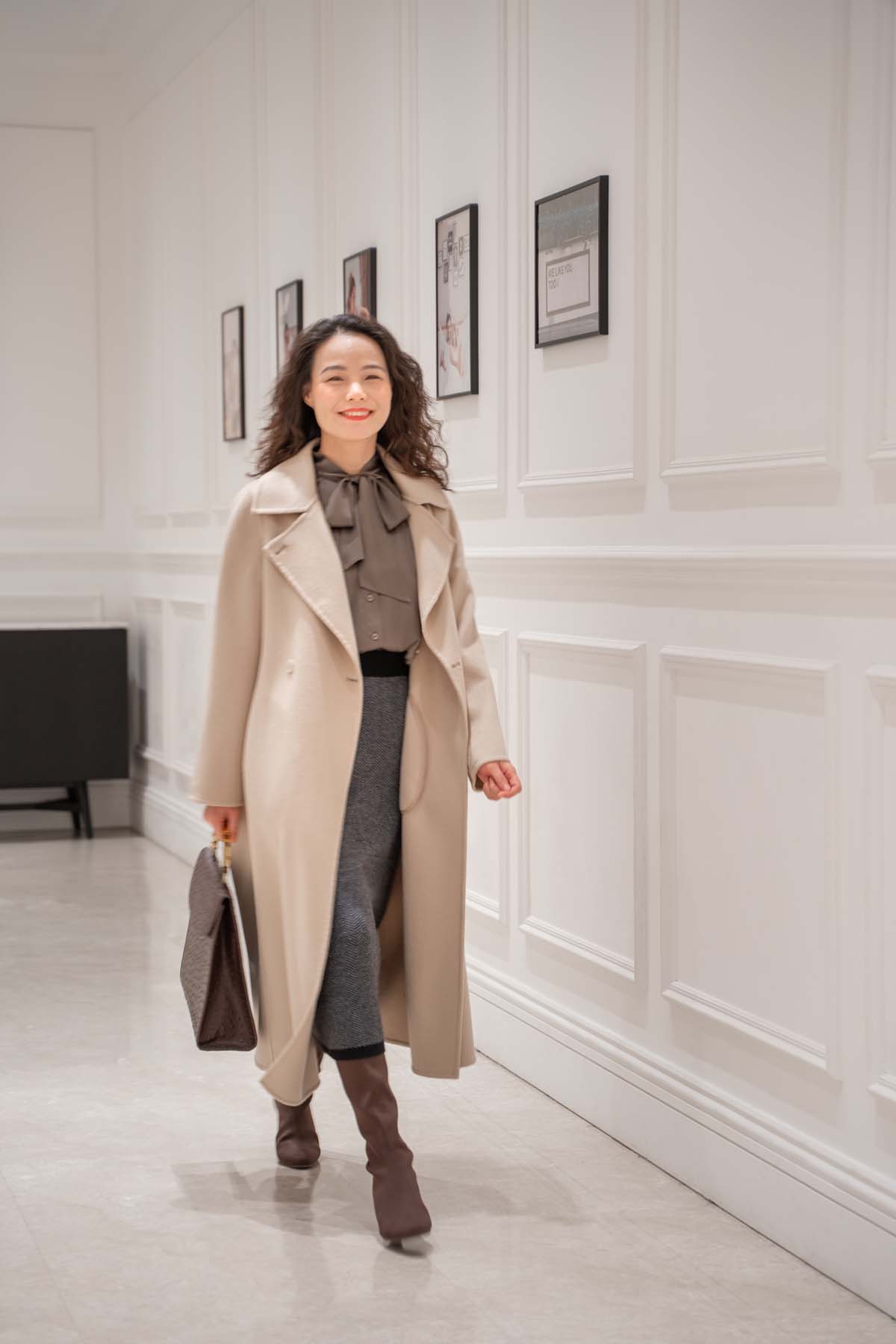 maia’s经典大衣以有温度的米色,给寒冷的冬日送来和煦的暖阳。好品质的大衣从来都是衣橱中的“大手笔”,细腻软糯的全羊毛双面呢面料,触手可及的蓬松与厚实为身体带来天然保暖的屏障,隔绝外界的寒意。挺括的骨架、适中的厚度,塑造出大衣洗练、明朗、拒绝臃肿的轮廓。经典的大翻领、足量的长度、简洁流畅的线条,够分量有风度,让人过目难忘。双面呢十分精细的手工缝制工艺,代表着极高的制作水准——maia’s版房工匠们以丰富的经验和精湛的工艺让衣身浑然一体,透露慢工出细活的品质感和价值感。一针一线倾注的匠心让大衣拥有比机器缝制更高的牢固度,更赋予大衣珍贵的“手工温度”。