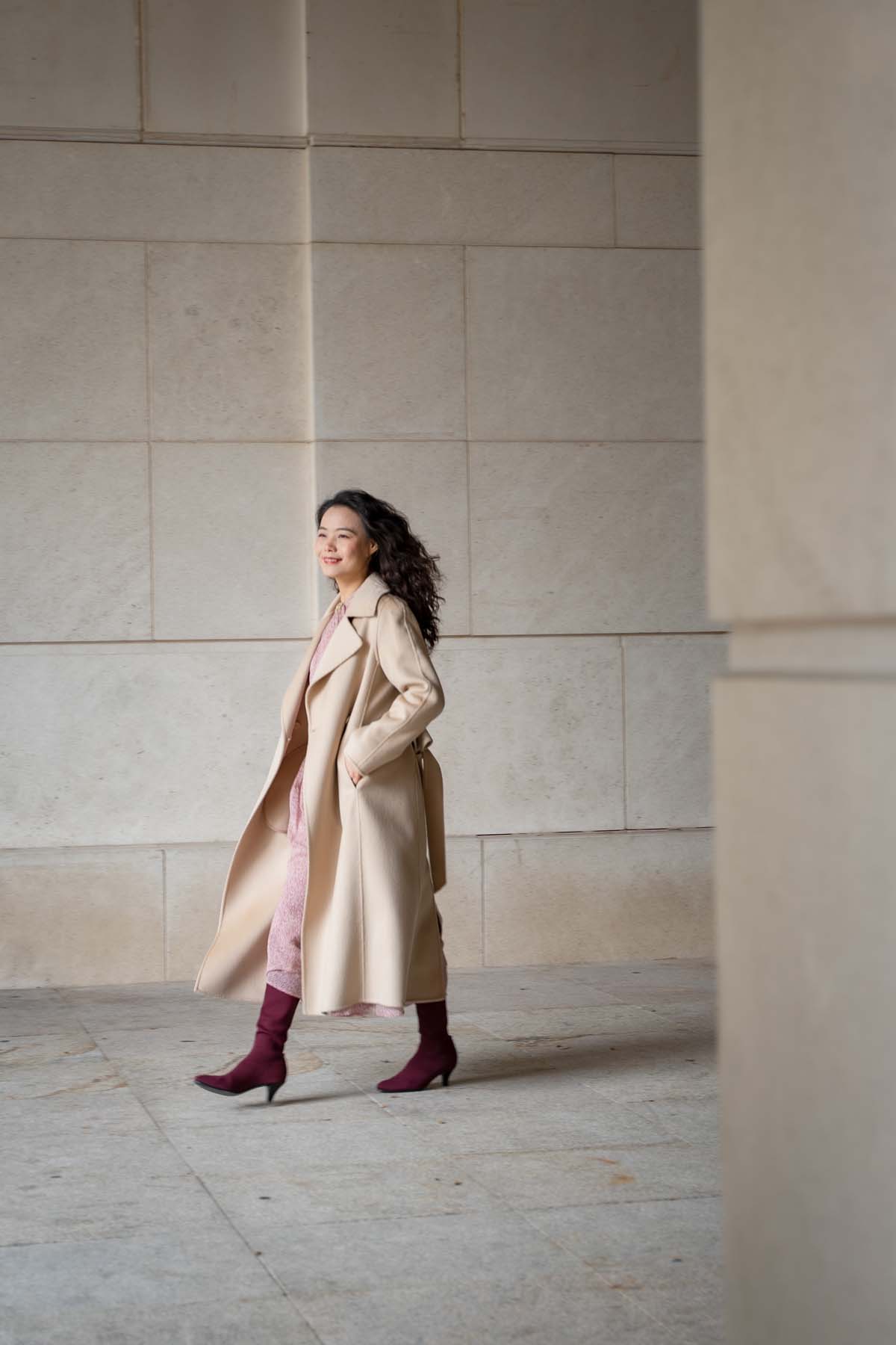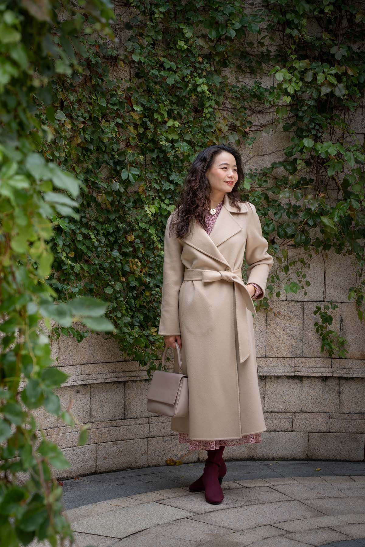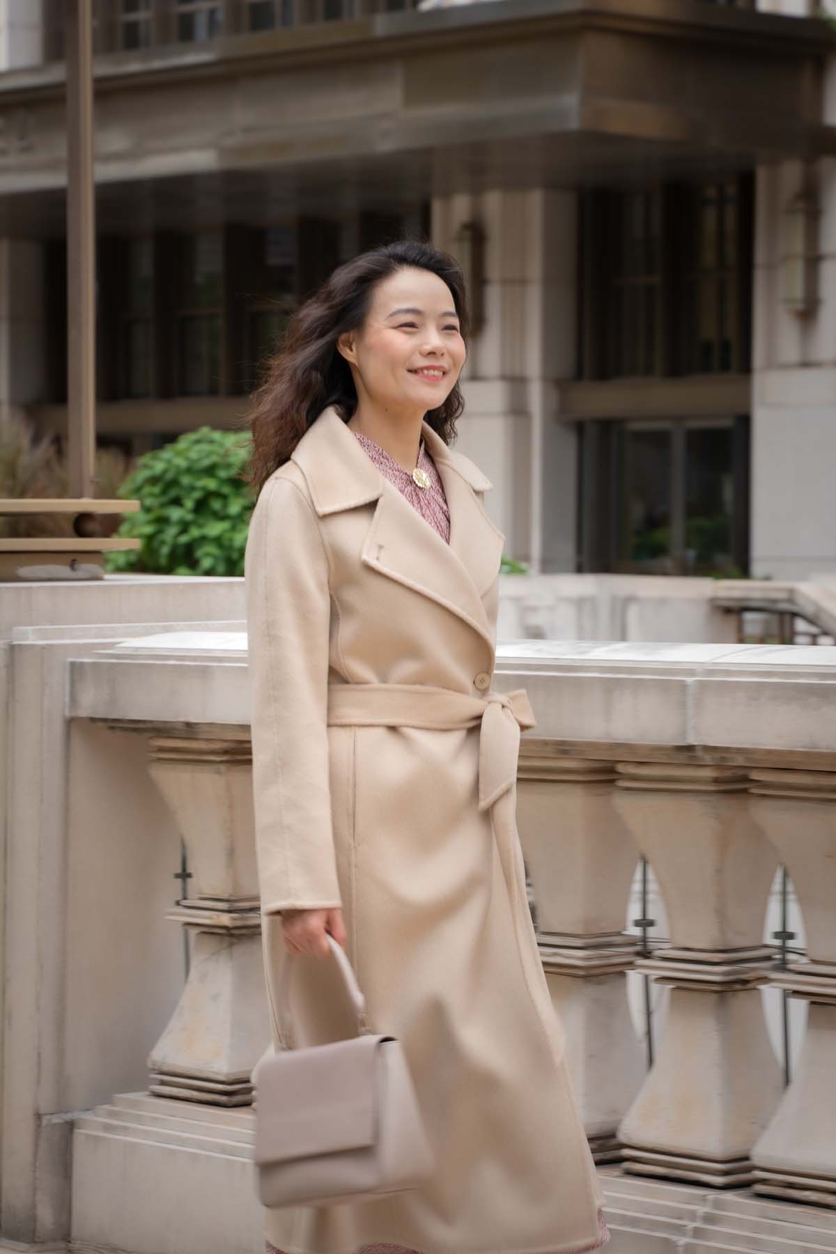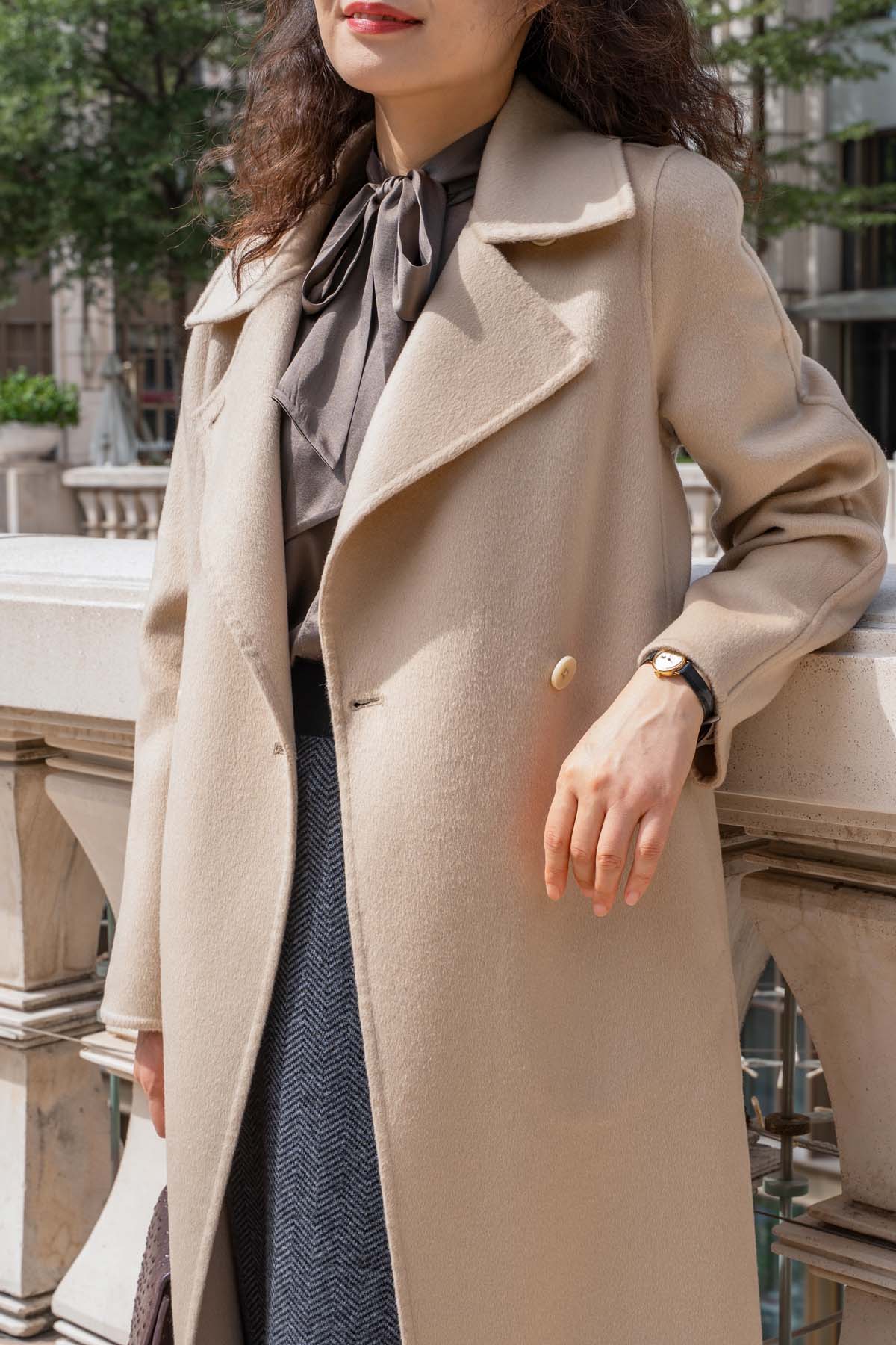 maia’s经典大衣以有温度的米色,给寒冷的冬日送来和煦的暖阳。好品质的大衣从来都是衣橱中的“大手笔”,细腻软糯的全羊毛双面呢面料,触手可及的蓬松与厚实为身体带来天然保暖的屏障,隔绝外界的寒意。挺括的骨架、适中的厚度,塑造出大衣洗练、明朗、拒绝臃肿的轮廓。经典的大翻领、足量的长度、简洁流畅的线条,够分量有风度,让人过目难忘。双面呢十分精细的手工缝制工艺,代表着极高的制作水准——maia’s版房工匠们以丰富的经验和精湛的工艺让衣身浑然一体,透露慢工出细活的品质感和价值感。一针一线倾注的匠心让大衣拥有比机器缝制更高的牢固度,更赋予大衣珍贵的“手工温度”。