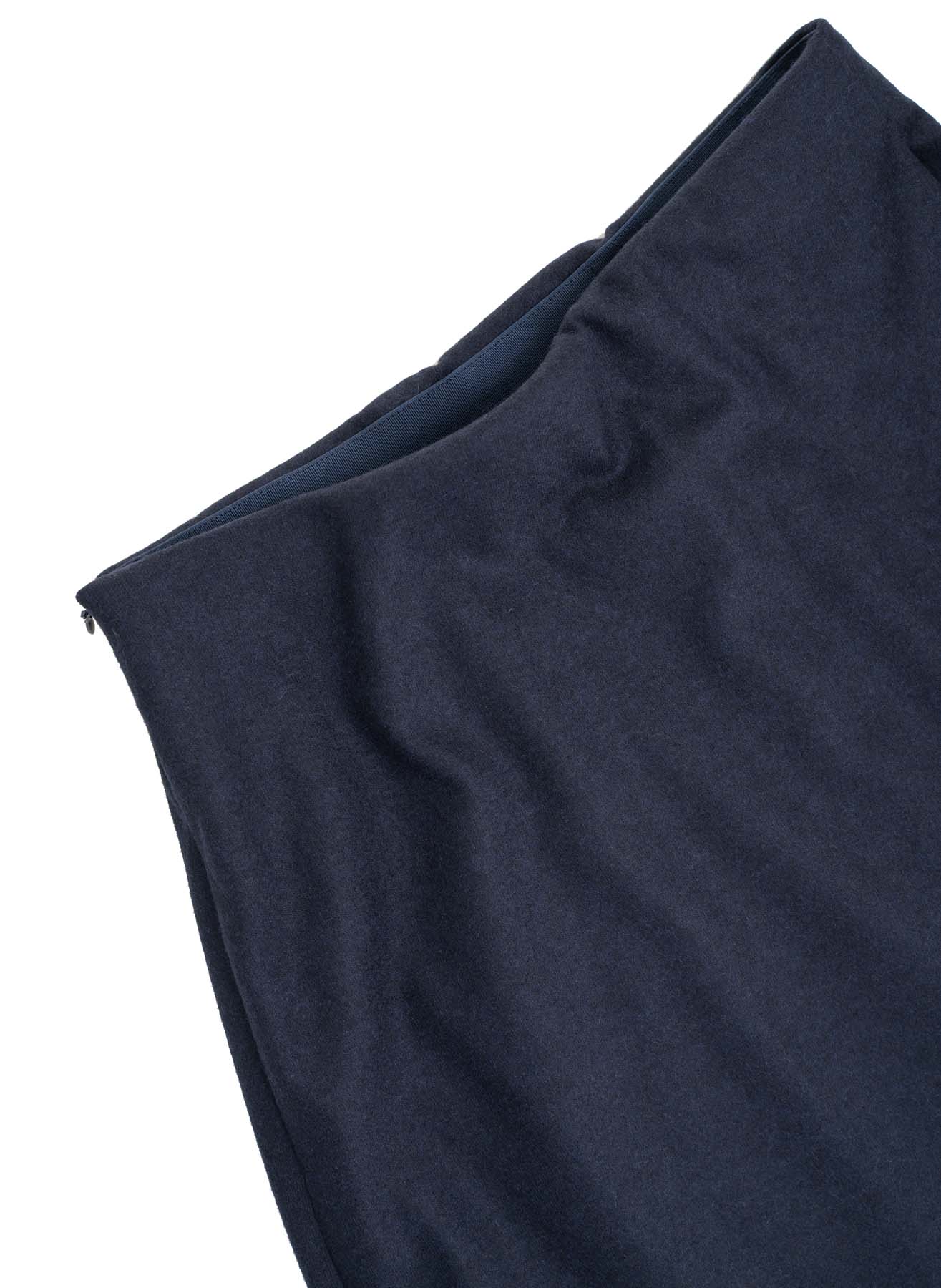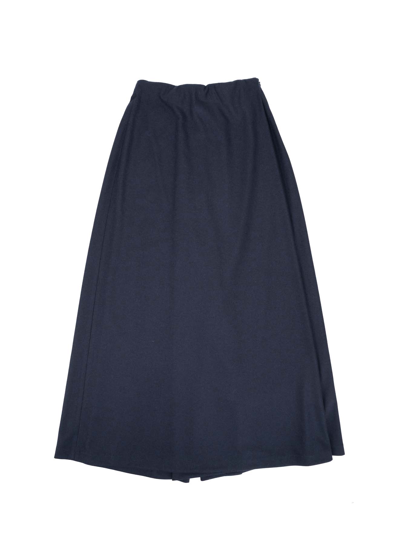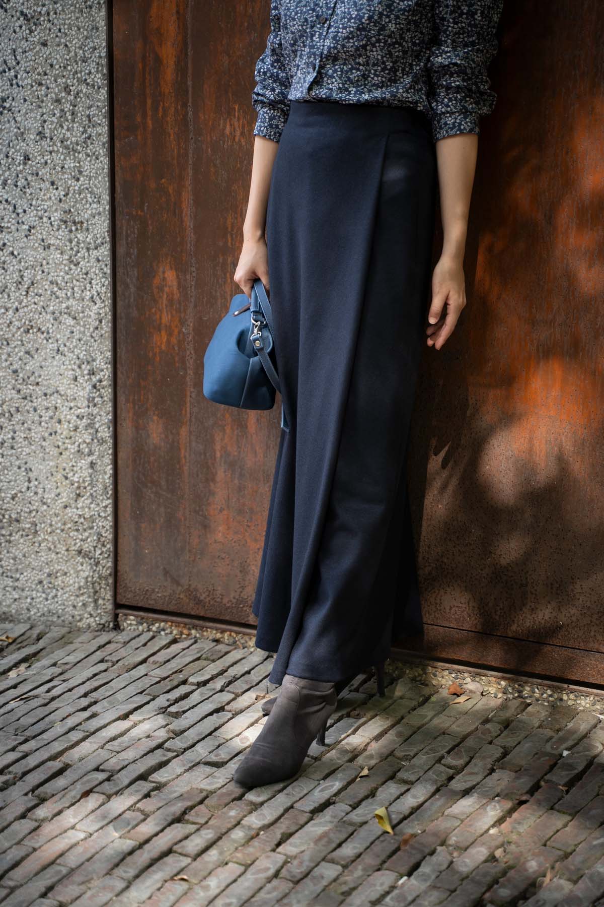 弹力羊毛混纺面料温暖厚实且有垂坠感,静立时尽显出长裙的端庄隆重,行动时却有着裤装的轻便。舒适与美感兼具的松紧腰头,以及不对称的剪裁设计,处处弥漫着欢快、独特与浪漫……与针织上衣能轻松搭配出优雅休闲的造型,与衬衫搭配则呈现得体而又有行动力的淑女形象。