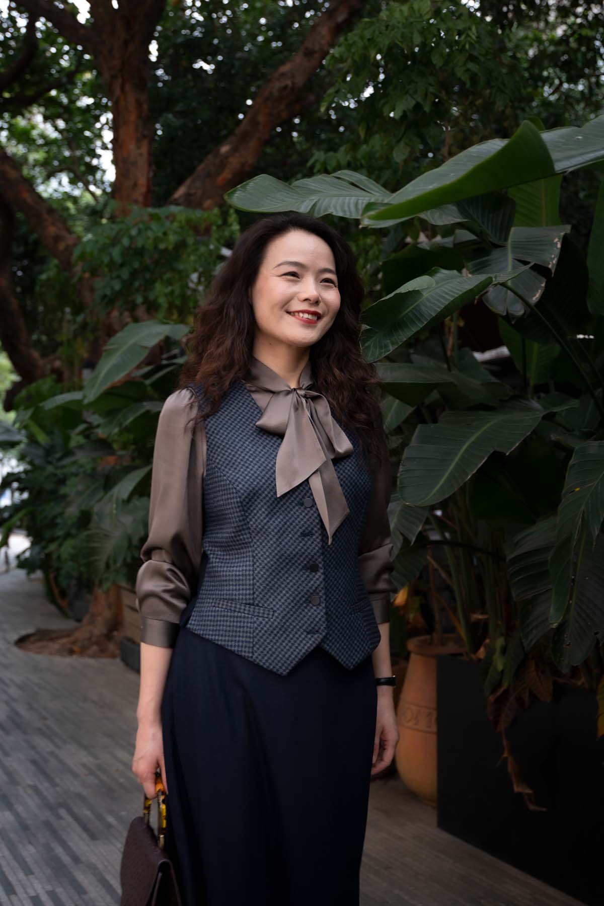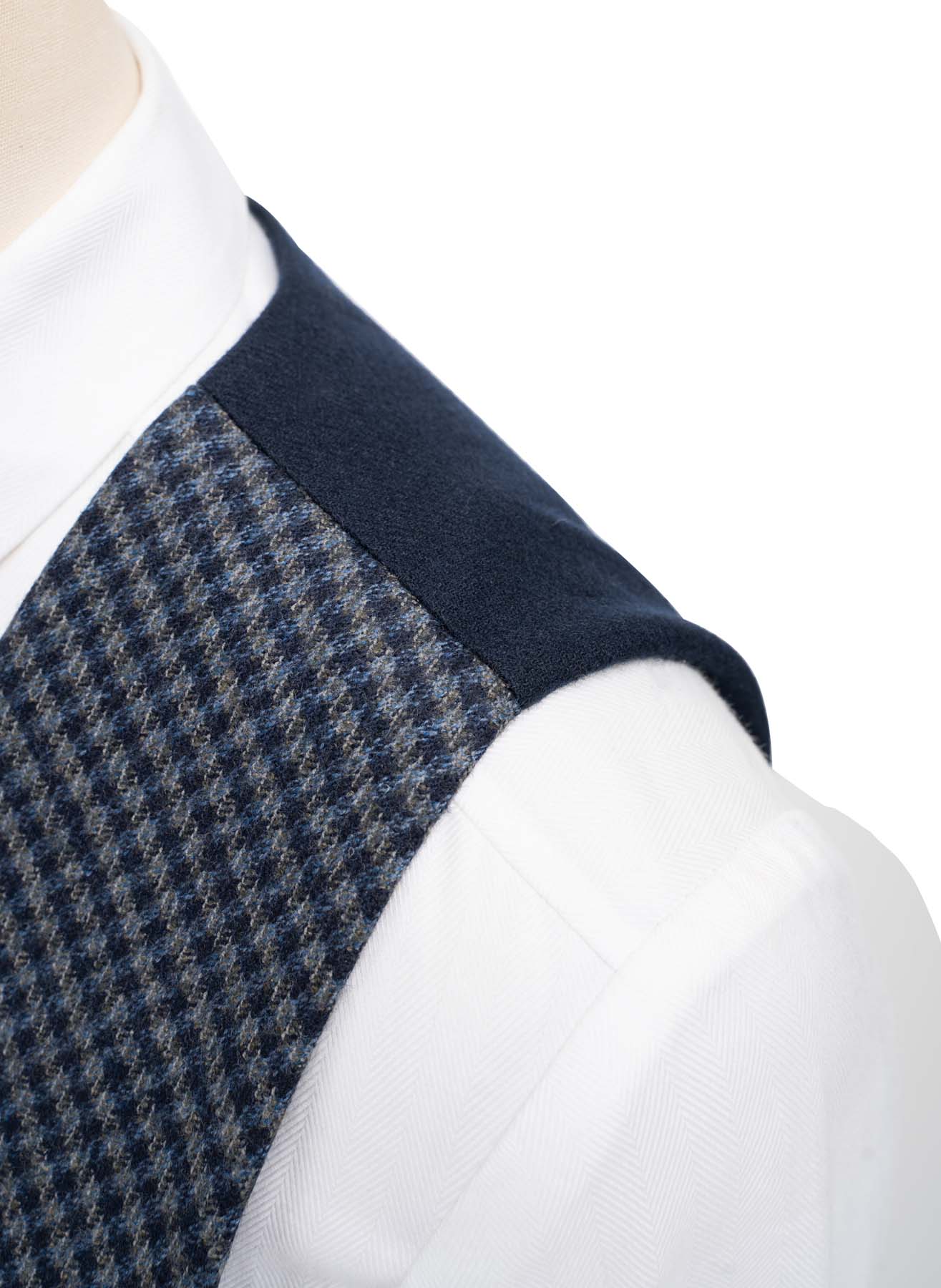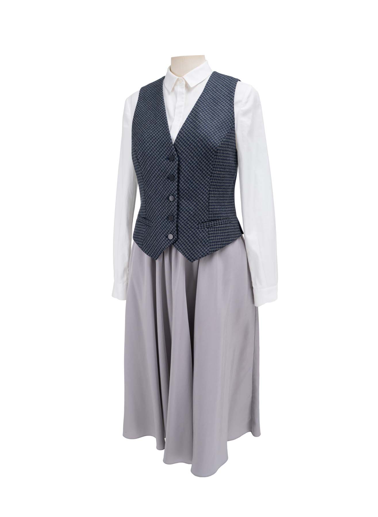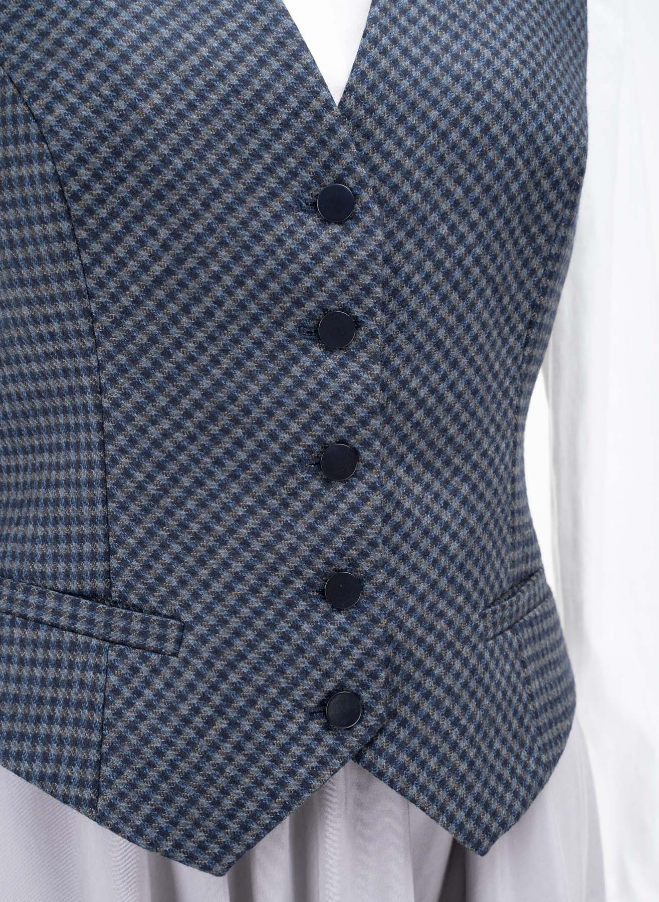 柔软的高品质羊毛与沉稳的色调,默契地达成了一种力量与柔美的平衡,藏蓝色与千鸟格前后相拼既丰富了层次感又起到视觉上的修饰,同时增强了马甲的搭配性。简洁经典的款式与版型设计,让其无论是内搭衬衫、针织衫打造通勤知性风,还是搭配毛衣、大衣营造冬日的智慧穿搭典范,都能凭借纯羊毛的优质质感、格纹与净色的拼色巧思,以及经典耐品的款式,成为衣橱中兼具实用性与时髦感的百搭单品,轻松提升整体造型的精致度。