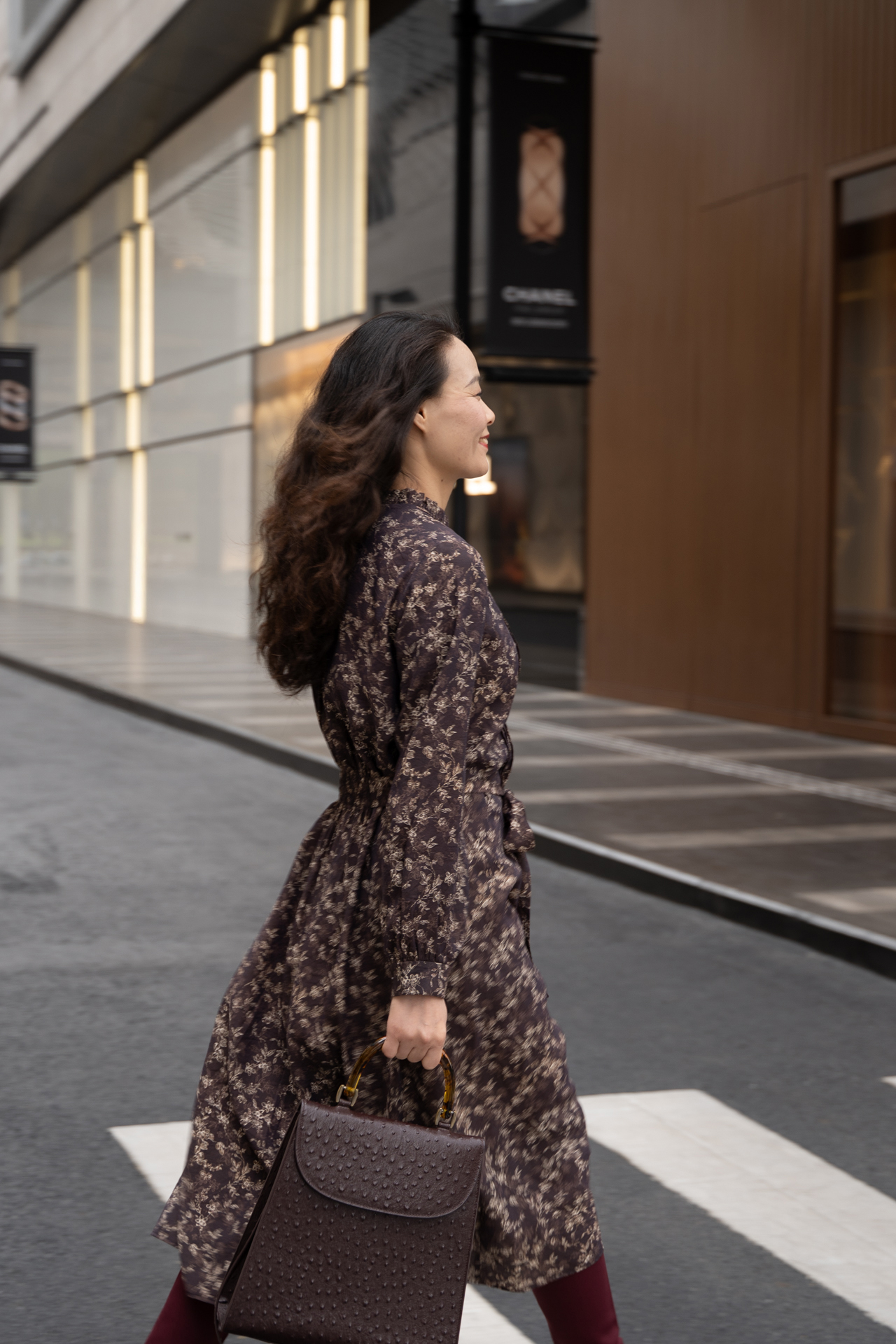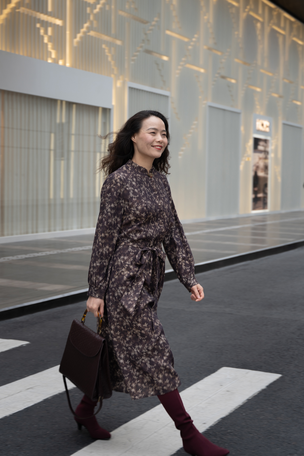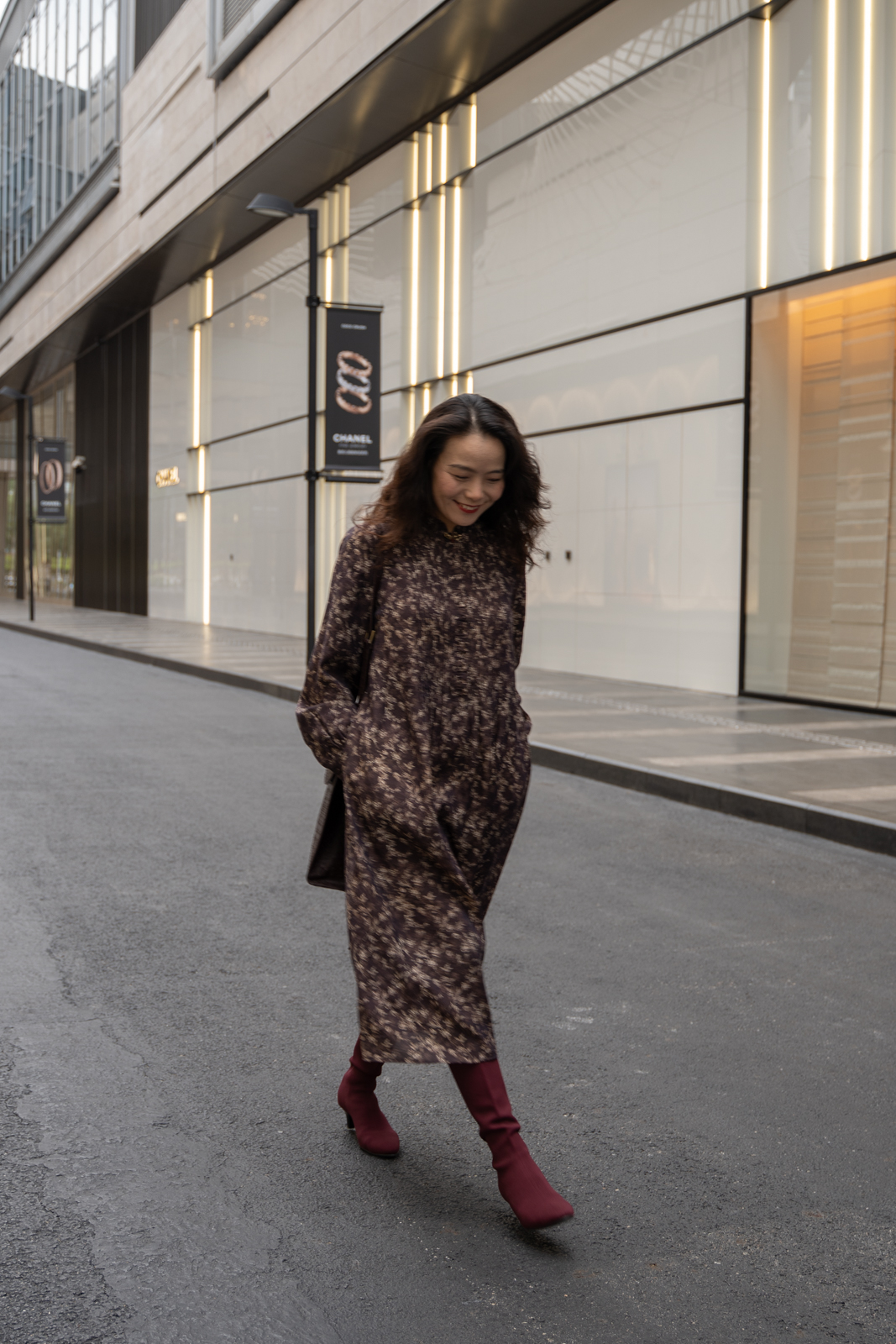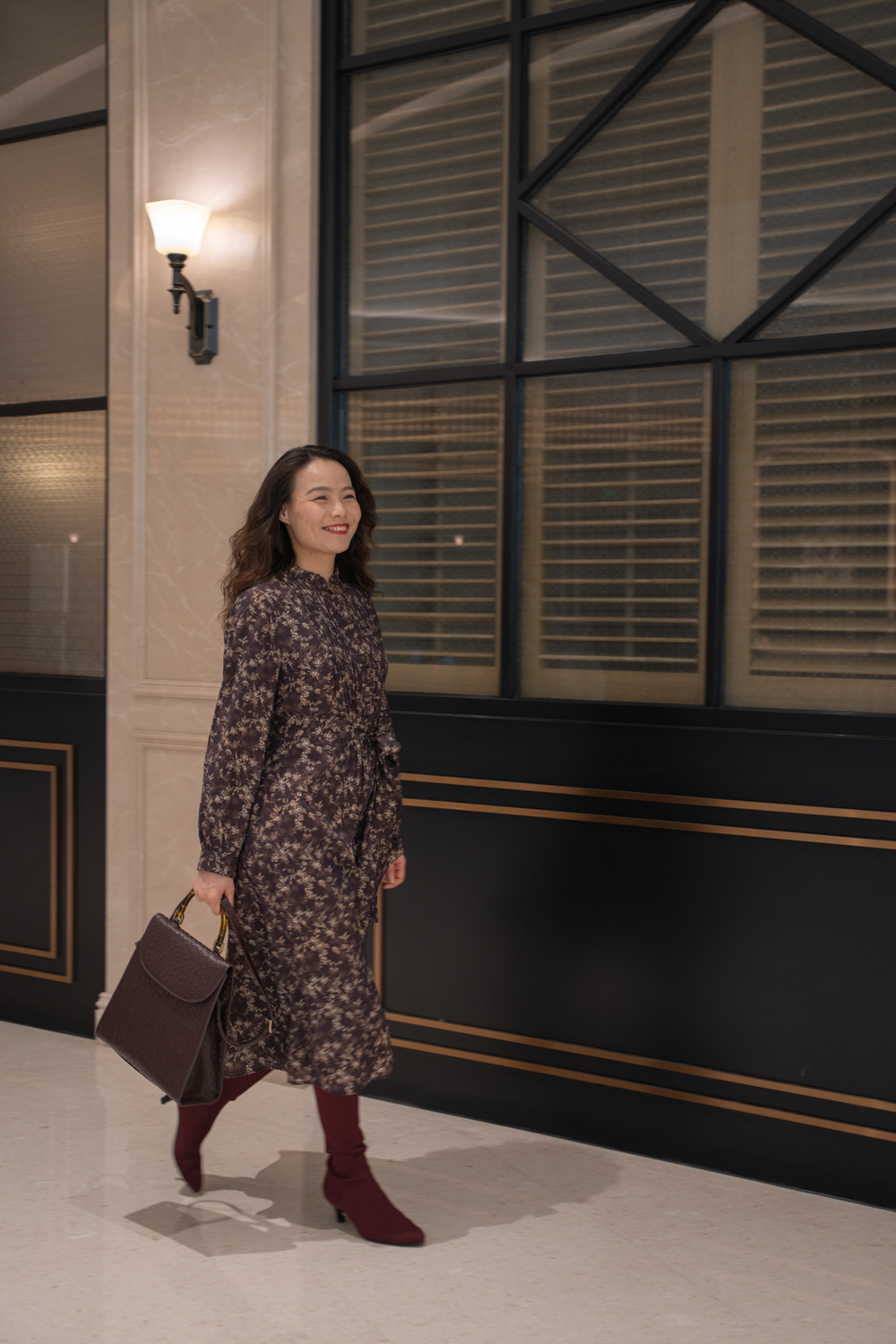 玛亚老师说过:“最喜欢的搭配就是里面一条有摆度的连身裙,外面直接就套上大衣,刚柔并济的表里,一脱一穿都特别有风情”。我想,“芳泥蕴香”表达轻盈动人再适合不过了,它有穿越四季的魅力,在温暖的季节里含蓄绽放馨香;在寒冷时,又能创造出反季节穿着的惊喜效果,让淑女用美丽的形象,尽情表达内心的丰沃……