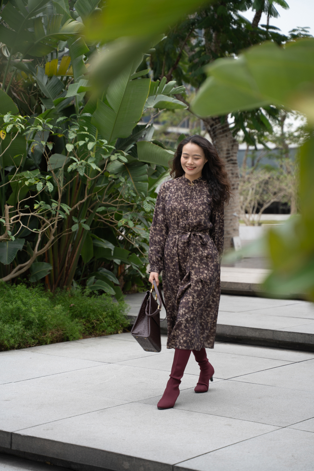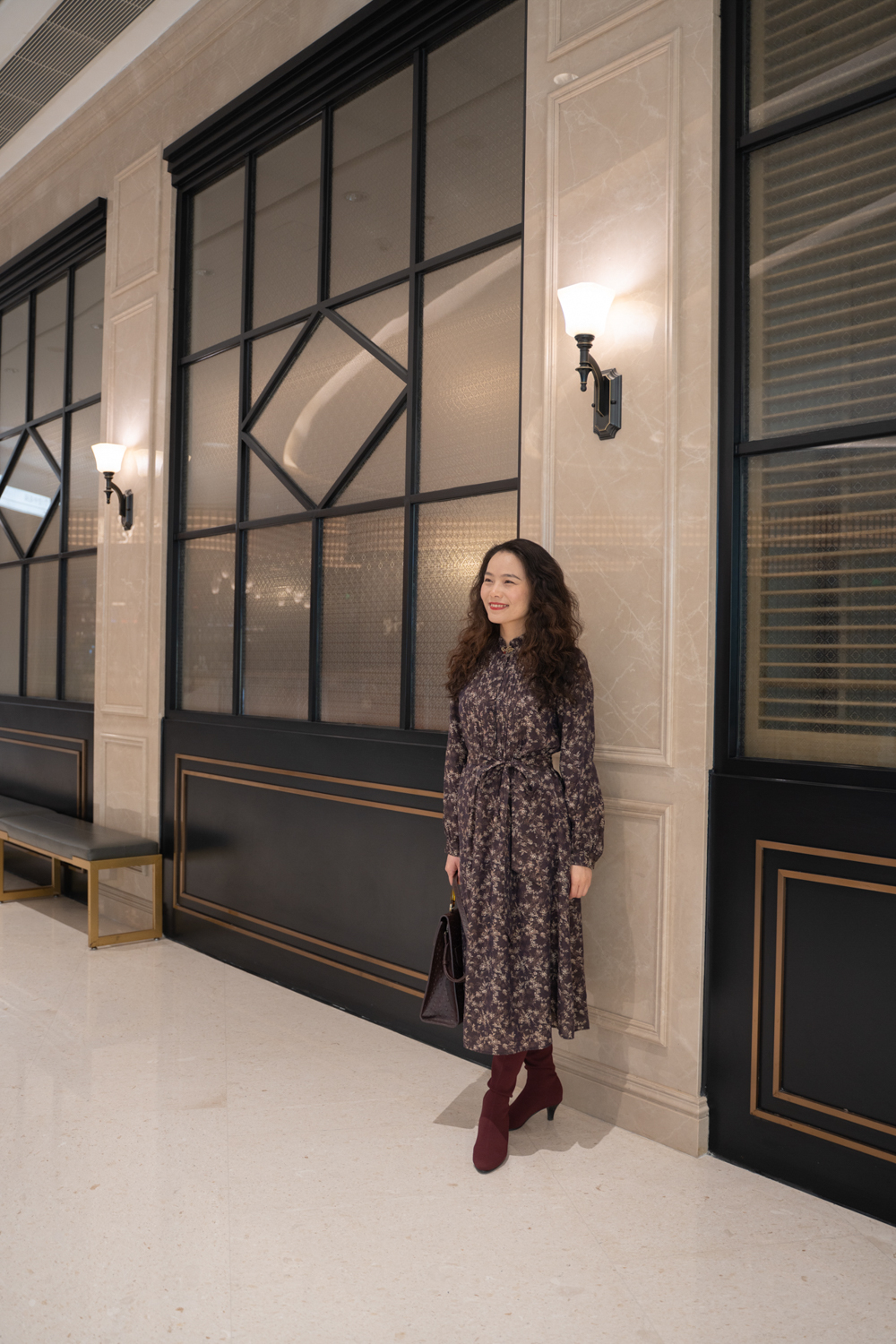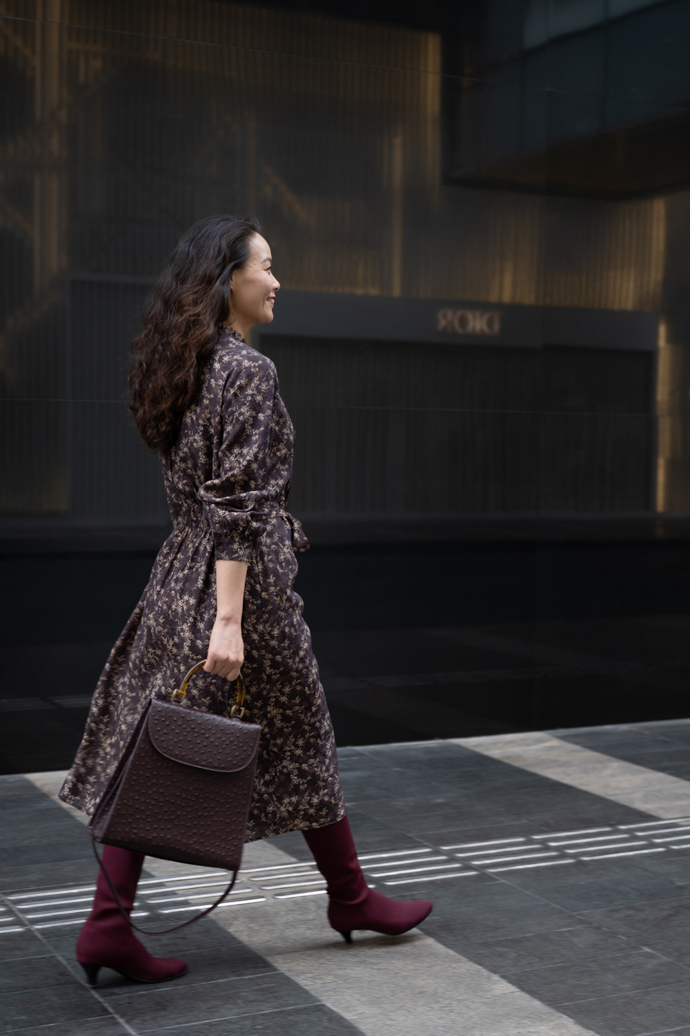 玛亚老师说过:“最喜欢的搭配就是里面一条有摆度的连身裙,外面直接就套上大衣,刚柔并济的表里,一脱一穿都特别有风情”。我想,“芳泥蕴香”表达轻盈动人再适合不过了,它有穿越四季的魅力,在温暖的季节里含蓄绽放馨香;在寒冷时,又能创造出反季节穿着的惊喜效果,让淑女用美丽的形象,尽情表达内心的丰沃……