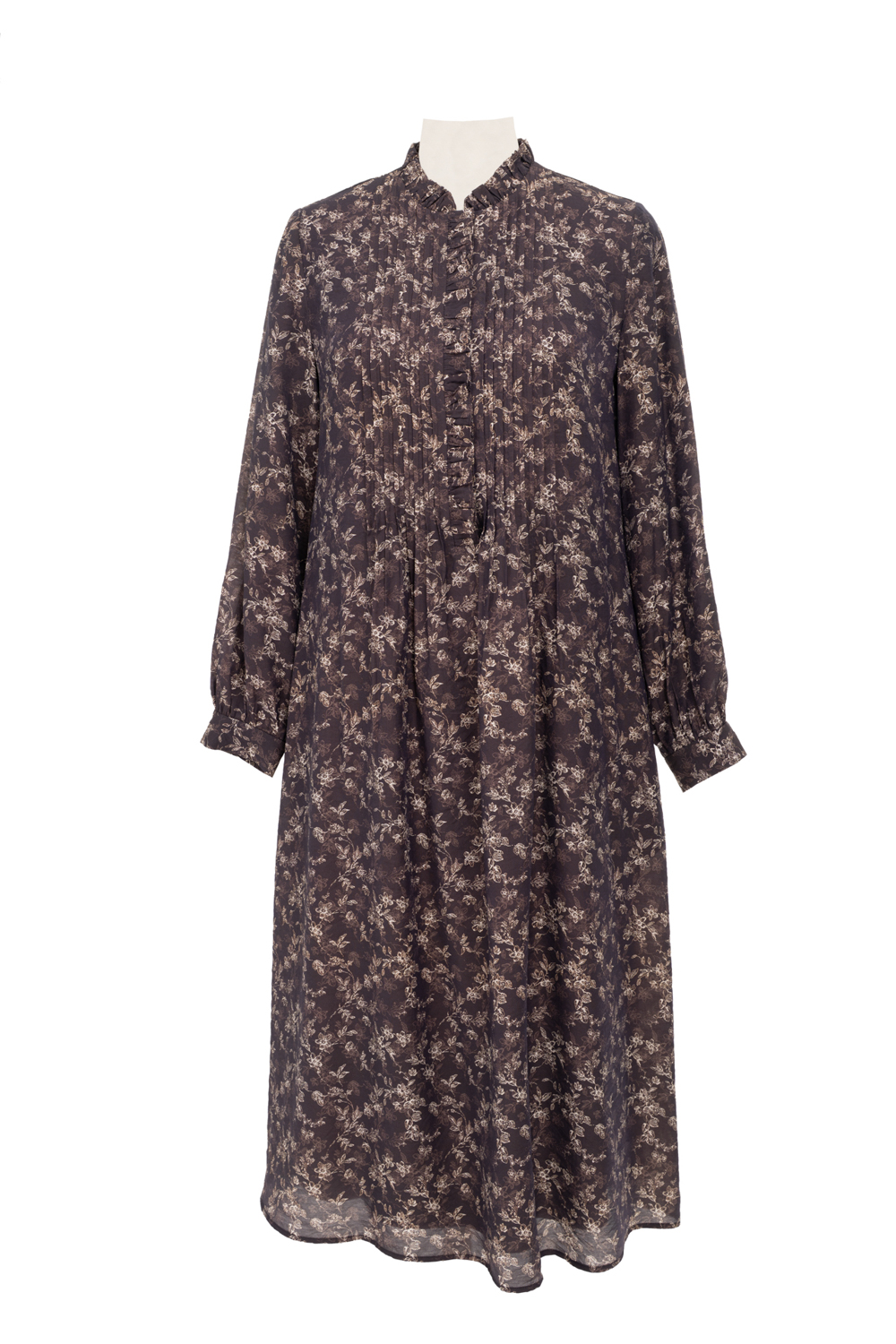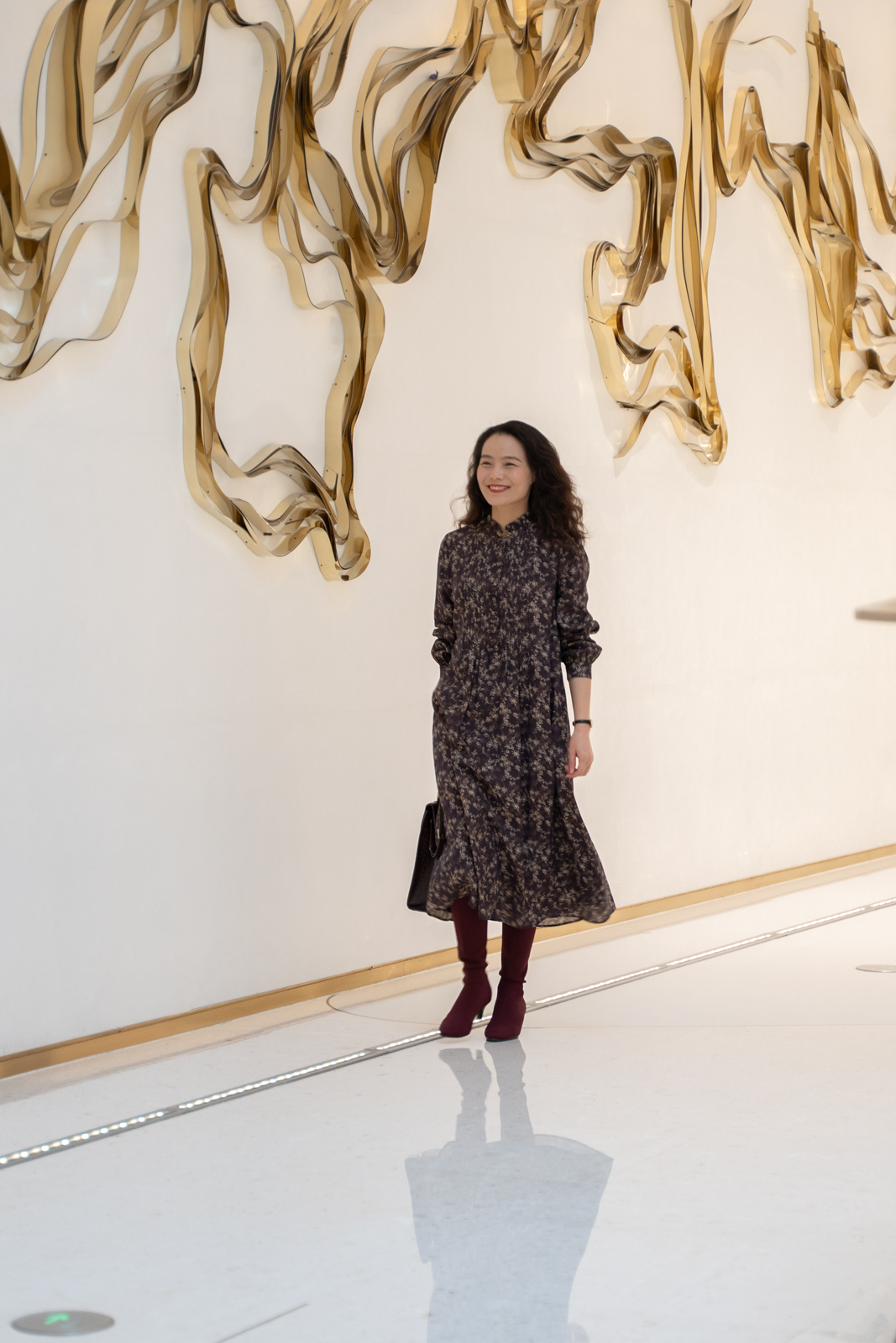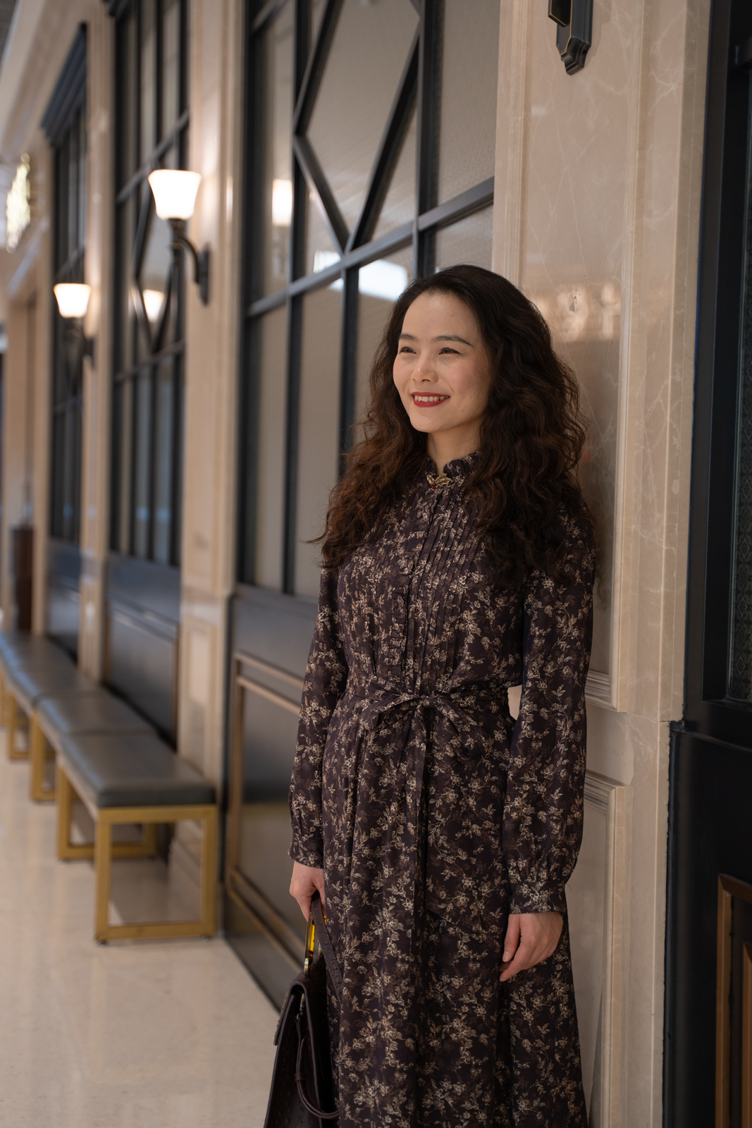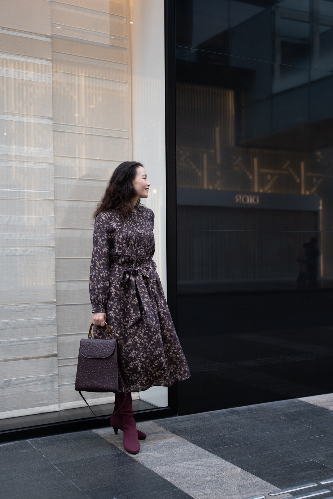 玛亚老师说过:“最喜欢的搭配就是里面一条有摆度的连身裙,外面直接就套上大衣,刚柔并济的表里,一脱一穿都特别有风情”。我想,“芳泥蕴香”表达轻盈动人再适合不过了,它有穿越四季的魅力,在温暖的季节里含蓄绽放馨香;在寒冷时,又能创造出反季节穿着的惊喜效果,让淑女用美丽的形象,尽情表达内心的丰沃……