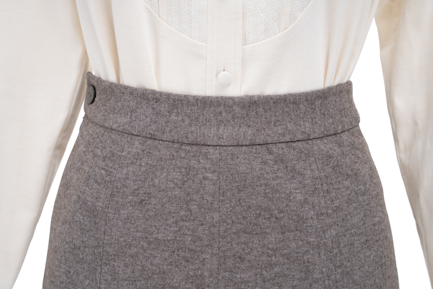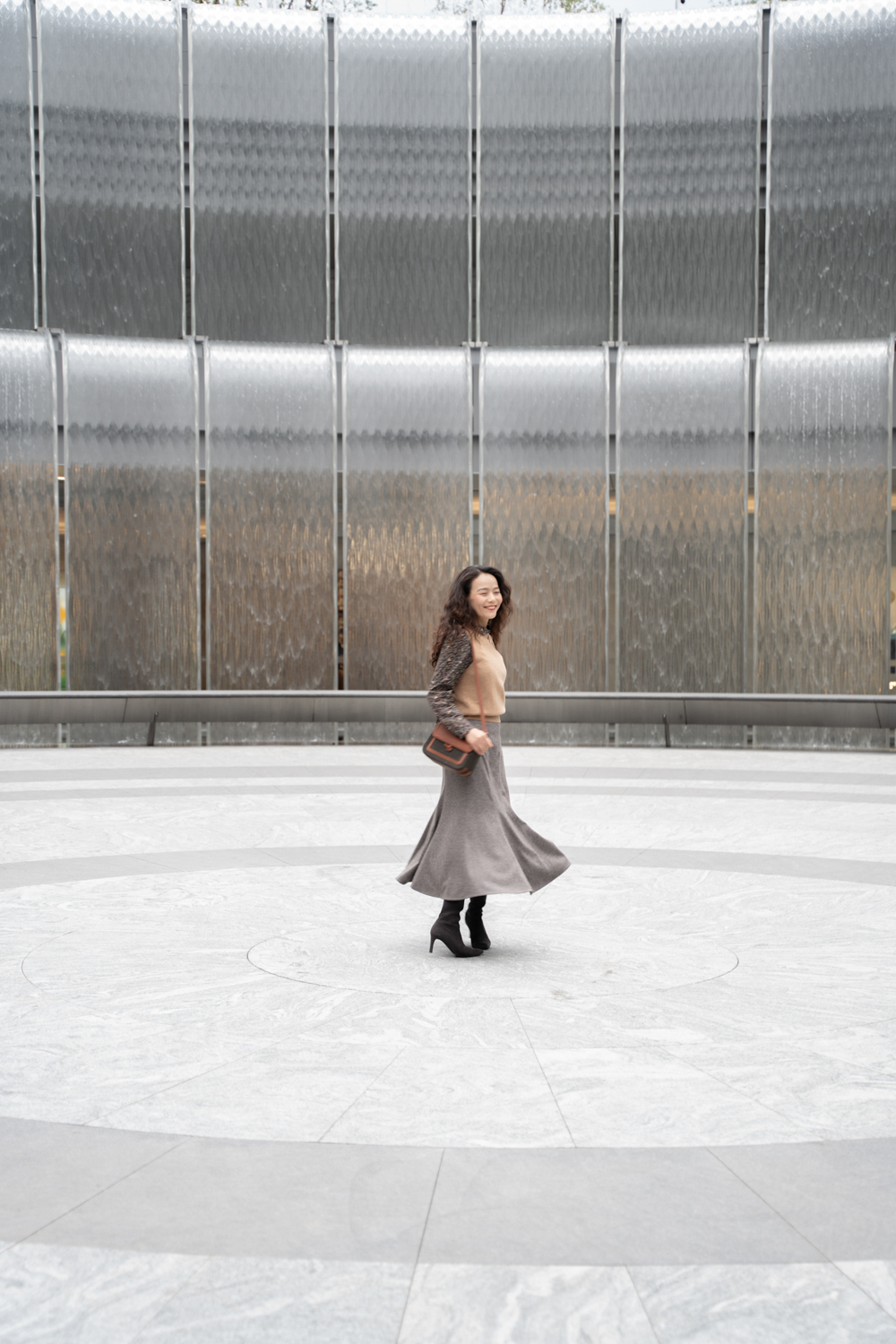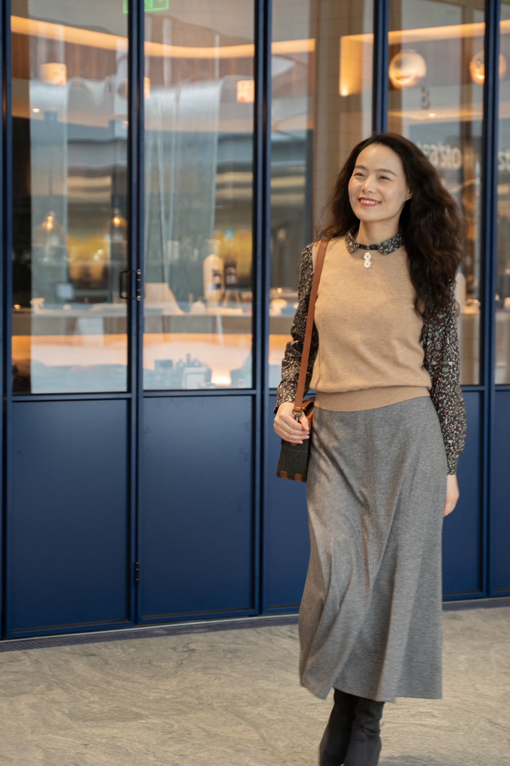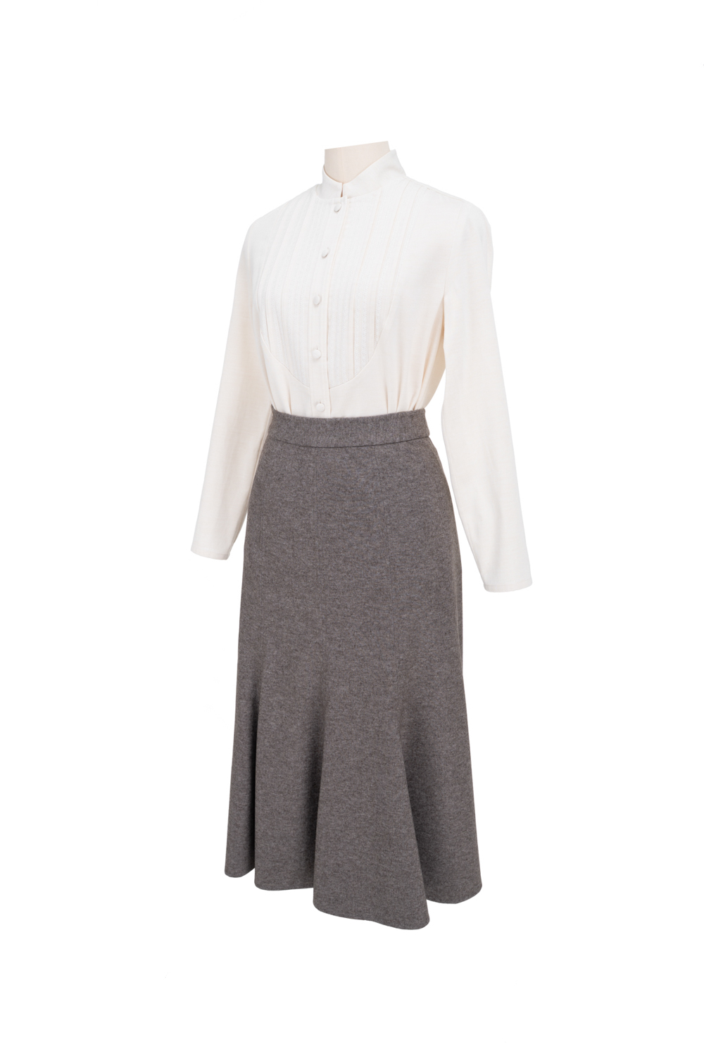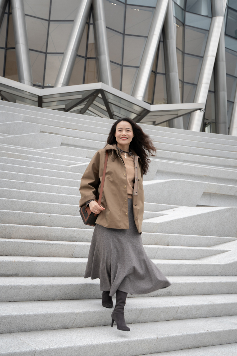 以New look风格为灵感的这条半裙版型修身显瘦,具有迪奥式的美丽轮廓,像盛开的玫瑰、铃兰,有着带人走进幸福之境的美好寓意,柔软垂坠感极佳的混纺羊毛针织面料,有着高级而沉静的底色。刻画入微的腰臀线条与向外缓缓展开的八片式鱼尾廓形呈现出曼妙与浪漫,这看似毫不费力的优雅,背后却是无数小时的匠心雕琢,让它成为行走的艺术品,周身弥漫着永不褪色的经典气息。它是冬日衣橱里不可错过的搭配佳伴,更是集实用、保暖、美感、于一身的经典单品。