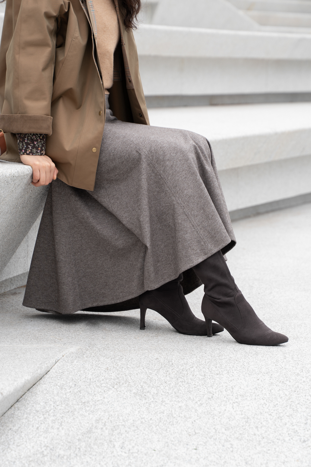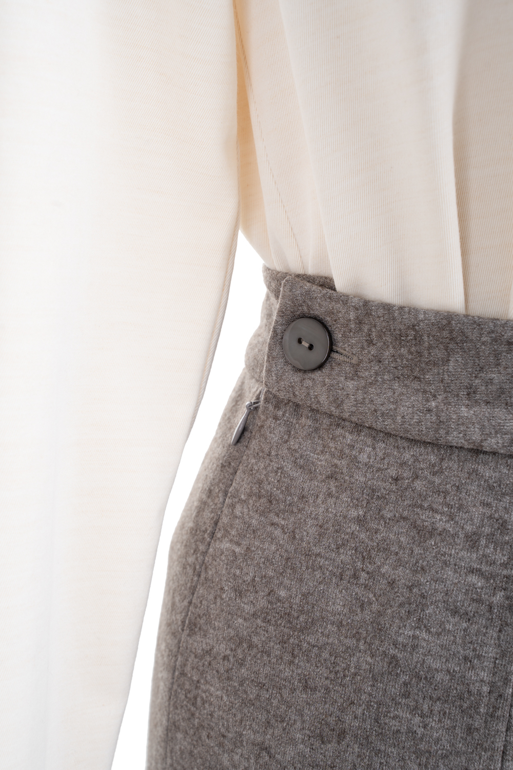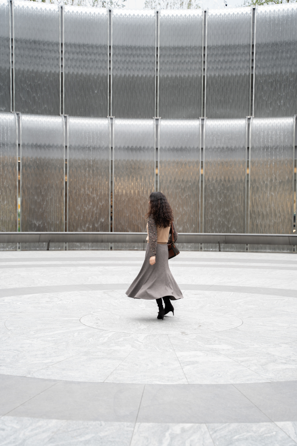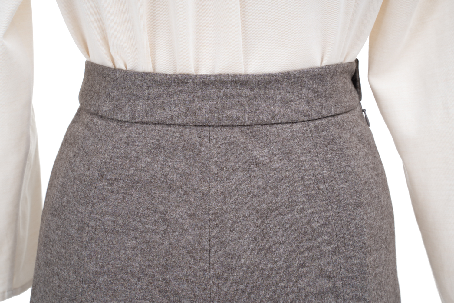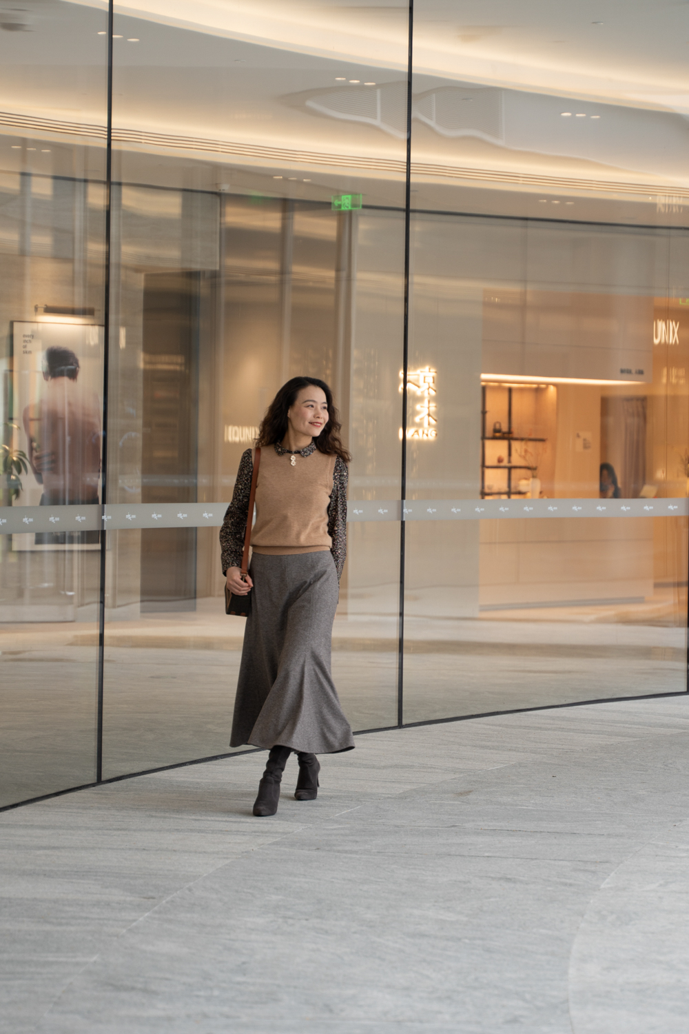 以New look风格为灵感的这条半裙版型修身显瘦,具有迪奥式的美丽轮廓,像盛开的玫瑰、铃兰,有着带人走进幸福之境的美好寓意,柔软垂坠感极佳的混纺羊毛针织面料,有着高级而沉静的底色。刻画入微的腰臀线条与向外缓缓展开的八片式鱼尾廓形呈现出曼妙与浪漫,这看似毫不费力的优雅,背后却是无数小时的匠心雕琢,让它成为行走的艺术品,周身弥漫着永不褪色的经典气息。它是冬日衣橱里不可错过的搭配佳伴,更是集实用、保暖、美感、于一身的经典单品。