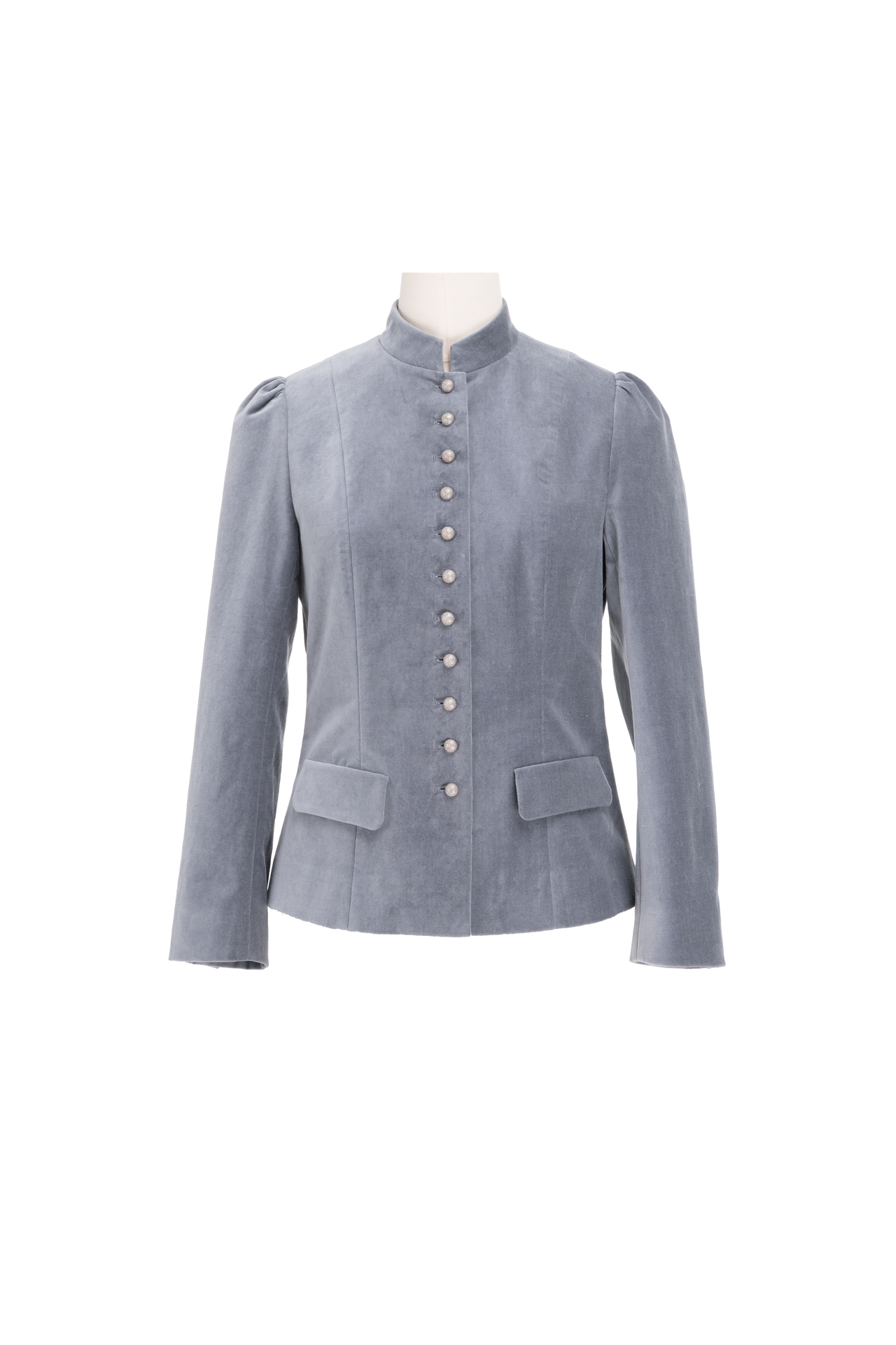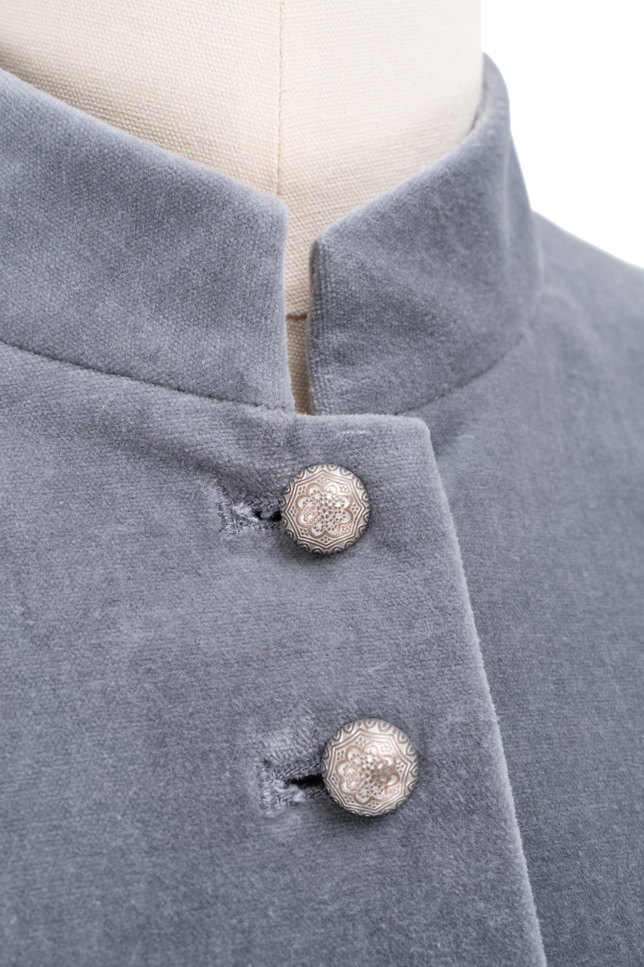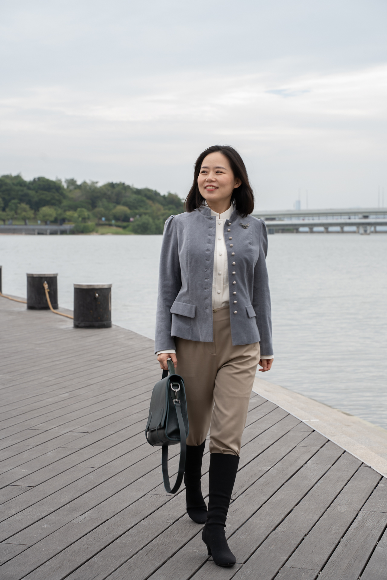 “谦和之力”的品位以至美之灰色达至低调内敛又兼具华彩,不是绚烂夺目的华丽,而是幽幽闪动光泽,传递出如缎面般细腻的光芒。优雅的立领设计是提升气质的关键,立体剪裁带出自然挺括的弧度,使颈项温暖更使精神振奋。精致刻花金属扣、肩部微妙的褶皱以及装饰性袋盖设计,每个精巧细节仿佛在古典的油画中领略过的那复古而高贵的风采,如今被“谦和之力”优雅诠释。这件好品位的短jacket有着古典法式风格,可与牛仔裤、白衬衫搭配打造干练优雅的日常造型,也可穿在大衣里让平绒质地舒适的温暖为形象注入内在谦逊、宠荣不惊的品行,可谓衣橱中的珍贵典藏。