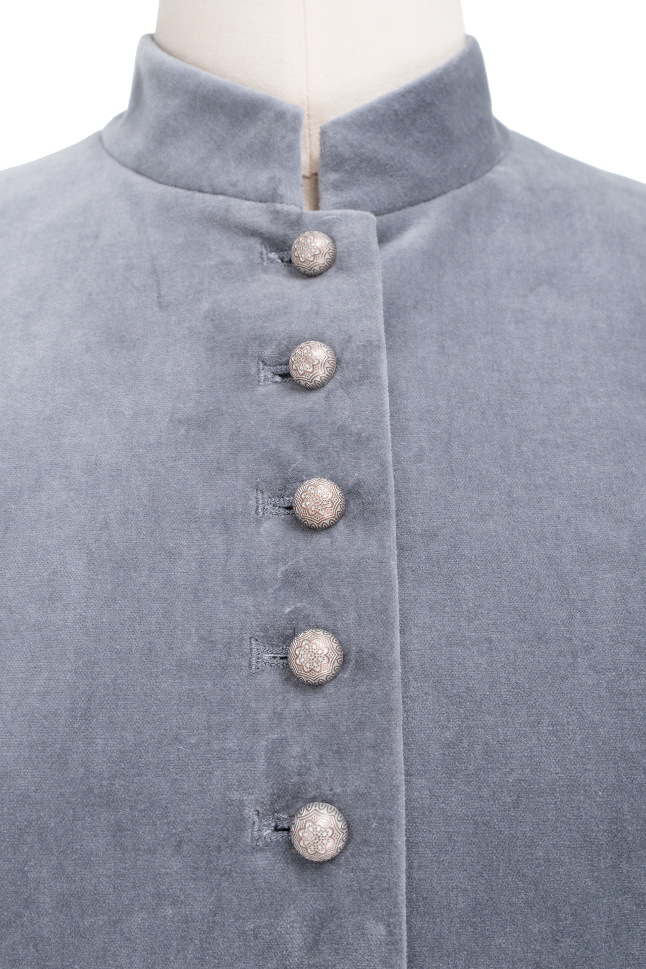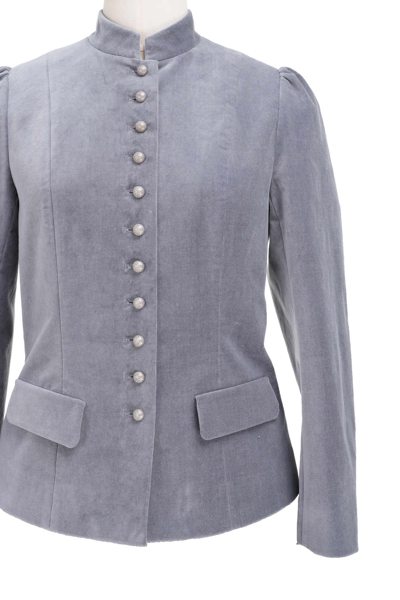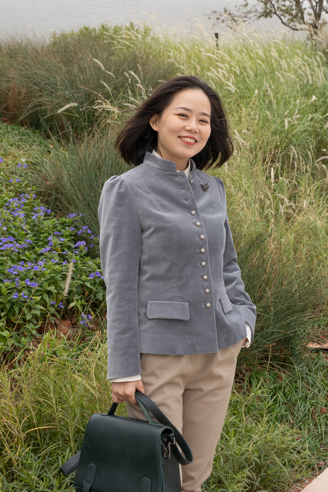 “谦和之力”的品位以至美之灰色达至低调内敛又兼具华彩,不是绚烂夺目的华丽,而是幽幽闪动光泽,传递出如缎面般细腻的光芒。优雅的立领设计是提升气质的关键,立体剪裁带出自然挺括的弧度,使颈项温暖更使精神振奋。精致刻花金属扣、肩部微妙的褶皱以及装饰性袋盖设计,每个精巧细节仿佛在古典的油画中领略过的那复古而高贵的风采,如今被“谦和之力”优雅诠释。这件好品位的短jacket有着古典法式风格,可与牛仔裤、白衬衫搭配打造干练优雅的日常造型,也可穿在大衣里让平绒质地舒适的温暖为形象注入内在谦逊、宠荣不惊的品行,可谓衣橱中的珍贵典藏。