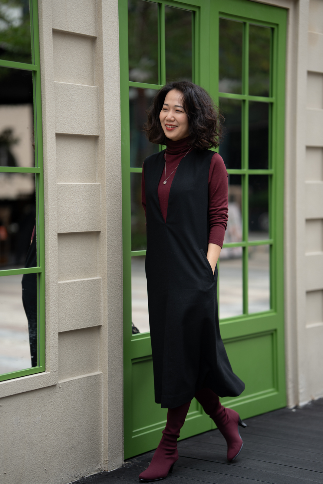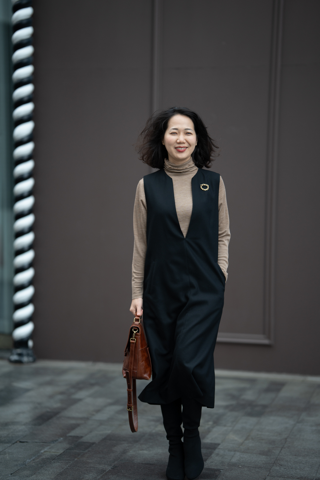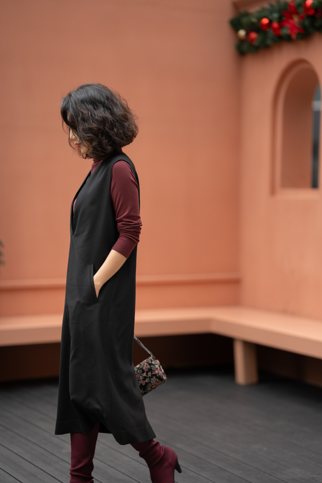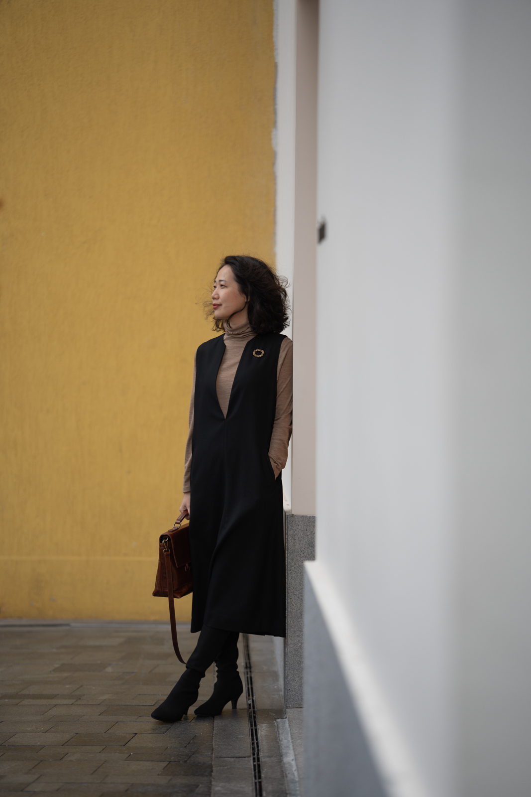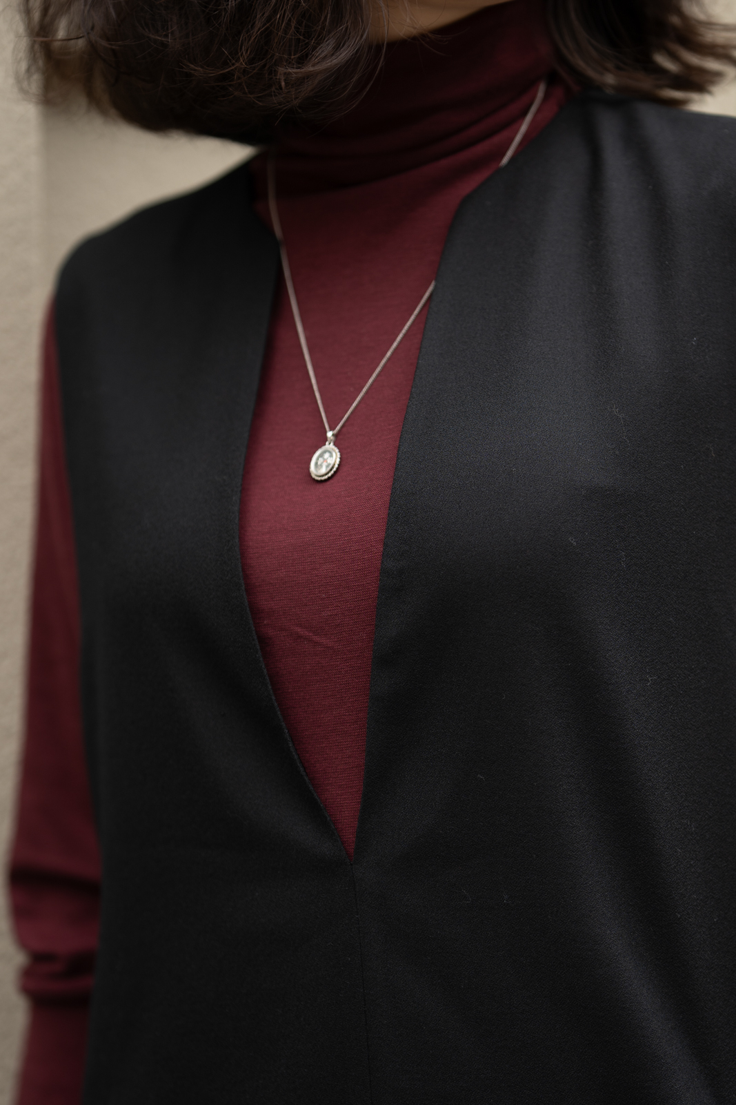 无袖V领罩衫就像衣橱中一位亲切的心照不宣的老朋友,用它智慧的搭配性为淑女带下经典而永恒的形象。高品质的黑色精纺羊毛结合简约流畅、恰到好处的H轮廓,极具修身效果,令穿着者更显高挑曼妙;巧妙且恰如其分的领型设计,为内搭服饰留下精彩表现的空间,同时更添年轻活泼的气息;贴心的插袋为双手带来可安放之处,展现随意迷人的造型。它,看似深沉内敛,却以忠诚和智慧守护着淑女隽永的优雅之态!