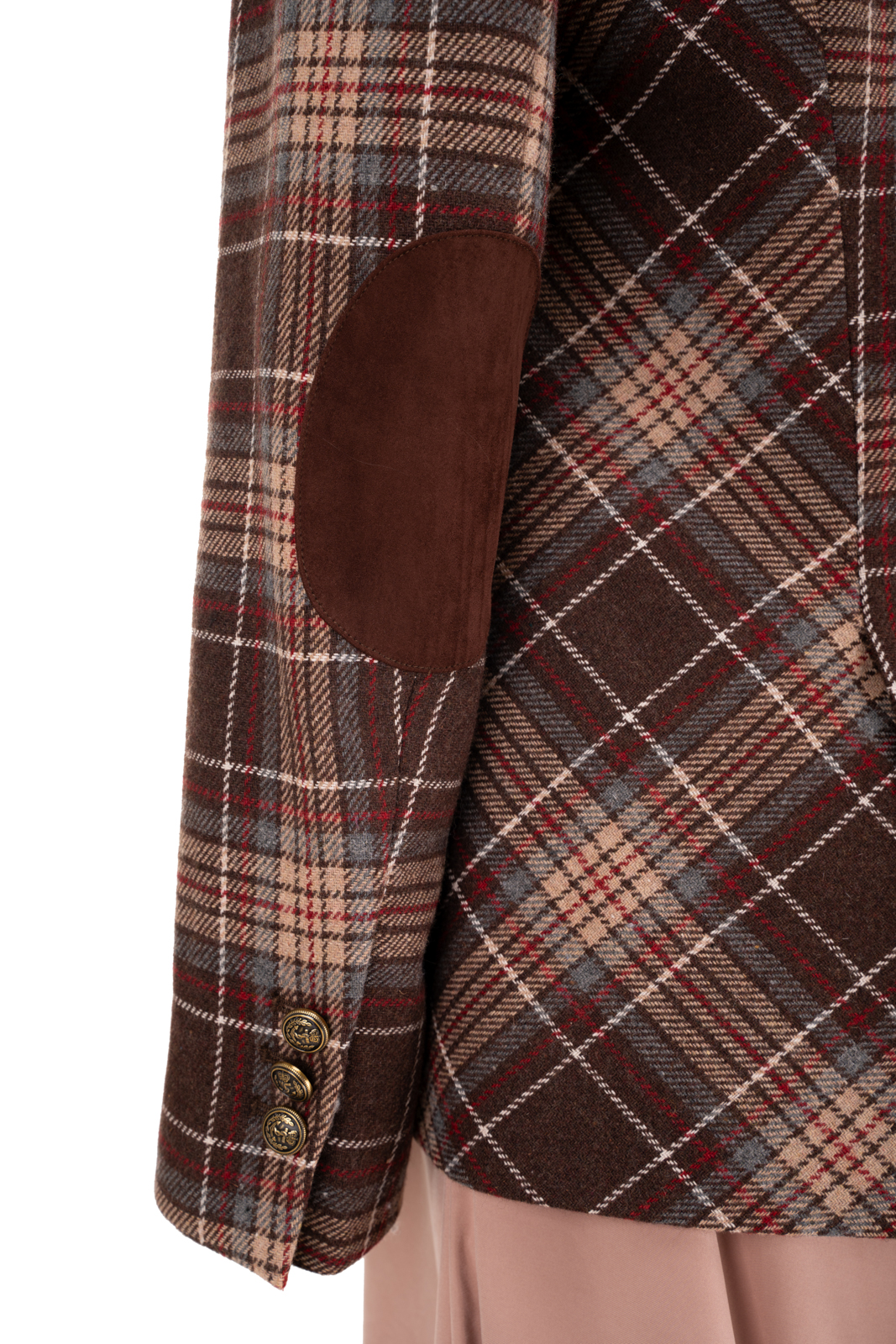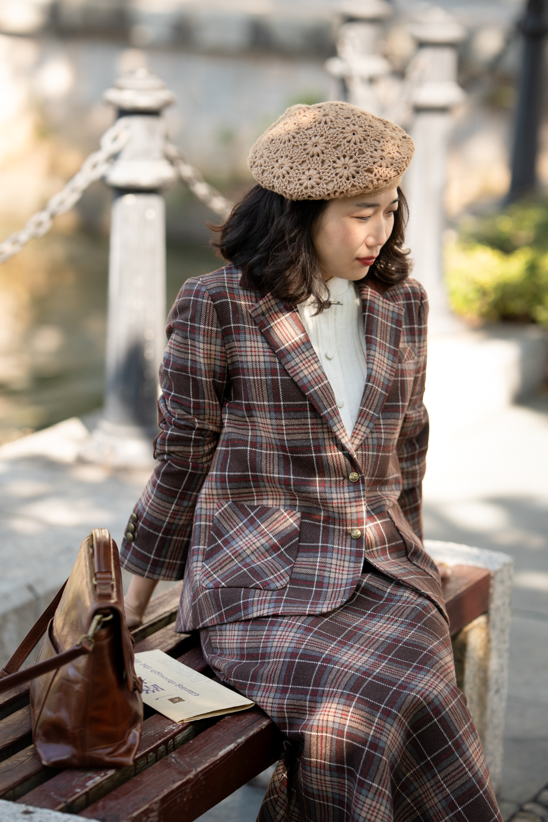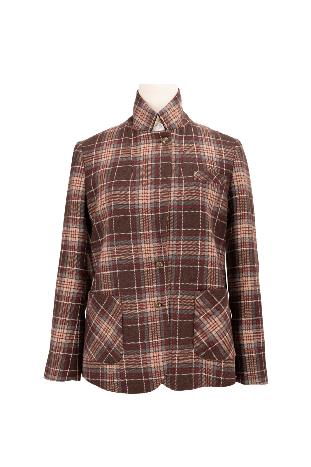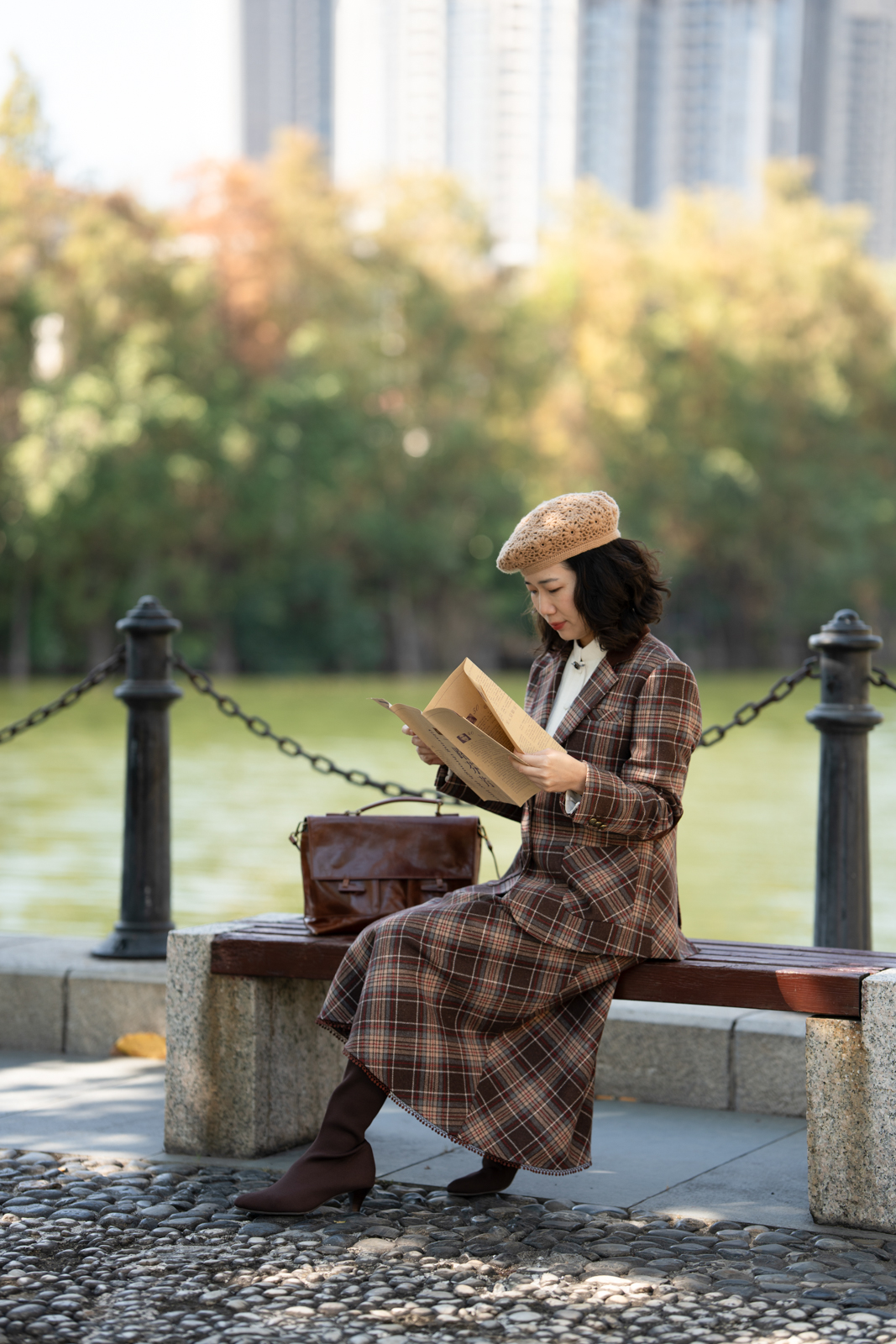古老的苏格兰格纹,用经纬线编织的史诗与文化的传承,不断在时尚里重现。交织的格纹仿佛吟诵不尽的英伦诗行,在光影流转间被反复品读传诵……格纹jacket与生俱来复古文艺的学院风从古至今都备受智识淑女们的青睐,亦是经典穿着的典范。宽松有度的版型带来穿着上的从容舒适,经典的平驳领上领拼入咖色麂皮,既能让脖颈处有更舒适的体感,同时也渲染了迷人的英伦风尚。衣身两侧的贴袋设计堪称点睛之笔,采用巧妙的斜纹剪裁工艺,丰富了视觉层次感,也让双手拥有了可安放之处……