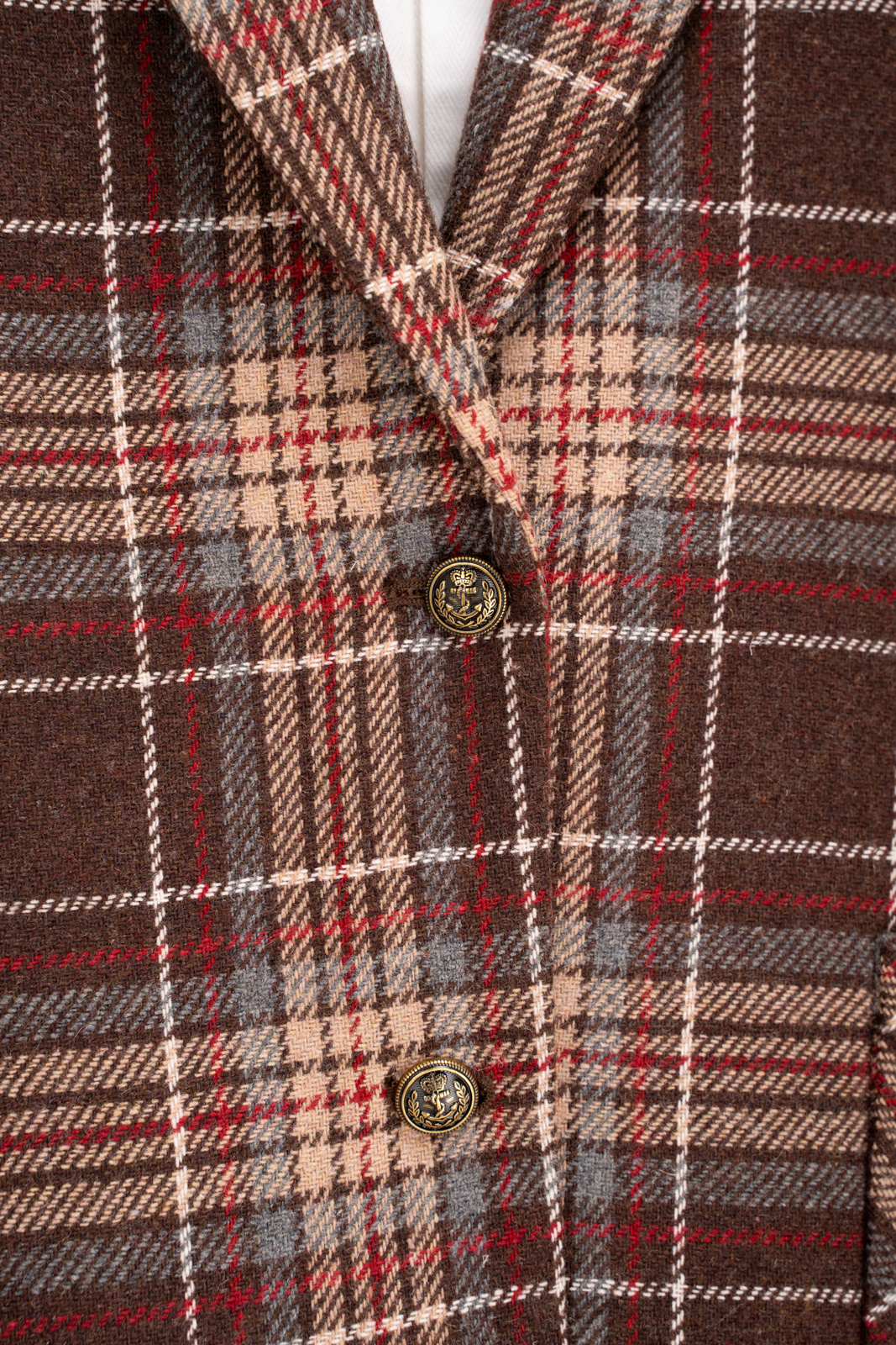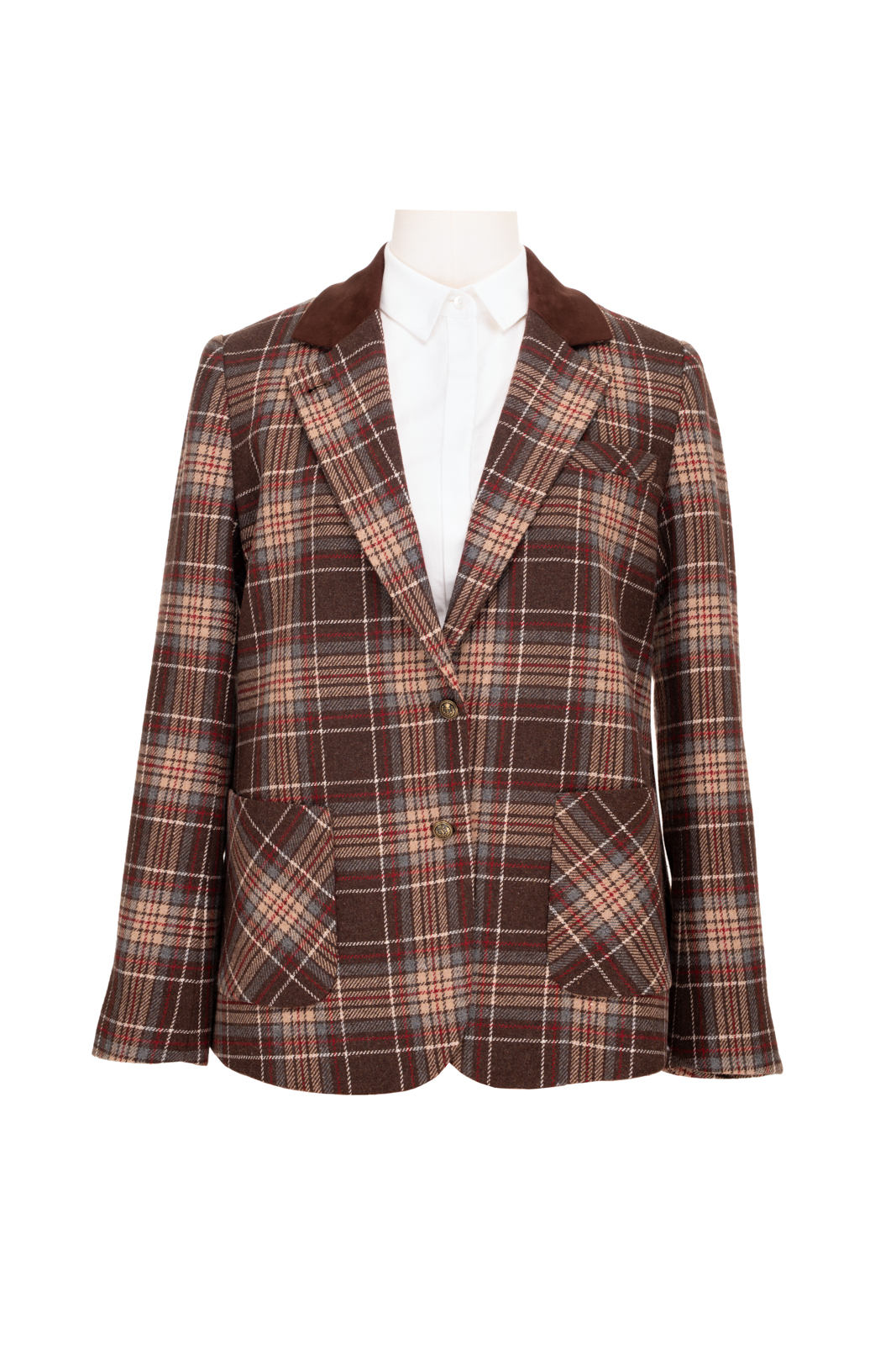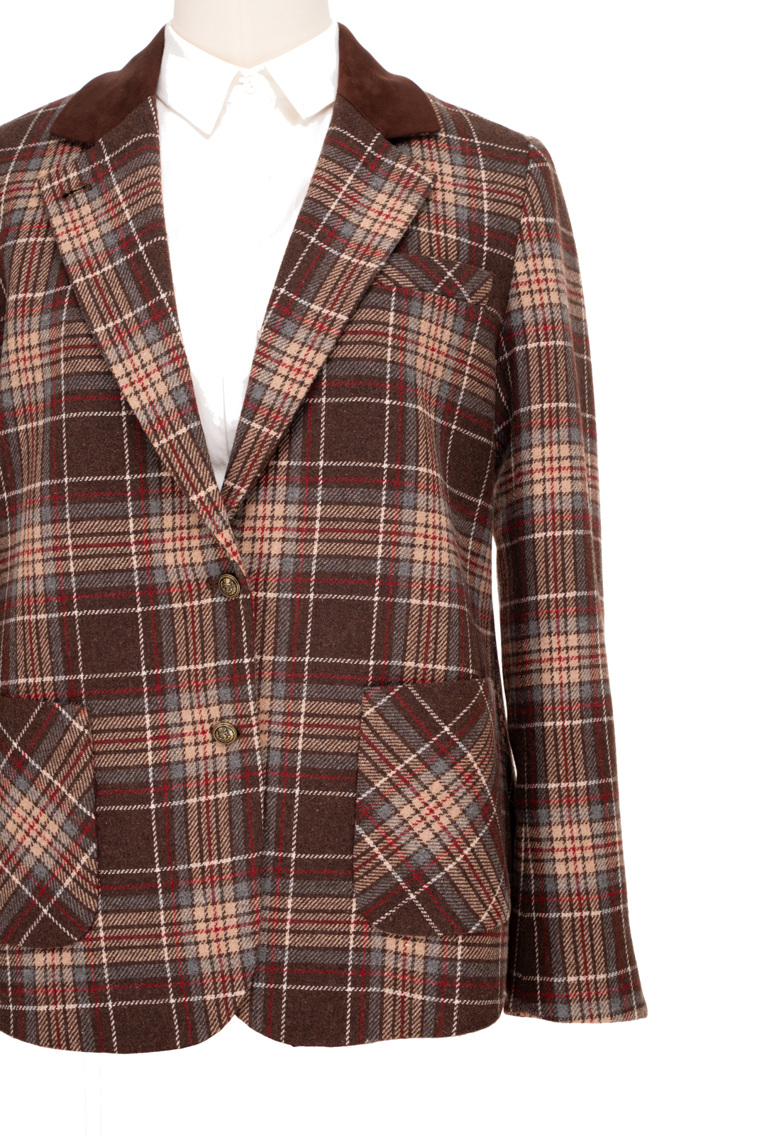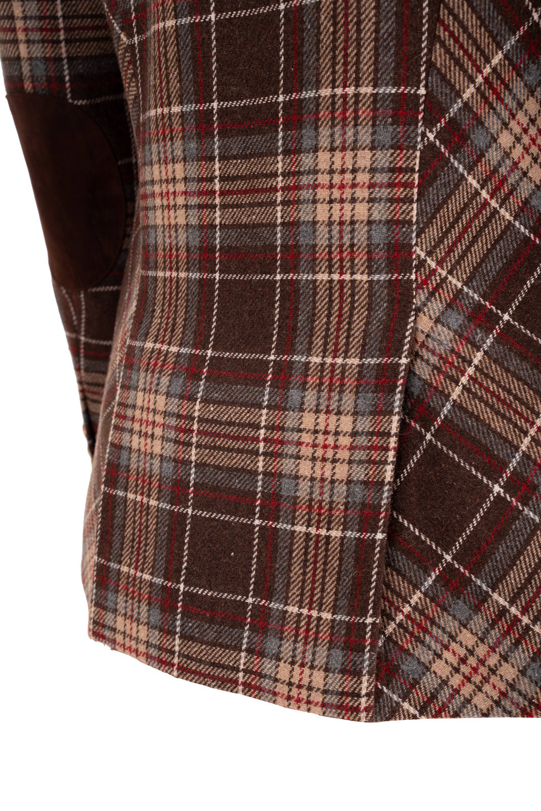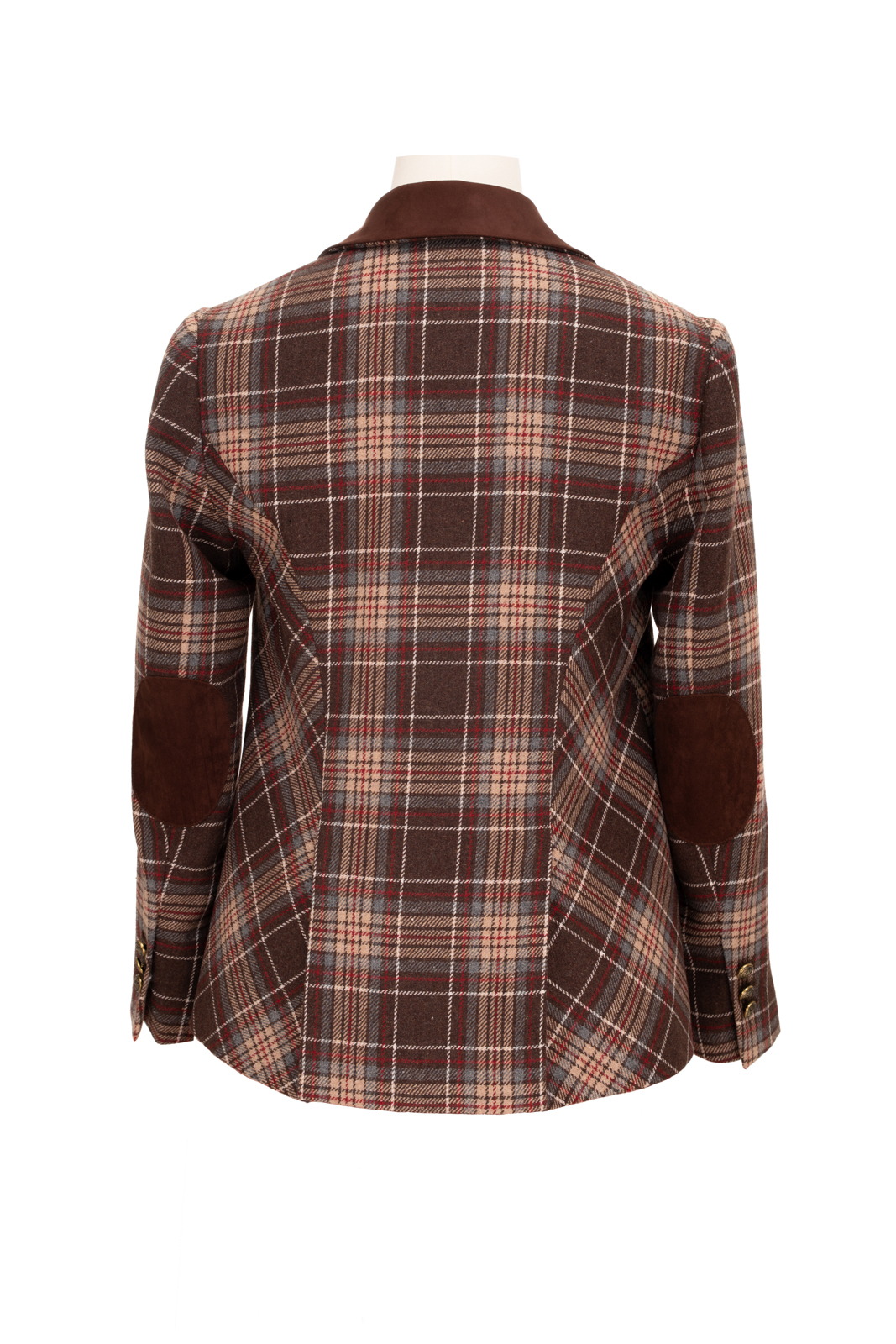 古老的苏格兰格纹,用经纬线编织的史诗与文化的传承,不断在时尚里重现。交织的格纹仿佛吟诵不尽的英伦诗行,在光影流转间被反复品读传诵……格纹jacket与生俱来复古文艺的学院风从古至今都备受智识淑女们的青睐,亦是经典穿着的典范。宽松有度的版型带来穿着上的从容舒适,经典的平驳领上领拼入咖色麂皮,既能让脖颈处有更舒适的体感,同时也渲染了迷人的英伦风尚。衣身两侧的贴袋设计堪称点睛之笔,采用巧妙的斜纹剪裁工艺,丰富了视觉层次感,也让双手拥有了可安放之处……