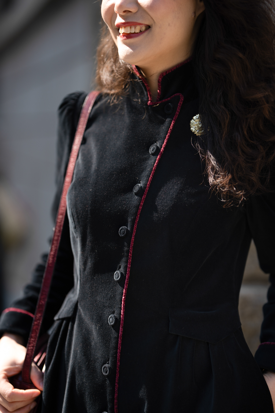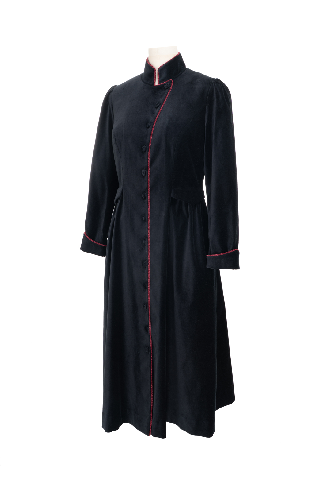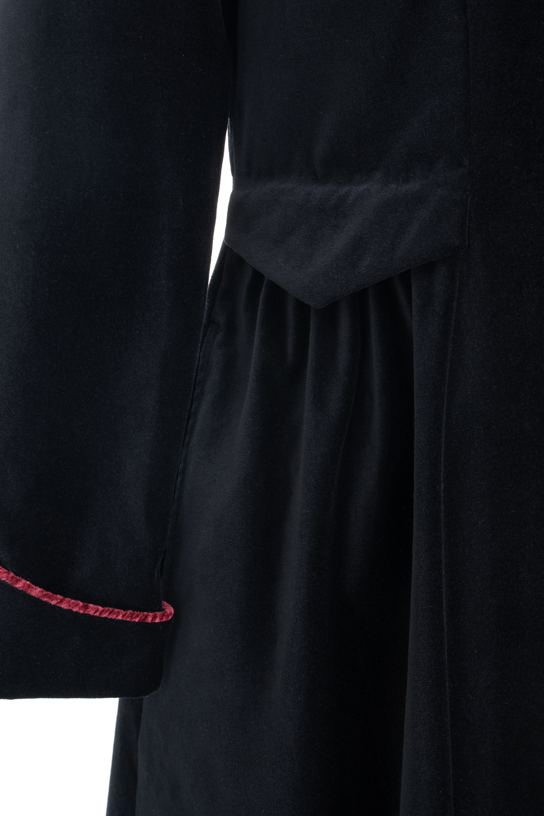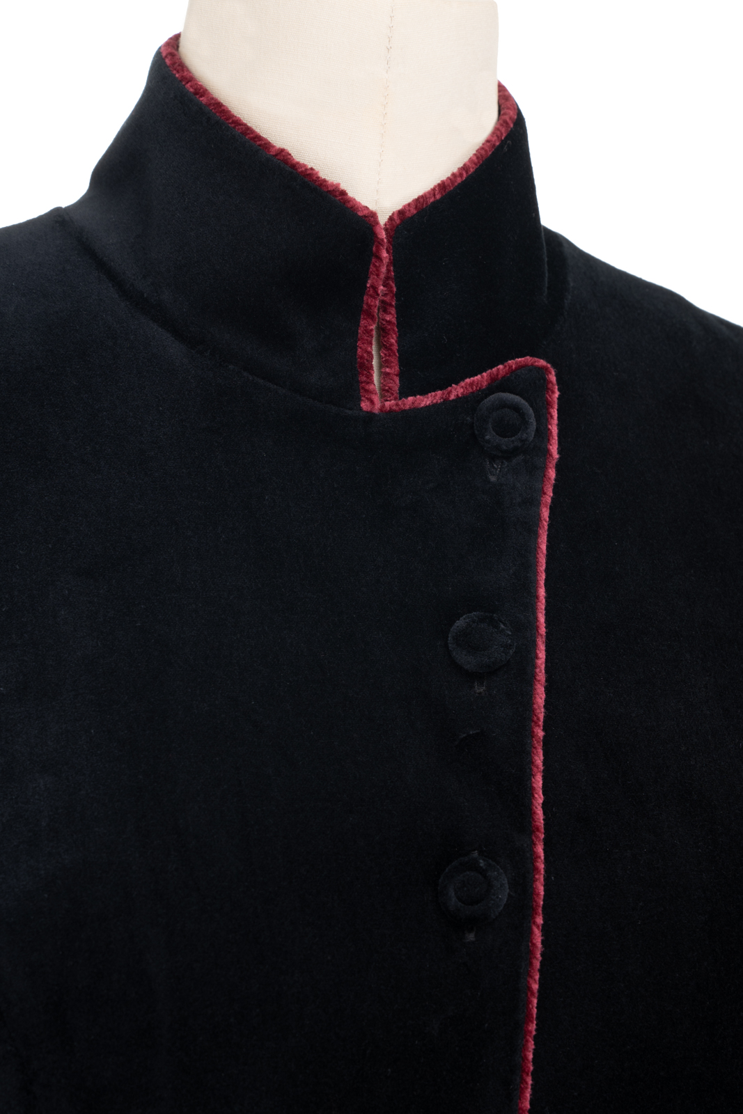 这“有华彩掠过的沉静”还有优雅的变奏,领型可以呈现立领的复古与翻驳领的活力,衣身两侧装饰袋盖与局部细碎的褶裥设计,让古典的格调更加深刻,举手投足间展现淑女生命内在深沉安静,却有如华彩般的美善穿透力与影响力……