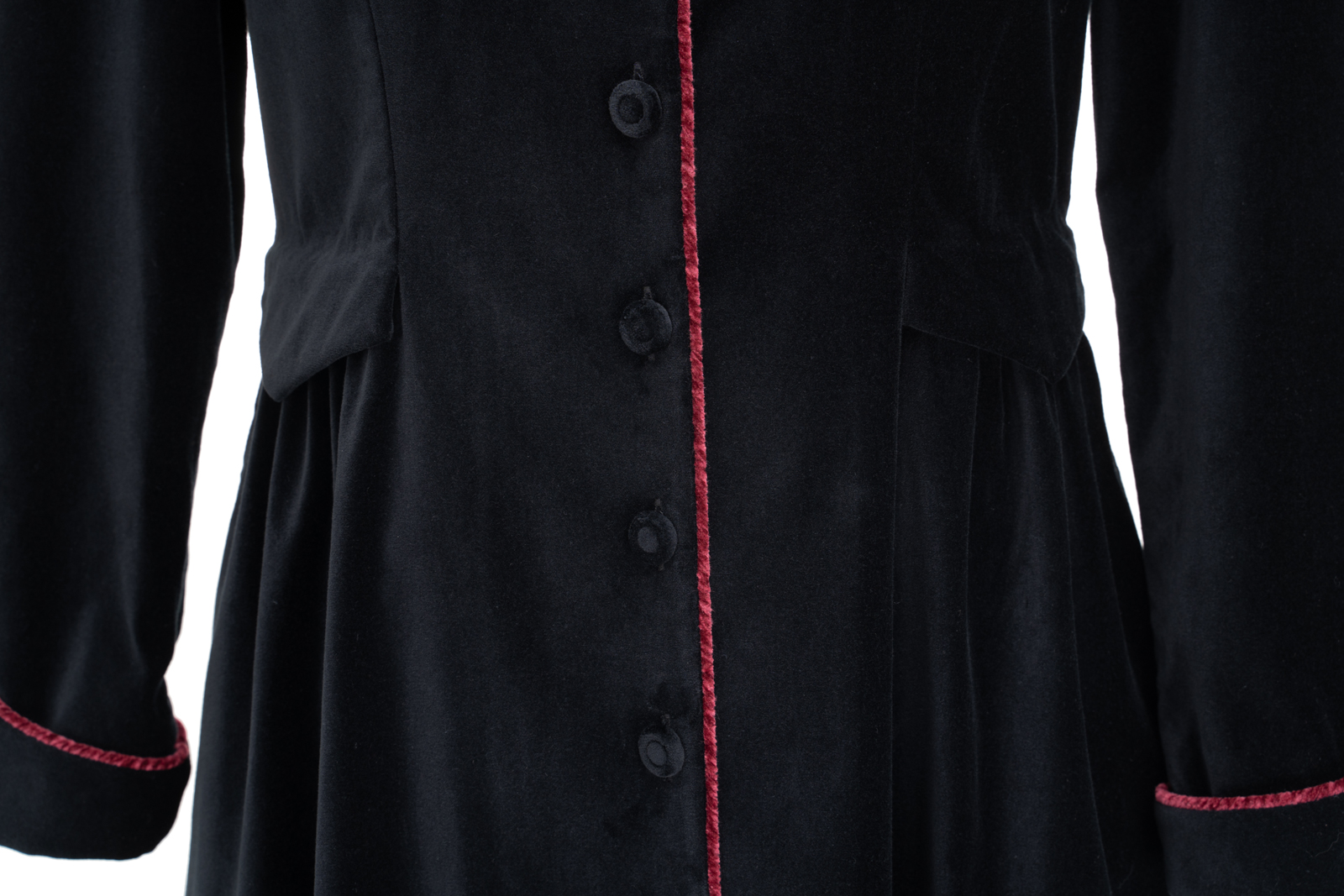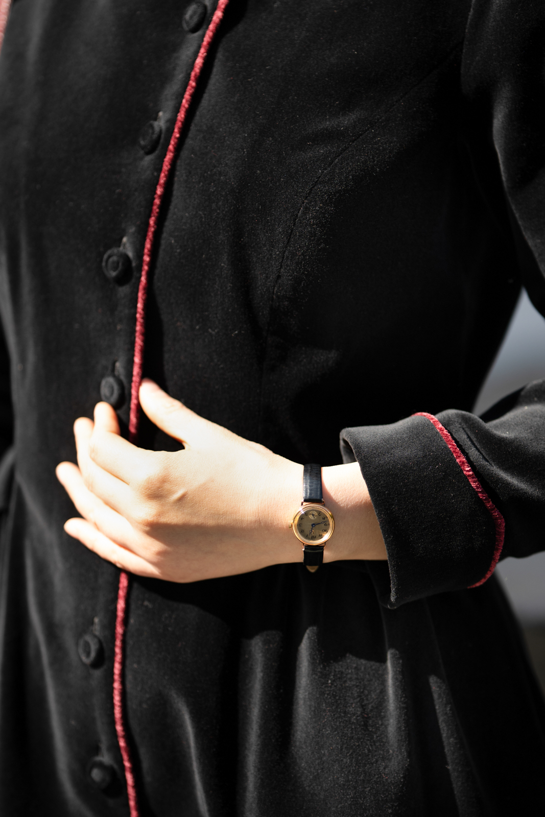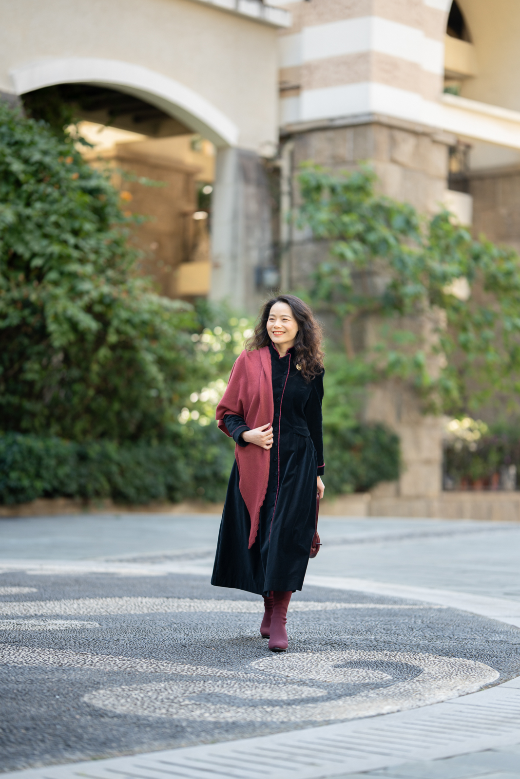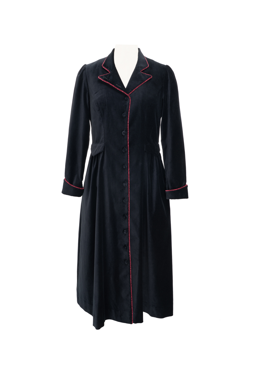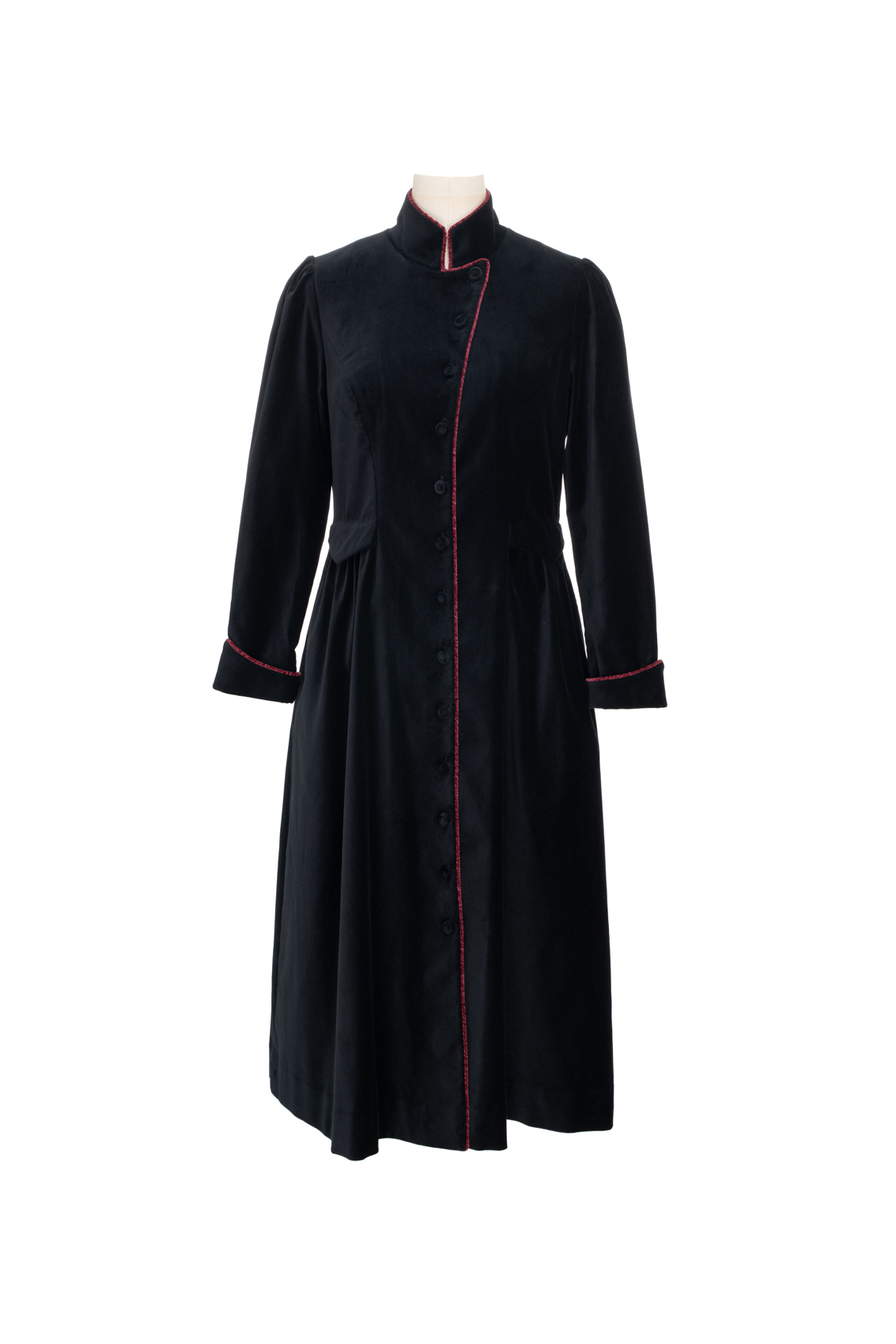 这“有华彩掠过的沉静”还有优雅的变奏,领型可以呈现立领的复古与翻驳领的活力,衣身两侧装饰袋盖与局部细碎的褶裥设计,让古典的格调更加深刻,举手投足间展现淑女生命内在深沉安静,却有如华彩般的美善穿透力与影响力……