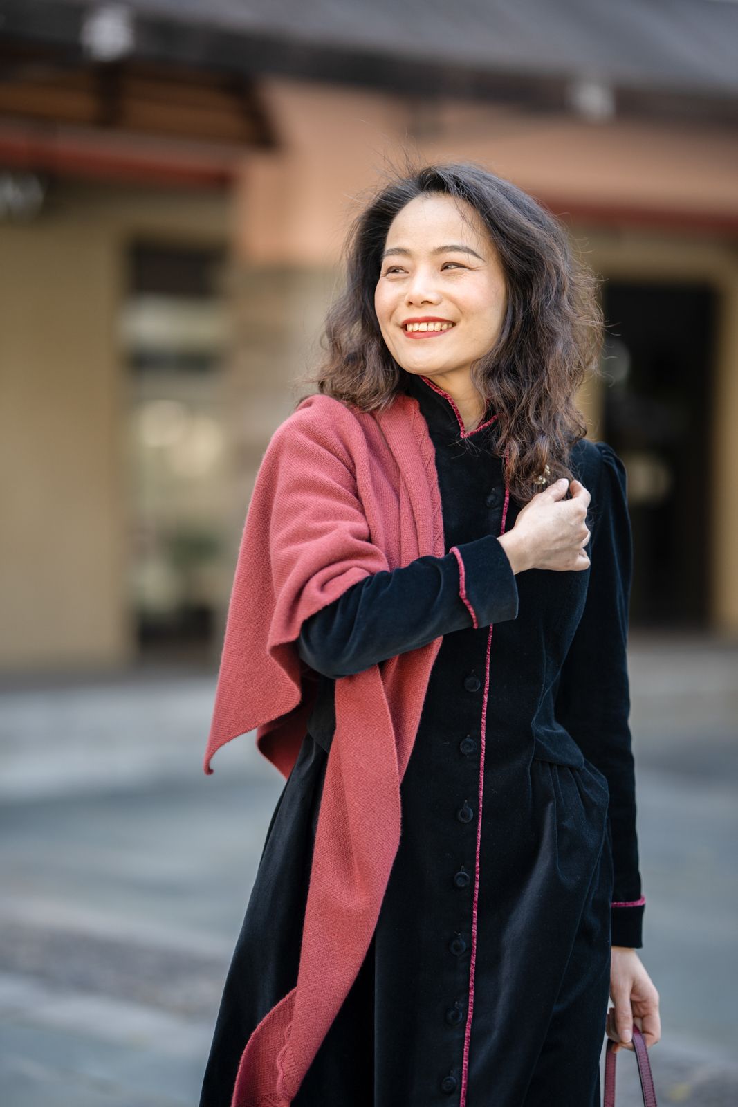 深蓝有深不见底的宽厚和广阔,深蓝也有经历惊涛骇浪后归于的平静。这深蓝,质地厚实,绒面饱满,细微的光泽中有可感可知的低调深邃、优美高贵,如淑女的品格谦卑沉静,她的生活并不总是遂如人意,却愿意选择饶恕、感恩、祝福,生命安静于光辉之中。从优美的颈间萦绕而下的一抹红,掠过沉静的深蓝,流畅自然,点缀了深蓝又仿佛亲吻了吟唱者的歌喉,唱出了即兴演奏的华彩段,让听者钦佩动容……