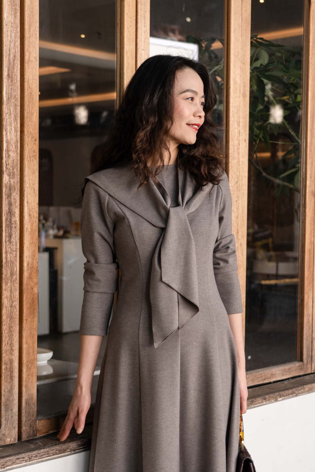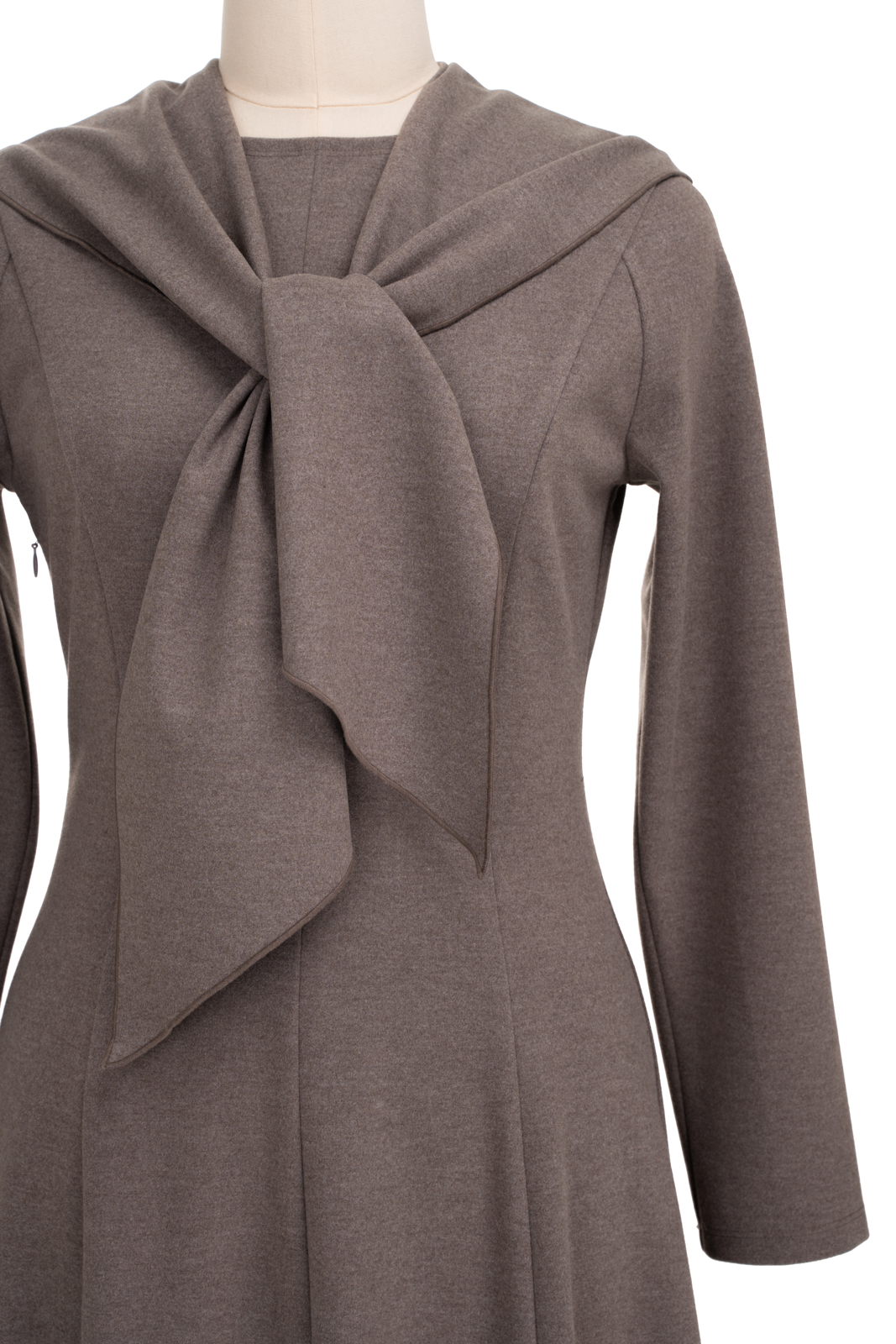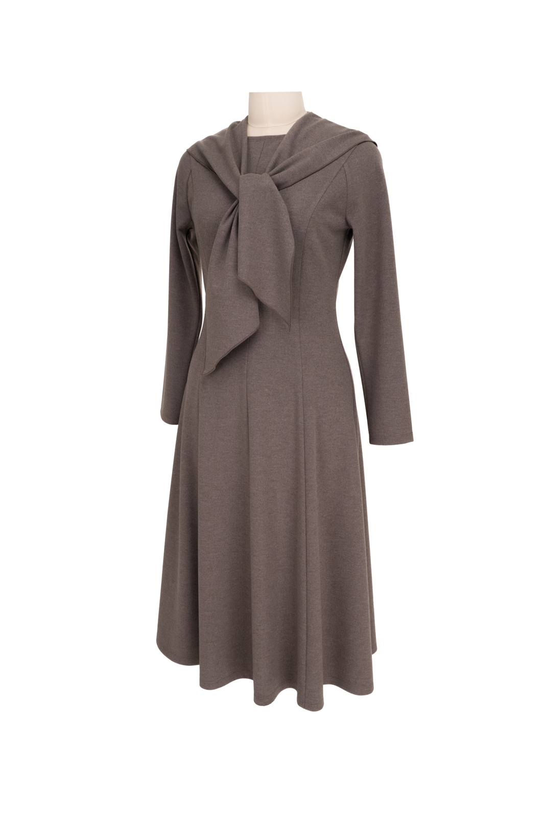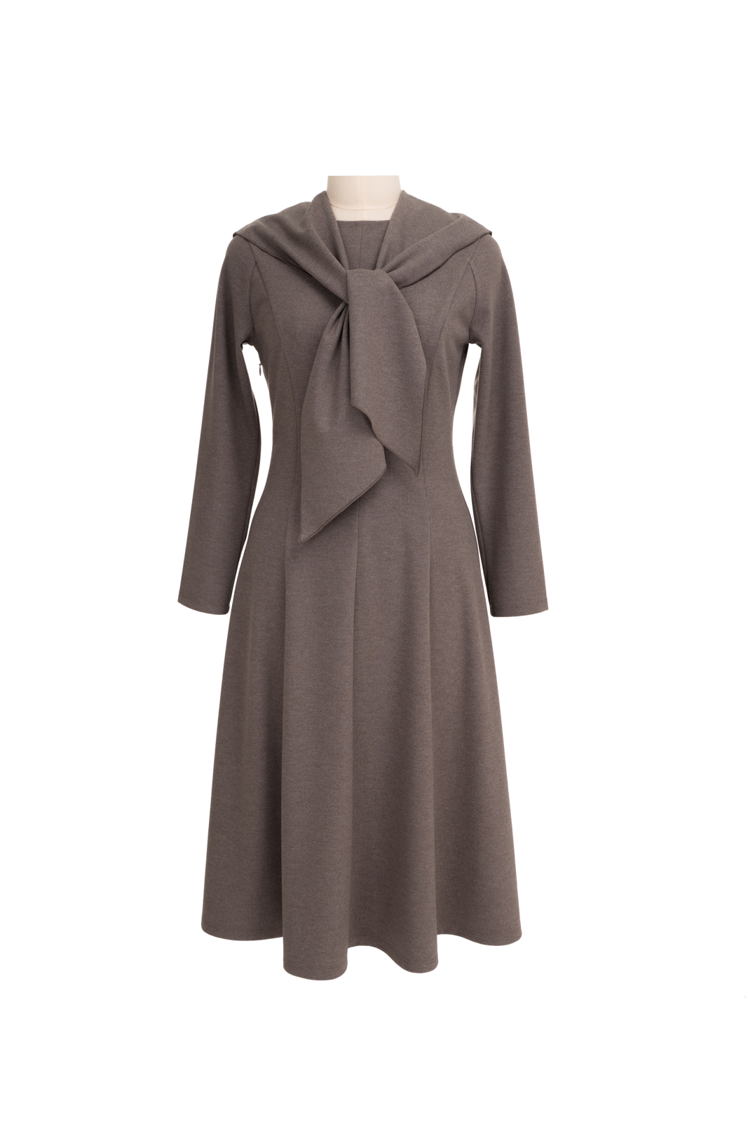 柔软亲肤又温暖的针织面料,确保修身却不紧身,轻描淡写地勾勒出迷人曲线;A轮廓与灰褐色像是优雅的双重奏,隐含着设计师的用心:用简练的线条刻画高雅,在一块面料里做出完美的梦!搭配别出心裁的本布小披肩,这是造型的点睛之笔,也注入了一抹温暖的呵护与纯真的气息。浪漫的大裙摆、温暖的色调与精彩的造型,让maia’s的芭蕾舞女郎在深冬也要欢欣起舞……