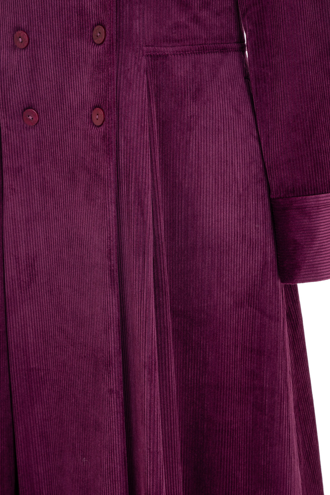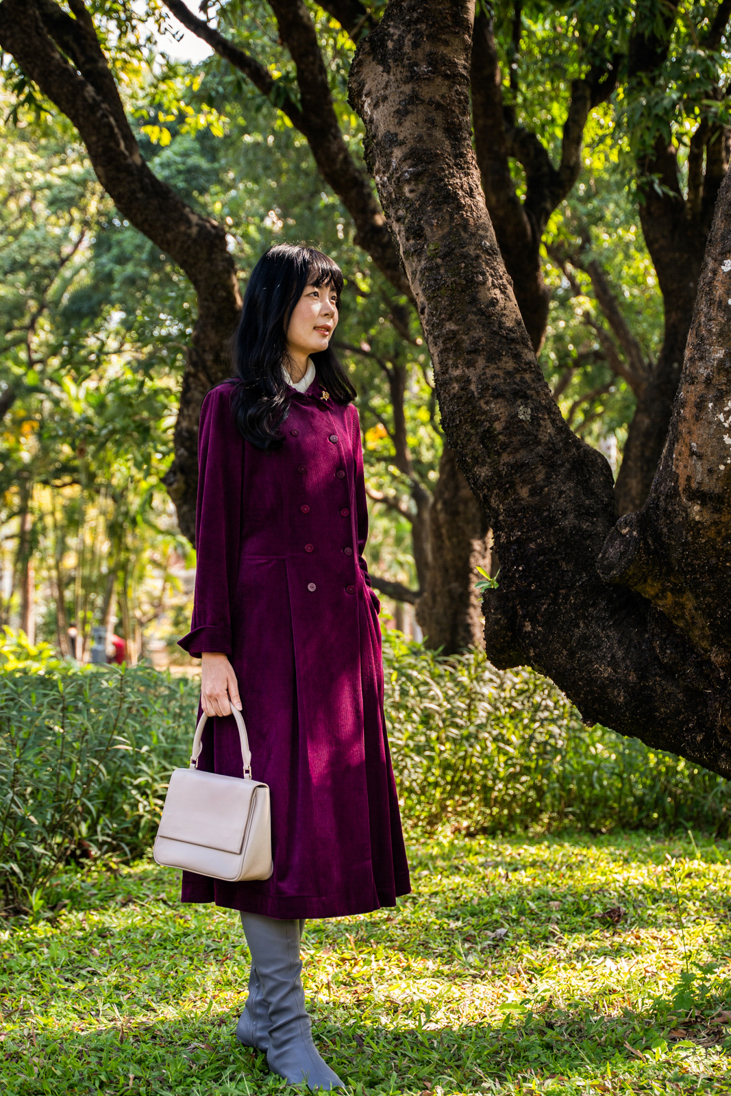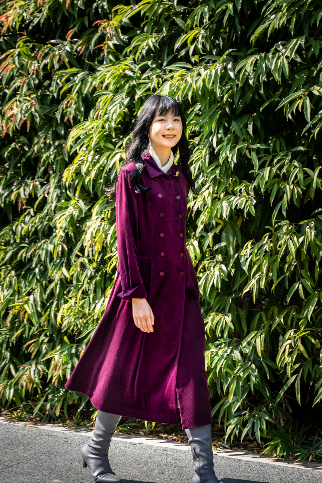 这馥郁的红,是有经历的颜色,一瓣一瓣层层叠叠,累积着历练的份量,让颜色愈加浓烈,高贵而典雅……灯芯绒质地的肌理印刻着玫瑰生长的力度,平顺曲折中留下生命动人的肌理,温暖感人,让香气四溢,沁人心脾。面料质地柔滑垂坠,有举重若轻的从容姿态。双排扣的设计大气帅气,点缀着自然朴实的果实扣,一如淑女经历世事、富有阅历却依旧保持天真与纯净……玫瑰的往事并不如烟,沉淀下的美好会溢出真正的芬芳,留下深刻的记忆,亦为他人带去美好的影响力。在玫瑰的往事里,遗憾忧愁尽都飘散,粲然迎向生命的自由与洒脱……