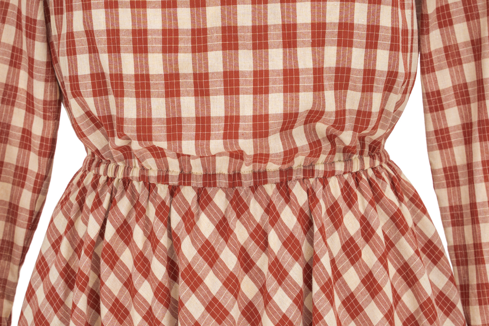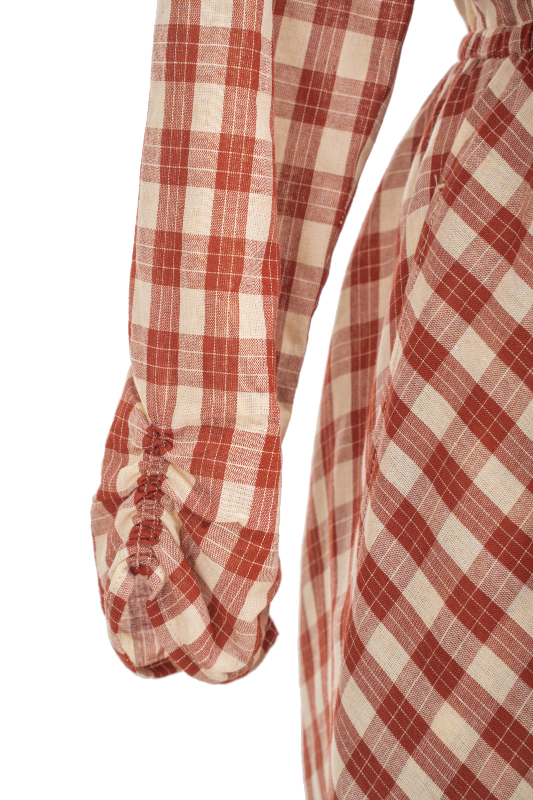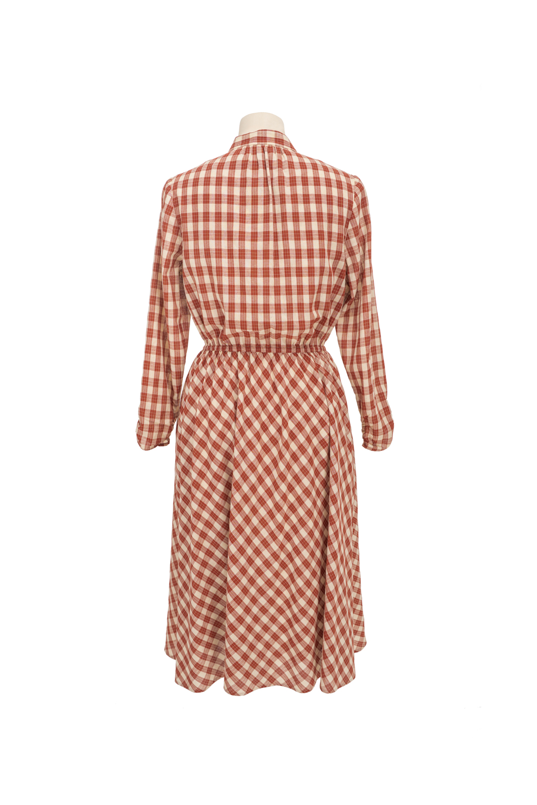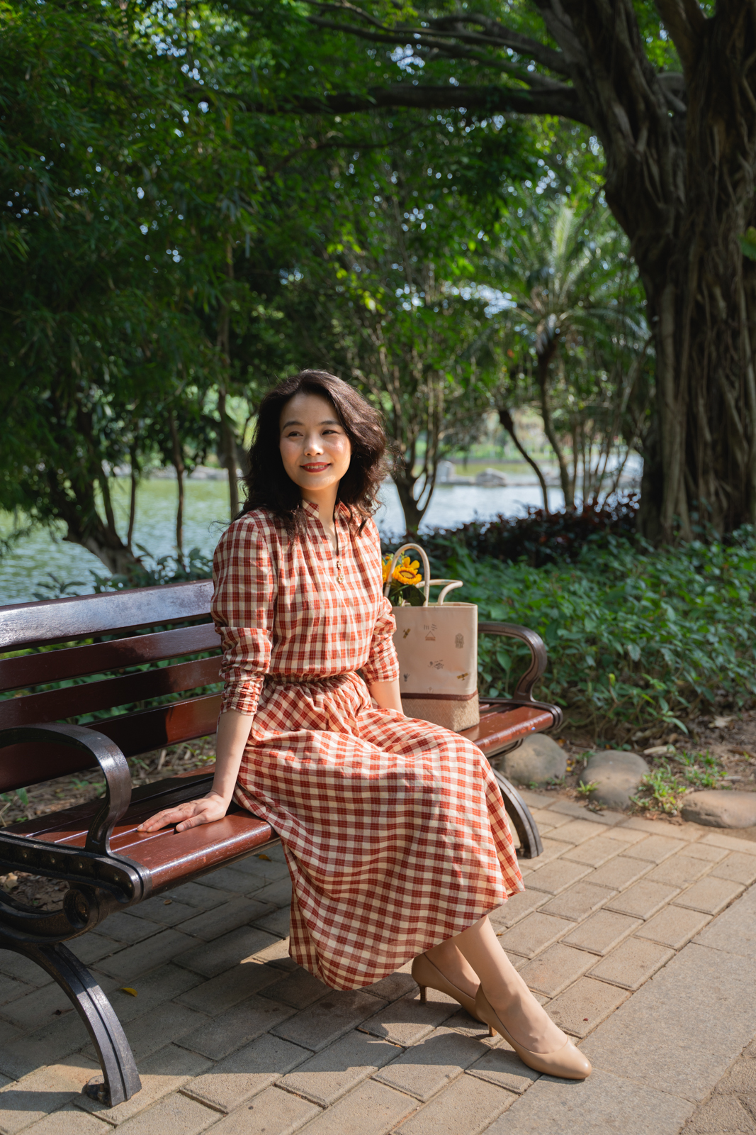 此款连身裙采用轻薄透气且飘逸的细棉格纹面料制作,橘红与米白交织出独属于春夏的欢快协奏曲,仿佛被蜜色的阳光播下热情与喜悦。简约的小V领无声修饰颈部线条,腰部的松紧设计以温柔的力度制造出纤美的支点,不仅勾勒身形还带来轻松舒适的穿着体验。无论是穿梭于都市街区还是漫步森林海滩,它都能为淑女营造出一个闲适、松弛的优雅形象,陪你一同领略人间四月天的美妙……