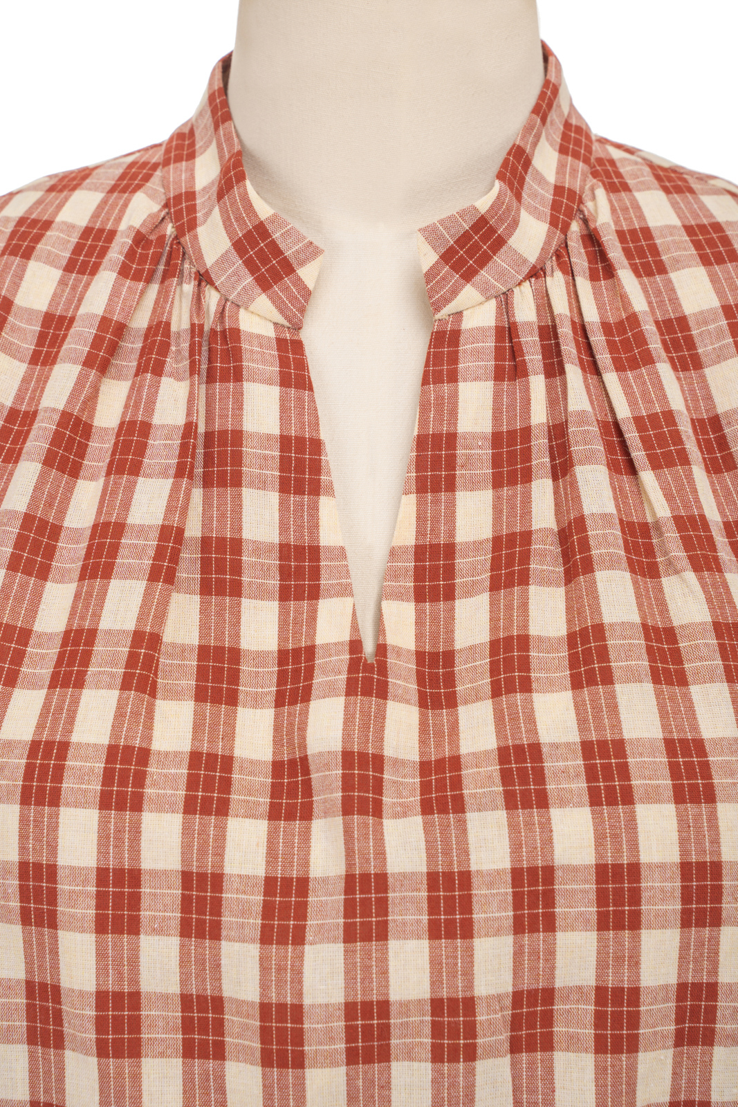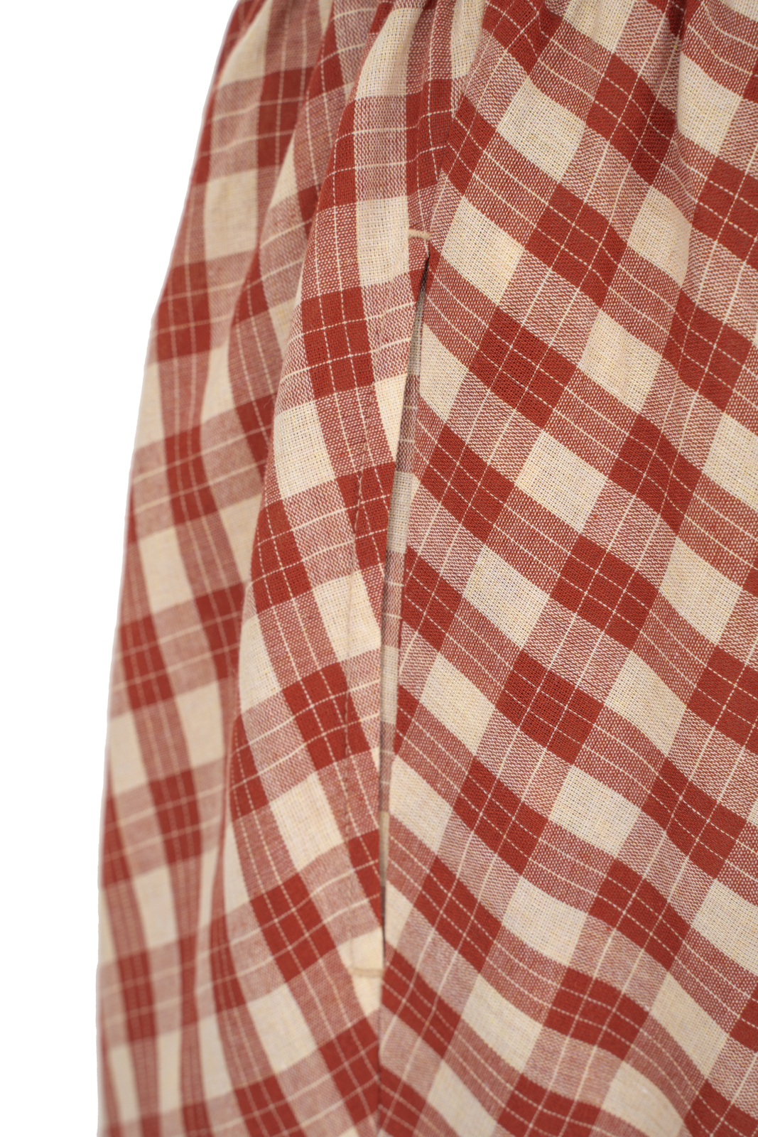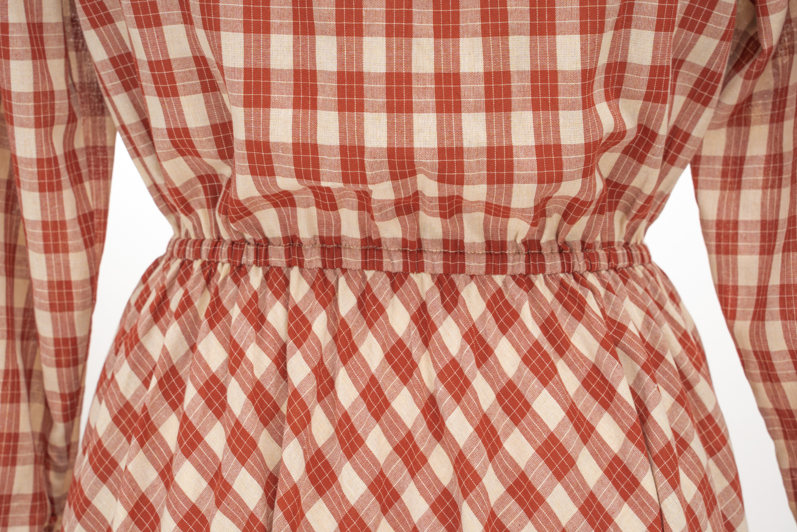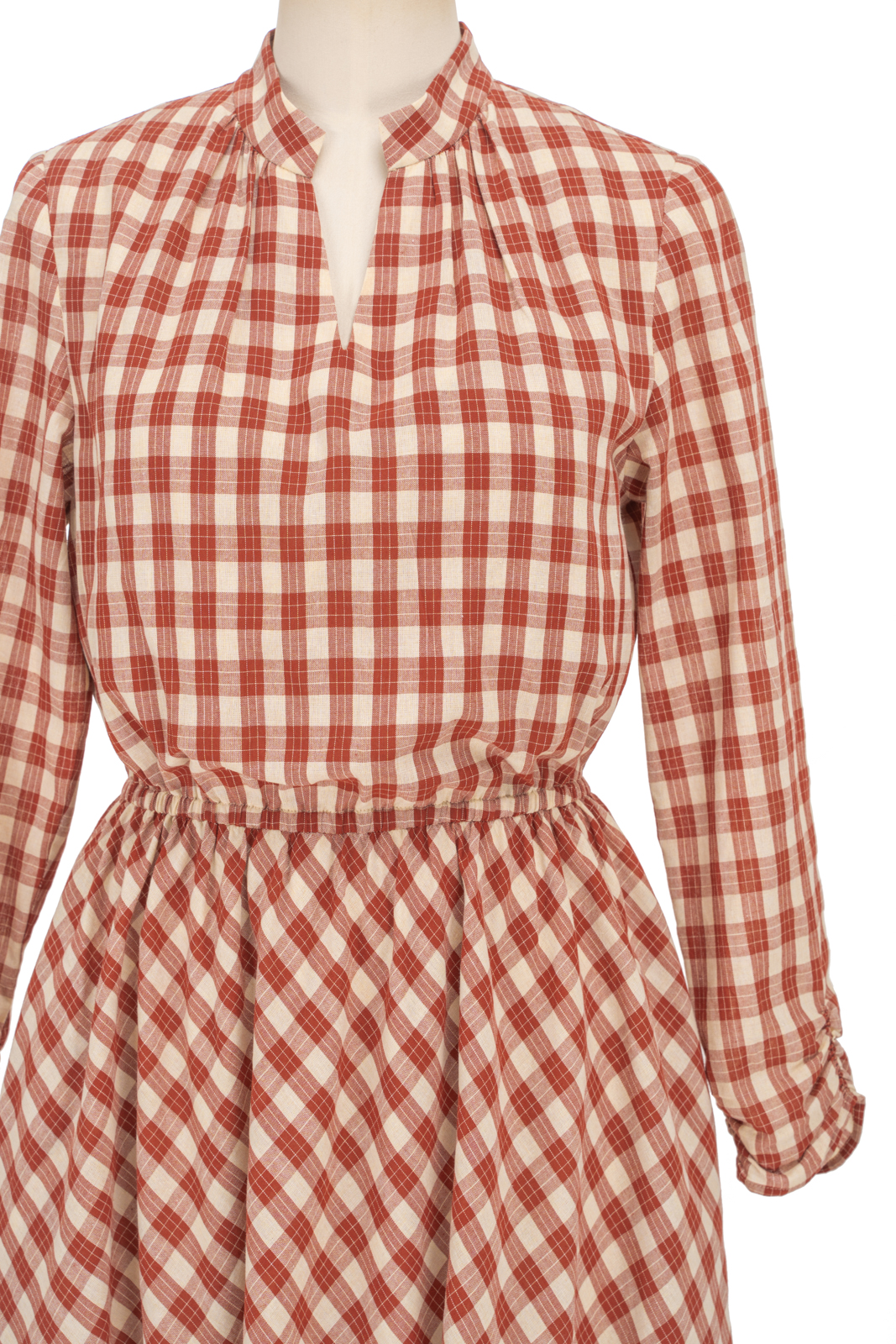 此款连身裙采用轻薄透气且飘逸的细棉格纹面料制作,橘红与米白交织出独属于春夏的欢快协奏曲,仿佛被蜜色的阳光播下热情与喜悦。简约的小V领无声修饰颈部线条,腰部的松紧设计以温柔的力度制造出纤美的支点,不仅勾勒身形还带来轻松舒适的穿着体验。无论是穿梭于都市街区还是漫步森林海滩,它都能为淑女营造出一个闲适、松弛的优雅形象,陪你一同领略人间四月天的美妙……