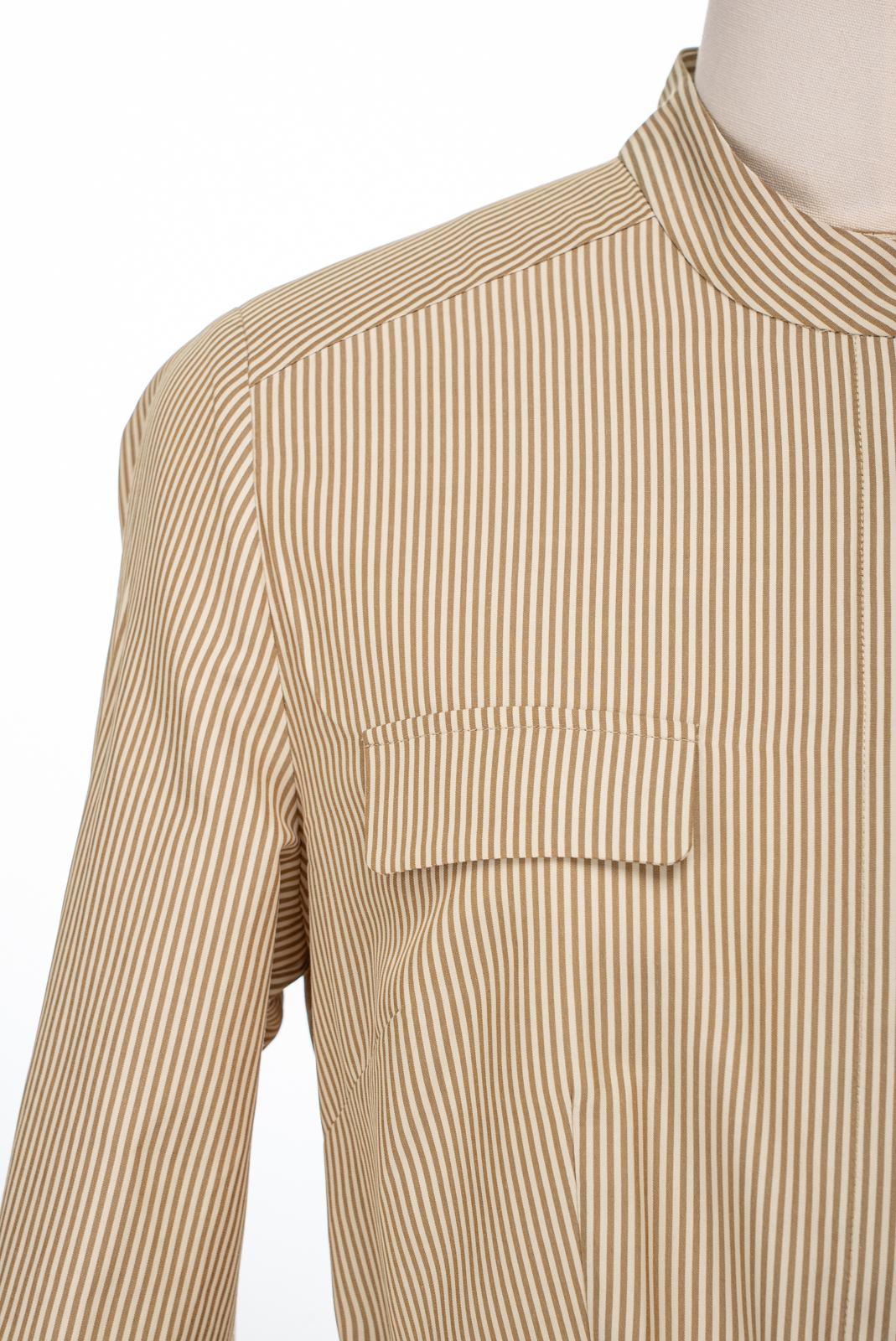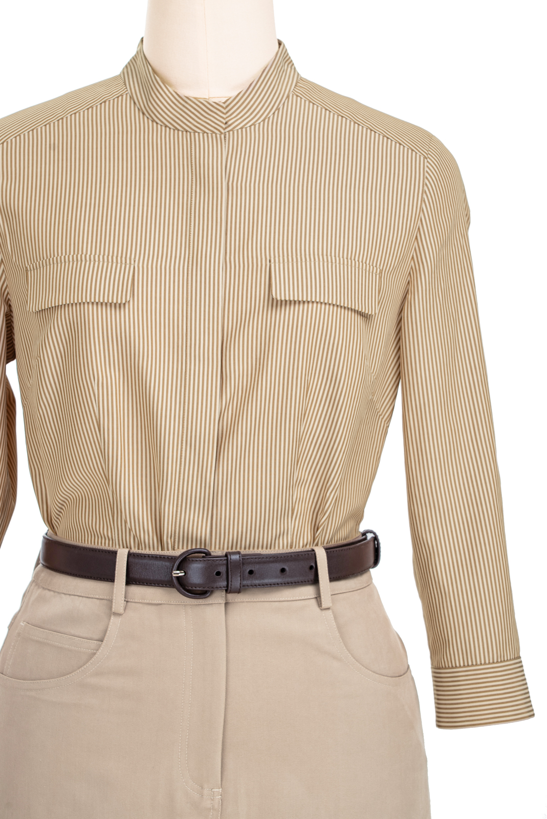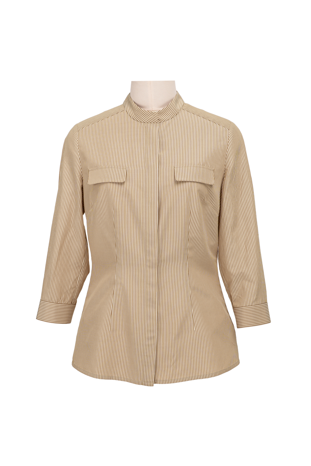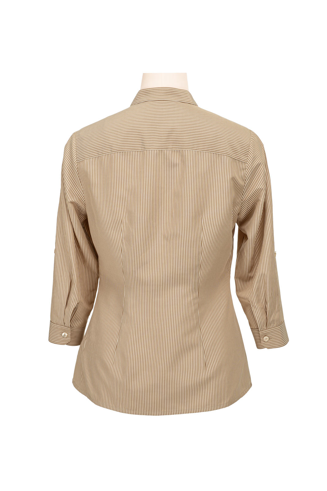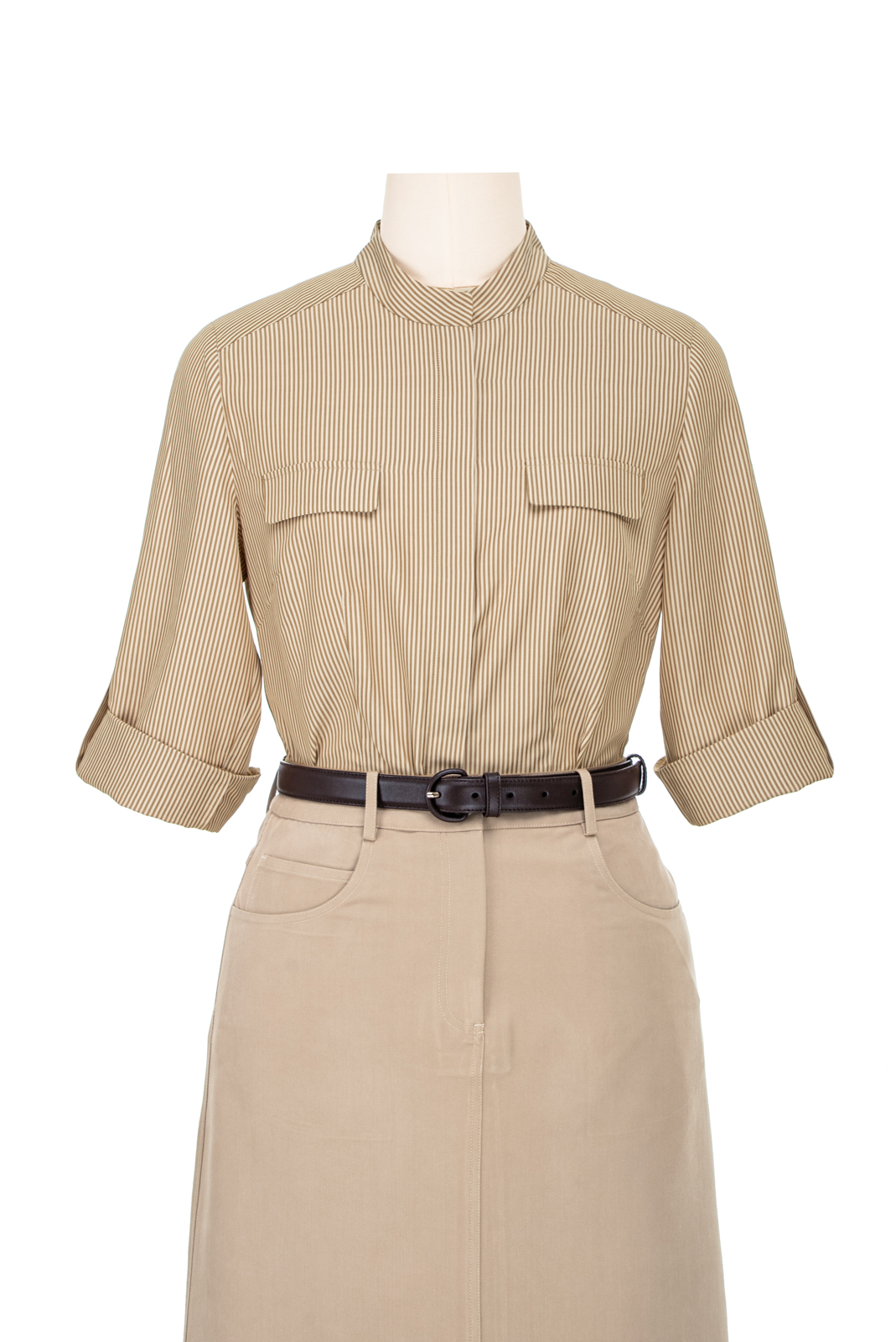 看不见的决定看得见的,这是内心的抉择,是信念的宣告,如何相信就会如何去生活,容不得作假。正如这件经典衬衫所传达的气质是坚定信念呈现出的迷人魅力。它条纹清晰流畅,两个对称装饰袋盖增加飒爽的姿态,经典小立领和简约的暗门襟形成利落风格,七分袖设计加入卷袖造型,让形象果敢而干练,天丝混纺面料舒适的同时有款有型。整体风格在简单之中有深刻的精神,在轻松之中蕴含不松垮的轮廓,无论在工作还是休闲场合,都能传递出淑女坚持美善的信心与宣告!