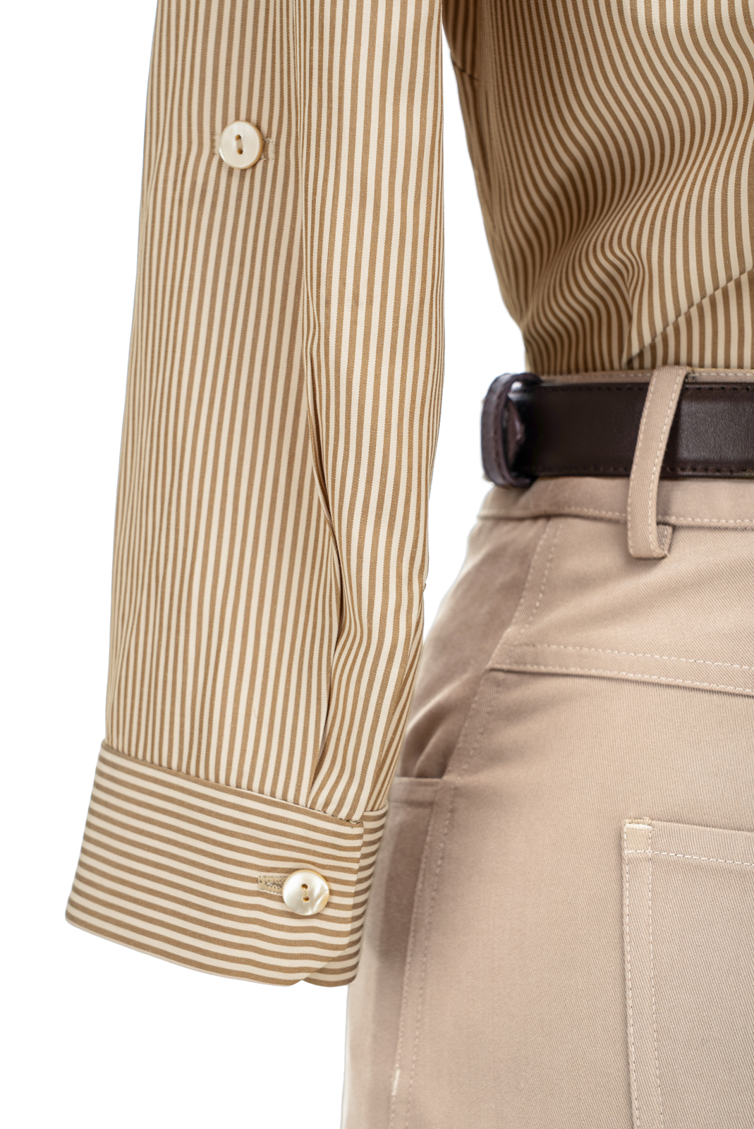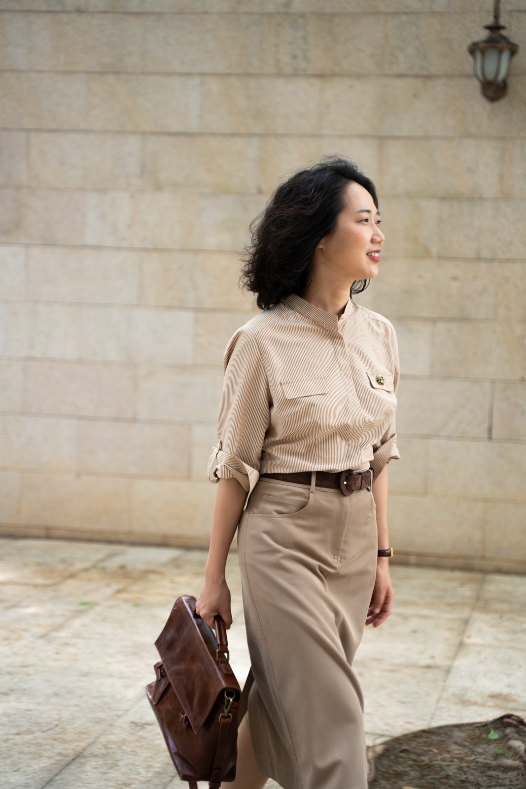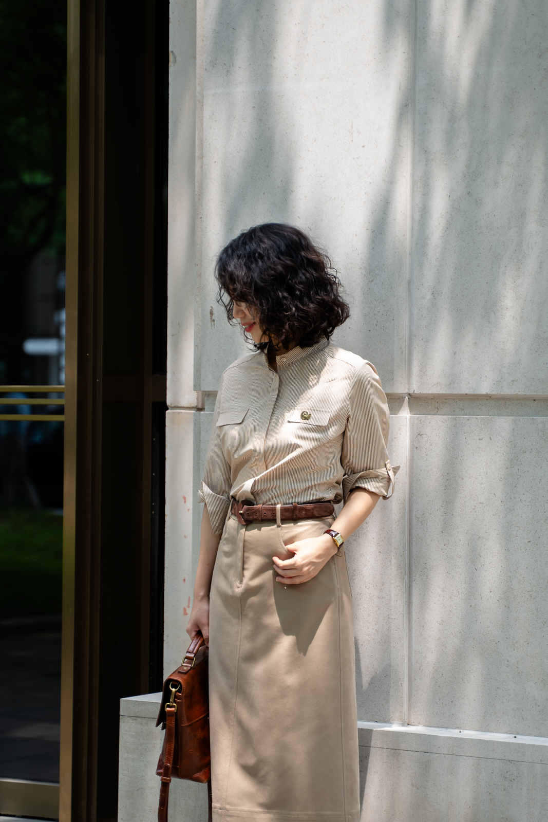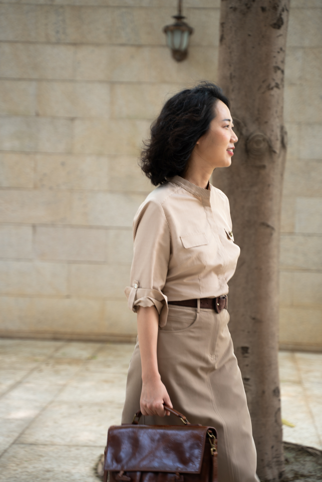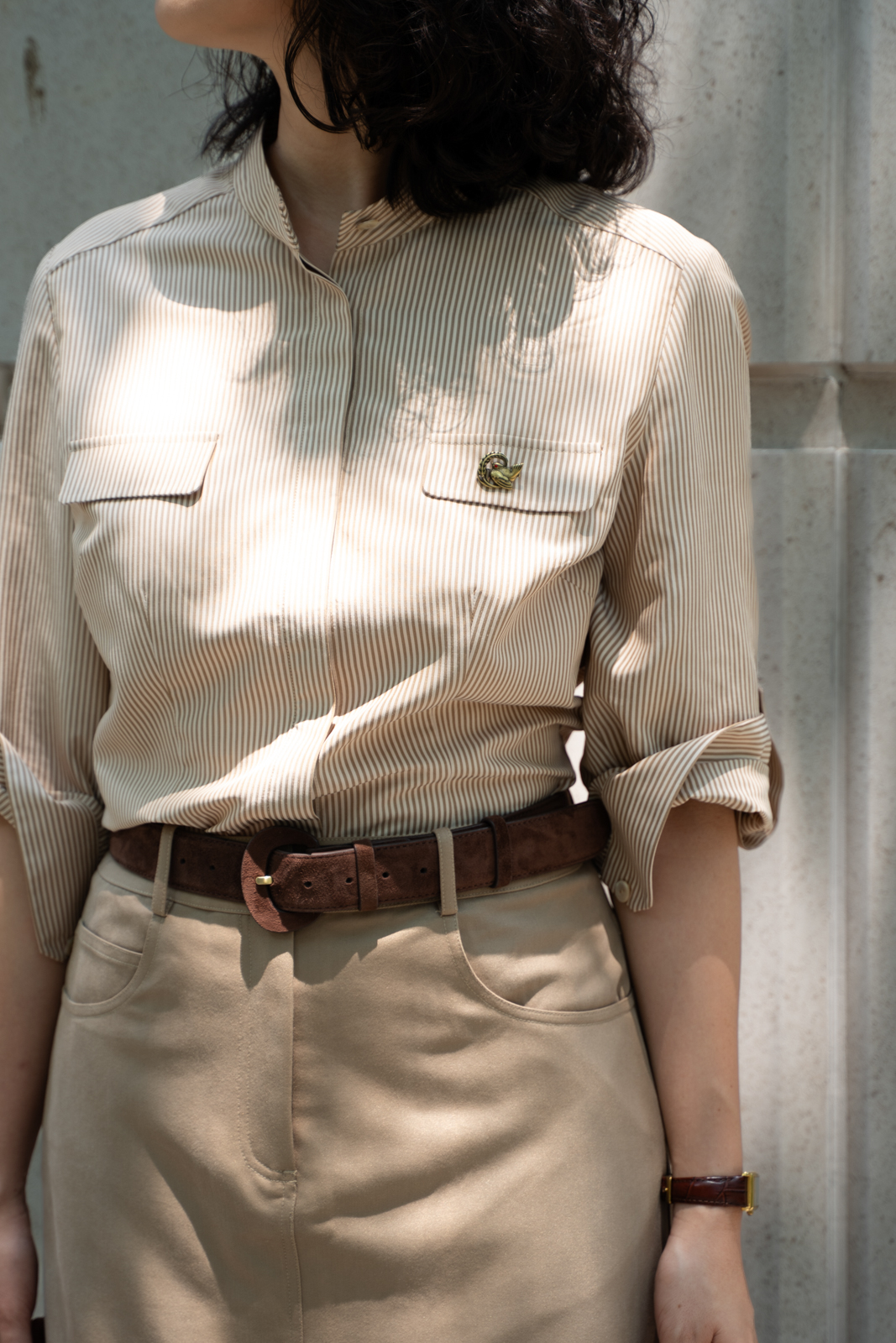 看不见的决定看得见的,这是内心的抉择,是信念的宣告,如何相信就会如何去生活,容不得作假。正如这件经典衬衫所传达的气质是坚定信念呈现出的迷人魅力。它条纹清晰流畅,两个对称装饰袋盖增加飒爽的姿态,经典小立领和简约的暗门襟形成利落风格,七分袖设计加入卷袖造型,让形象果敢而干练,天丝混纺面料舒适的同时有款有型。整体风格在简单之中有深刻的精神,在轻松之中蕴含不松垮的轮廓,无论在工作还是休闲场合,都能传递出淑女坚持美善的信心与宣告!