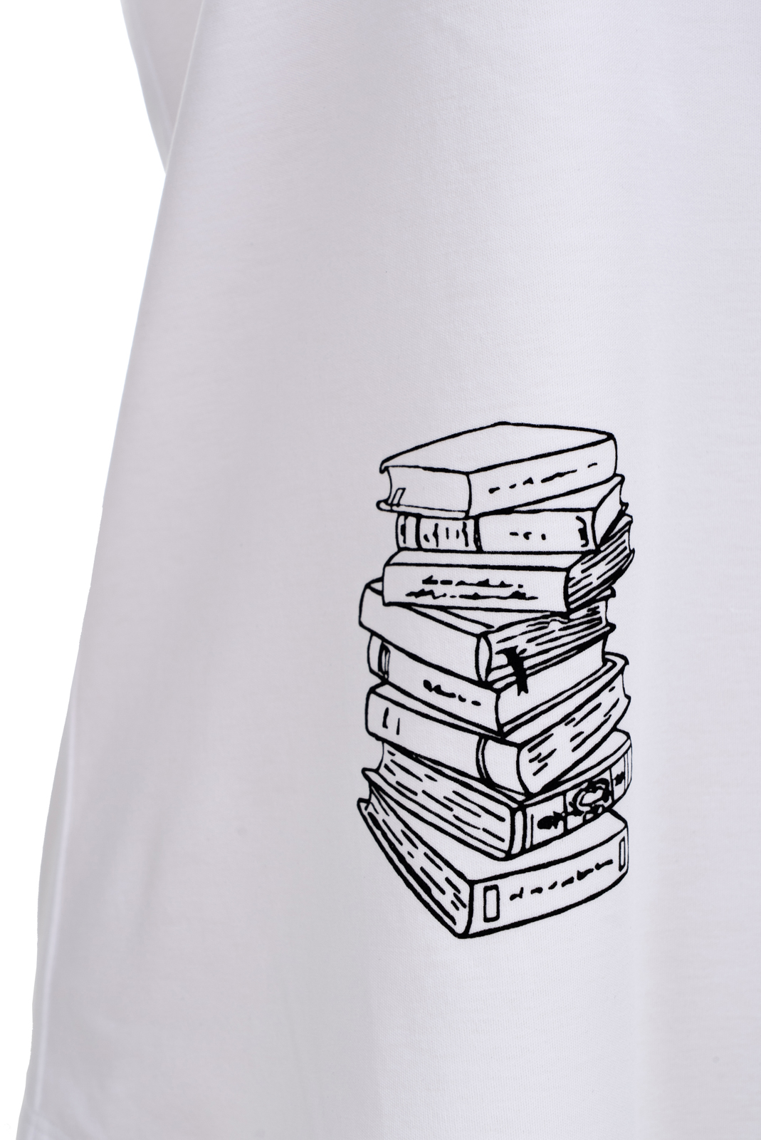 玛亚老师曾说过:“对我来说,白色T恤意味深长,历史纯净,未来神秘,它的寓意总是等待着被填写。” maia’s倾情推出“书卷青春”印花T恤,用爱守望青年人,祝福他们都能在人生书卷上谱写出美好章节。T恤右下角手绘书本图案的印花精细立体,以此无声宣告maia’s所持守的理念:为建造生命、获得内心的光明与力量而阅读!盼望青年人在阅读中畅饮深刻的思想,抵御无知与荒谬,聆听真理的启示,书写荣耀的未来……
