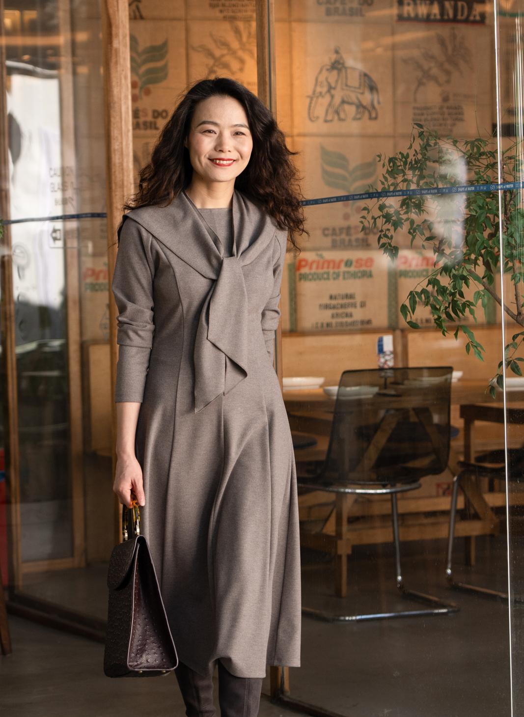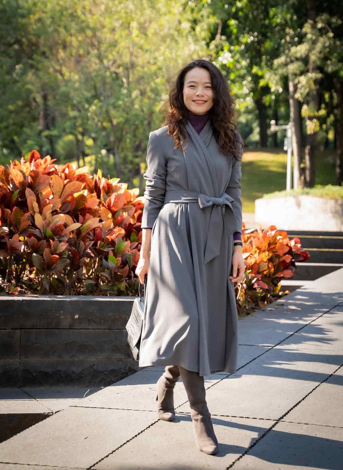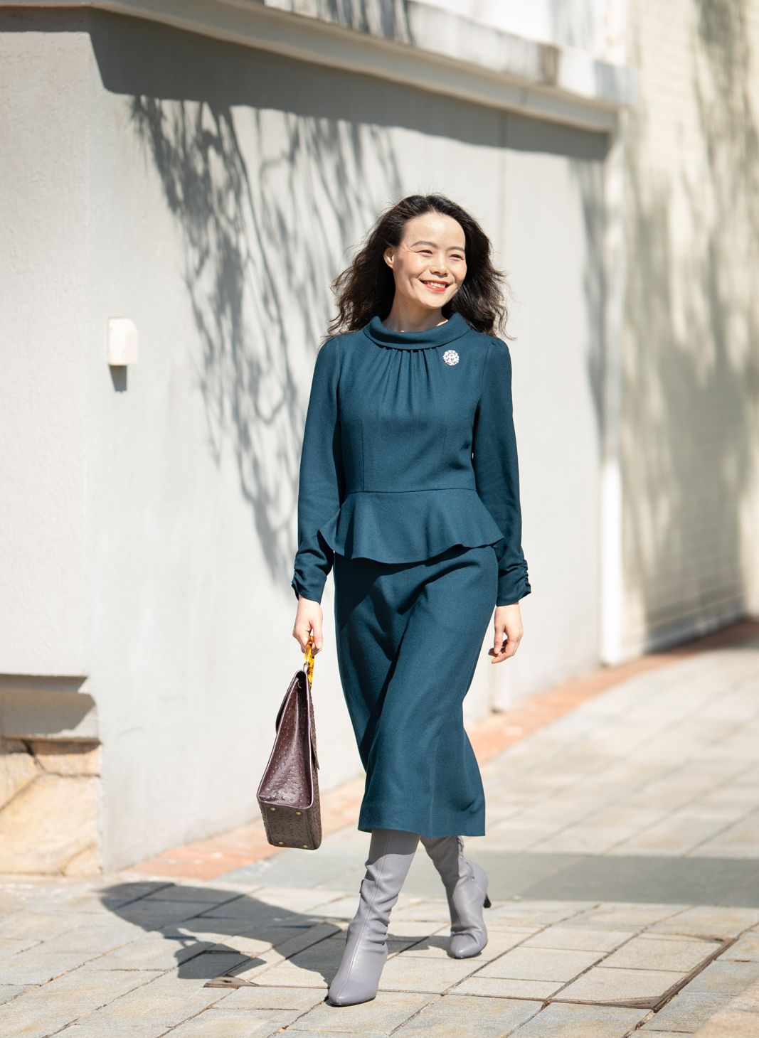 心中仰望真理的淑女,能够穿越纷繁喧嚣的凡尘,成就卓然脱俗的生命……幽幽深蓝,释放出淑女内心深沉美好的信念;智识条纹,透露着淑女一如既往的坚实哲思;精良绵羊毛,流露着淑女柔软芬芳的气韵。经典的最大魅力在于恒久美丽,细细品味,“你的不凡穿尘而过”是知性淑女越穿越精彩的裙装……复古雅致的翻领,与弧形的腰部袋盖及袖口波浪反折设计相呼应,彰显出淑女的不凡:坚定却不乏端丽的女人味,理性但趣致横生。精致的本布包扣和腰部碎褶不仅增加内敛气质与层次感,也...