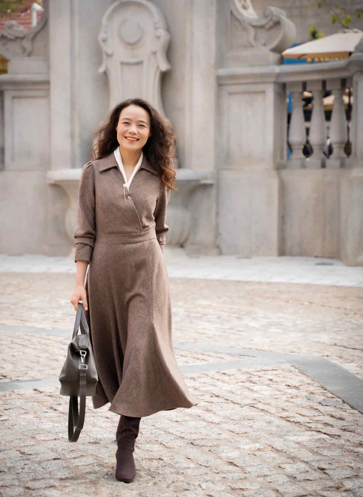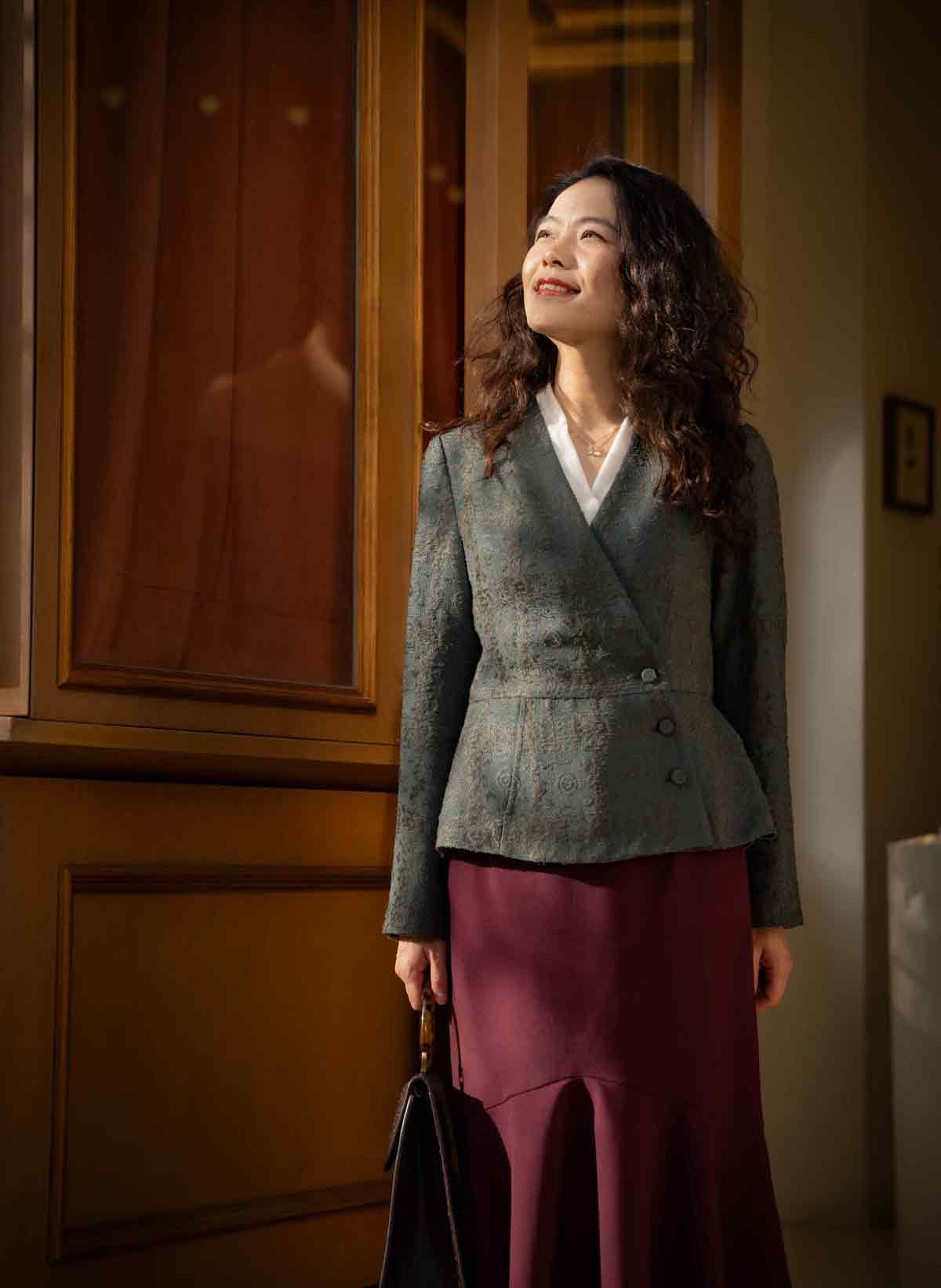 美妙的配乐让音感丰富有层次,总能将主题衬托得鲜明生动,而衣橱里如何能少了美妙的配乐呢?完整的造型要有主有次、有轻有重,搭配比例得当才精彩、才好看……“美妙配乐”像一曲发自肺腑倾泻而下的乐歌,有流畅的线条,有飘逸的动感,不规则的压褶方式充满情感的张力,如同起伏的音符组成美妙的配乐……使用3米多富足的进口面料制作却不显膨胀,细致巧妙的压褶艺术带来紧腰松摆的韵律,令它站立是收缩的、走动时是飘逸的,有垂坠的灵动之美。色彩性格谦逊包容的灰色有着细...