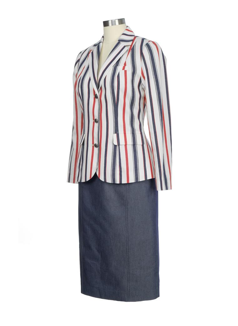 这款经典的铅笔裙,因着前片的两道明线设计,凸显出优美的结构感;散发着淡雅光泽的灰色,与上衣同色系条纹形成了美妙的呼应——亲爱的淑女们,愿这“慷慨”之光照进我们的生活,成为心中长久的满足和喜悦…… |