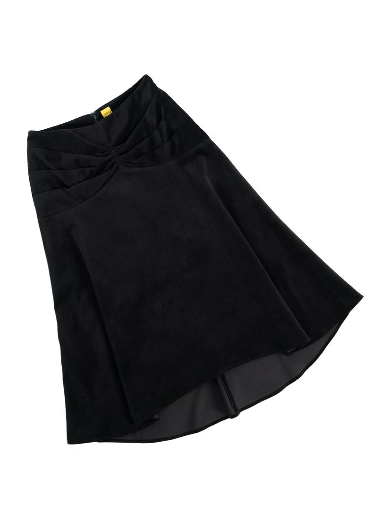 玛亚系列的这款半裙,有着令人着迷的设计感——黑色的纯棉平绒面料,低调华美;曼妙修身的A型裙摆,灵动优美;尤其是前腹部的掐褶设计,是最为精彩的设计亮点——心有美善的淑女,她的美不张扬、不炫耀,却总是能为她的所到之处,带去“文采熠熠”的诗意与智慧…… |