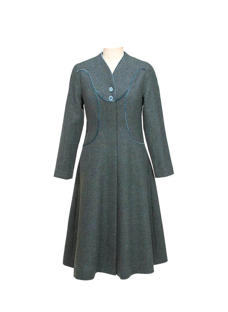 这款简洁却很有设计感的纯羊毛连身裙,采用了无腰线的设计,再配上疏朗有致的内工字褶伞型裙摆,自有一种张驰有度的美感;尤其是领口处镶拼的那一片弧形花边,恰如一份精致优美的心意——那是柯丽的告白:黑夜越深沉,真理的话语就会越明亮、越真实、越美丽…… |