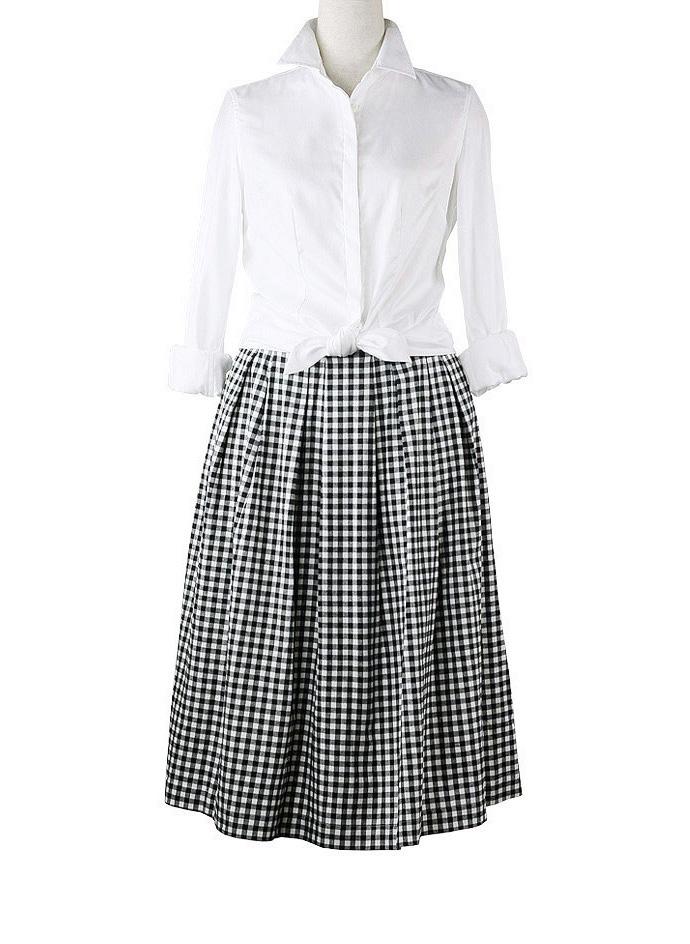 在她的微笑里,有着经历风雨的淡定,有着笑看风云的从容,这就是一位“公爵夫人”的气度与魅力……maia's的裙装总会有一抹惊喜的韵味令人着迷;这款半裙用经典的英伦格纹营造出纵横交错的美感,既优雅端丽又别致动人……