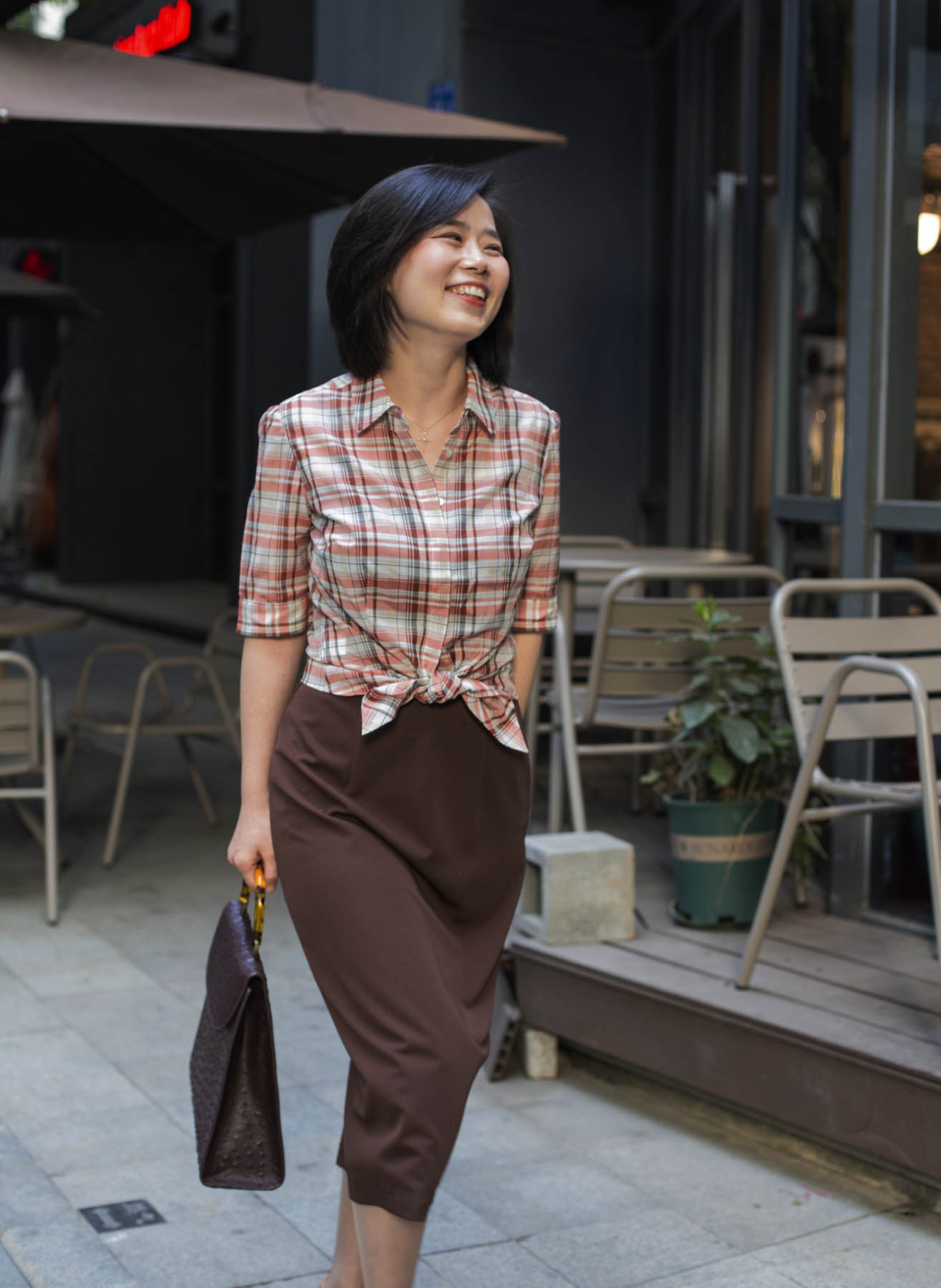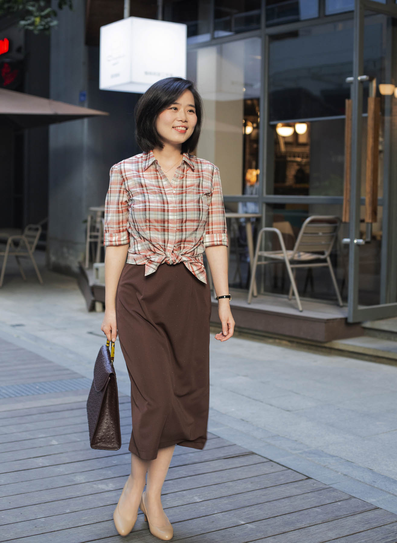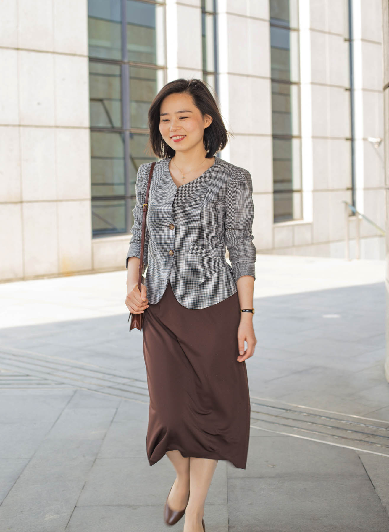 颇具美感的一字型领口,尽现纤细的脖颈线条,也为外搭的服饰提供了恰到好处的分寸;裙摆后侧的开叉设计不仅能在步履间释放若隐若现的灵动美感,勾勒着女性的端丽从容的姿态。咖啡色“容光”的独特之处还在于面料中加入了细小的烫金,更显绰约华丽之美。搭配华丽披肩,可塑造晚间社交造型;日常穿着,颇具合作精神的它,可轻轻松松与衬衣、jacket、卡丁衫等单品精彩联袂。