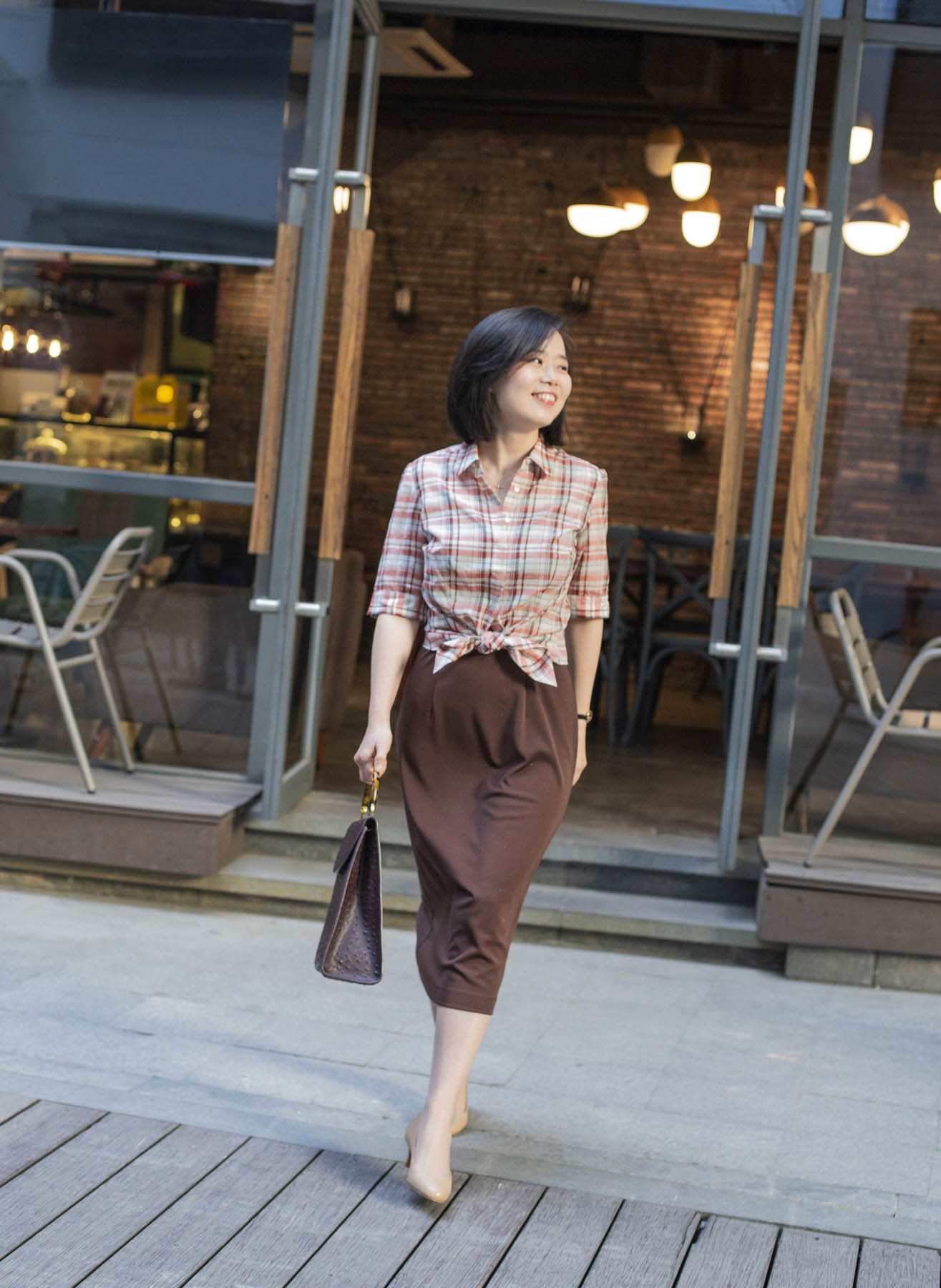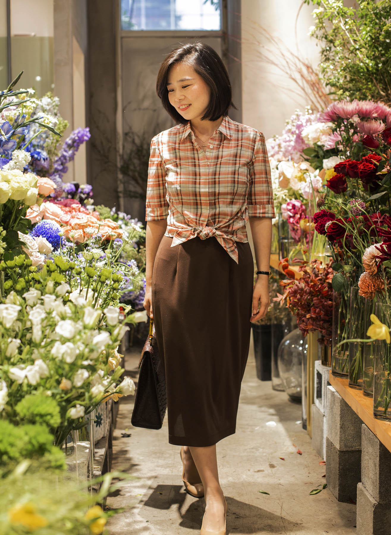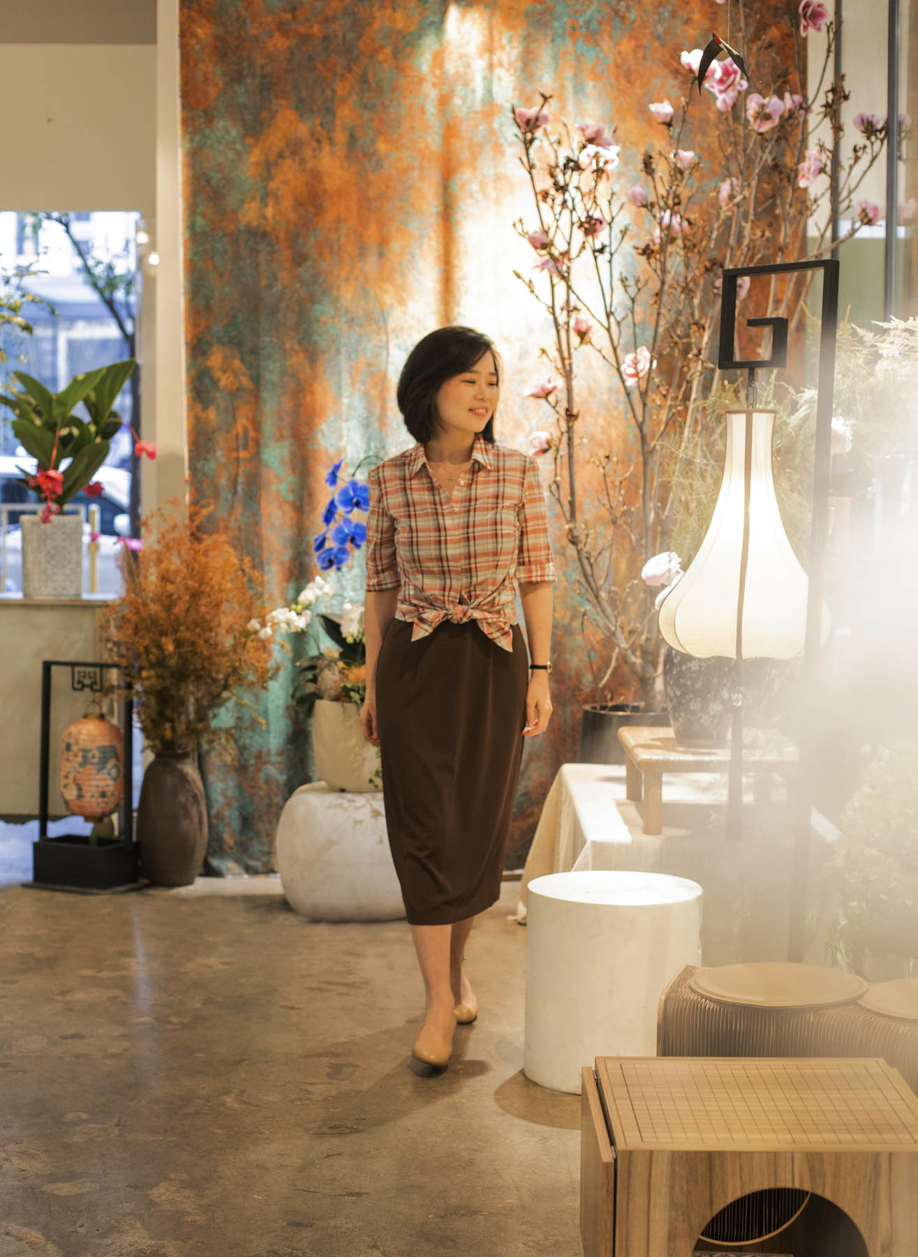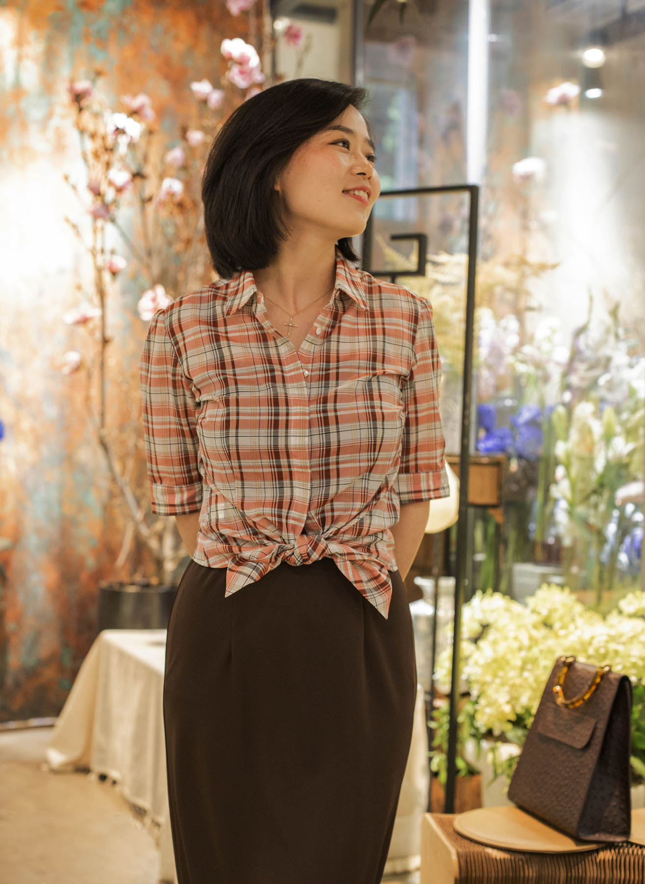 颇具美感的一字型领口,尽现纤细的脖颈线条,也为外搭的服饰提供了恰到好处的分寸;裙摆后侧的开叉设计不仅能在步履间释放若隐若现的灵动美感,勾勒着女性的端丽从容的姿态。咖啡色“容光”的独特之处还在于面料中加入了细小的烫金,更显绰约华丽之美。搭配华丽披肩,可塑造晚间社交造型;日常穿着,颇具合作精神的它,可轻轻松松与衬衣、jacket、卡丁衫等单品精彩联袂。