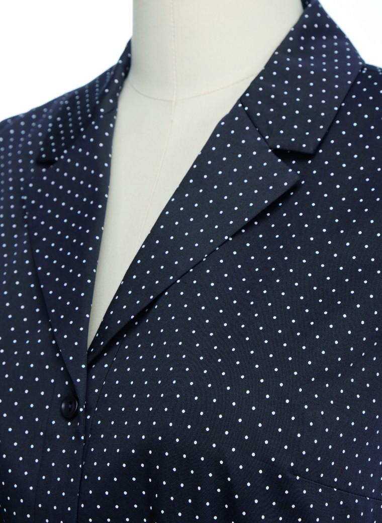 这款衬衫裙以雅致而沉静的蓝白色波点,尺寸适度的小半袖设计,带来了灵气动人的魅力空间。