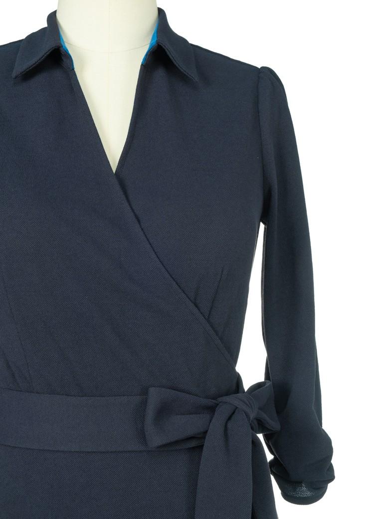 这是一款浪漫的裹身式连身裙——纯棉针织面料舒爽透气,七分抽褶袖优雅舒适;那一条荷叶边从腰间蜿蜒而下,曼妙地串连起整个裙摆,就像是盛夏的荷塘美景令人畅想……这正是淑女应有的仪态——要让盛开的生命,不断地释放出流水清芬般的迷人香气…… |
