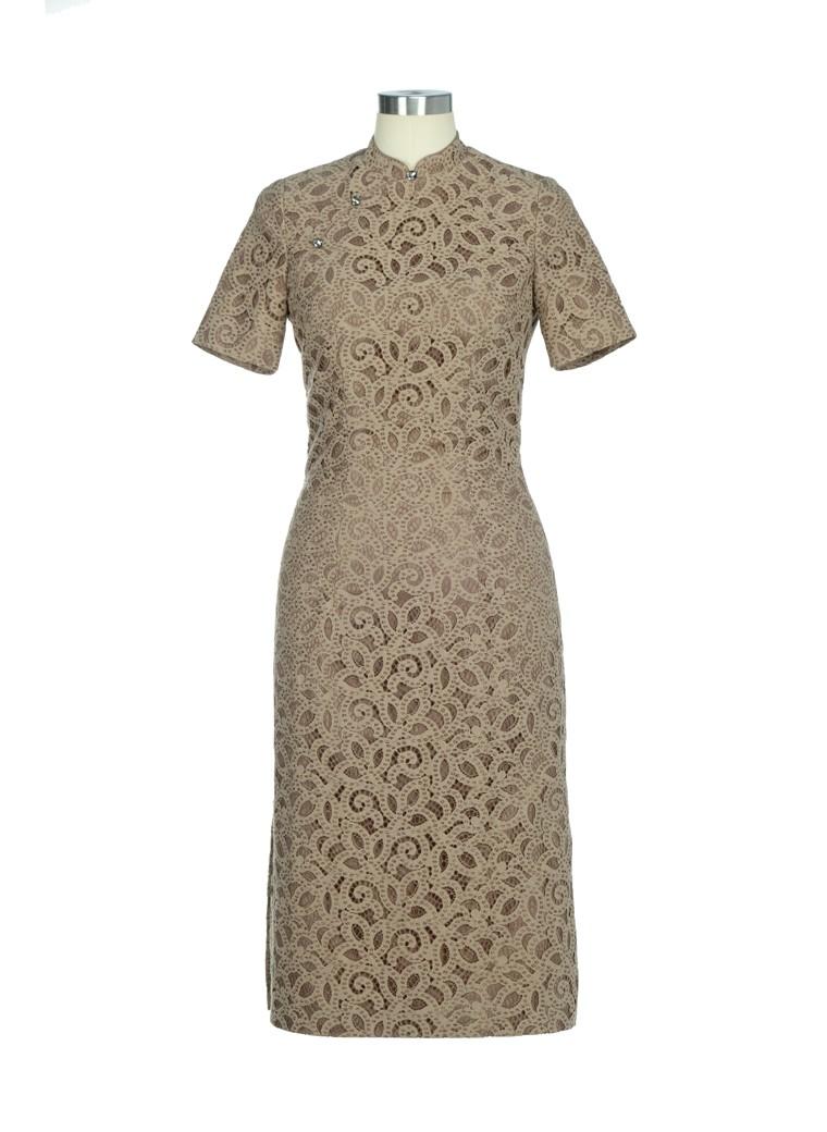 闪烁的镂空蕾丝配上精美的水晶扣,亦如生命之树发出的光亮;丰盛的绿橄榄色,恰似那开满枝头的青果成长和蕴蓄的颜色……这款精致瑰丽的旗袍在昭示我们——淑女的生命,是枝繁叶茂的生命,只有一生追索、持守美好,才能品尝到那“青果余甘”般的滋味…… |
