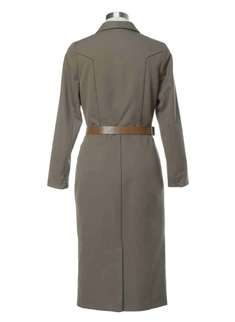 无论是何种境遇,她都能在某种自由之中,做出令人感动的反应、带来美感的反应、从容智慧的反应——这就是淑女本色,始终都能做出优雅的选择…… 淡淡的人字格纹印在深灰的底色上,体现着沉静安稳的淑女气度;简洁知性的款式、不紧不松的轮廓,以及袖子的斜裁和抽褶设计,表达着恰到好处的优雅尺度——一款经典的连身裙,带来的就是备受尊荣的“淑女本色”……