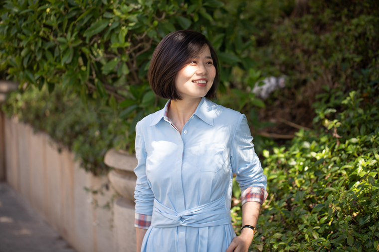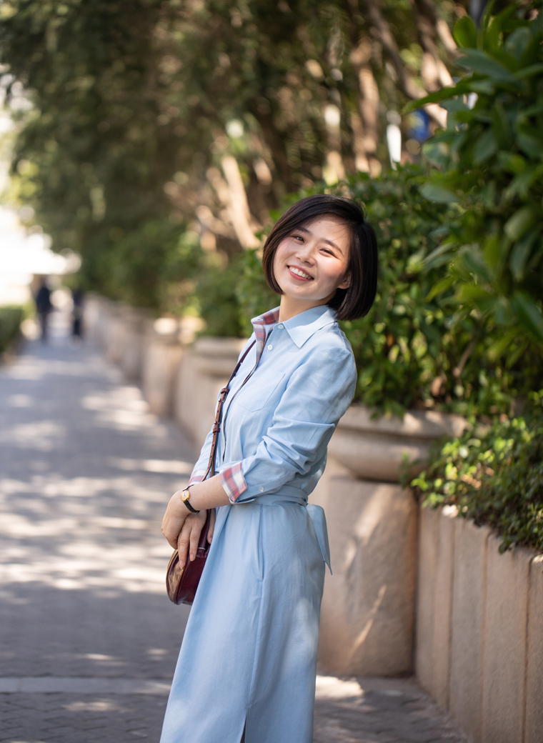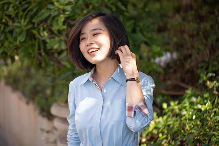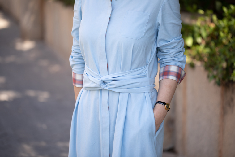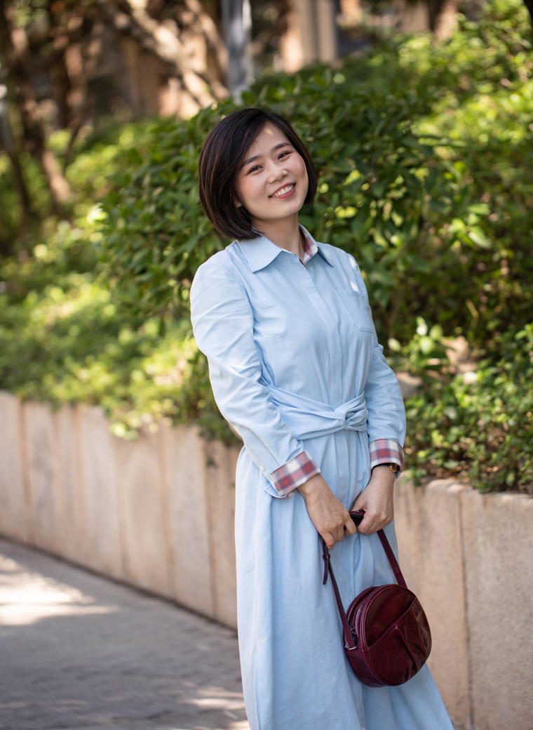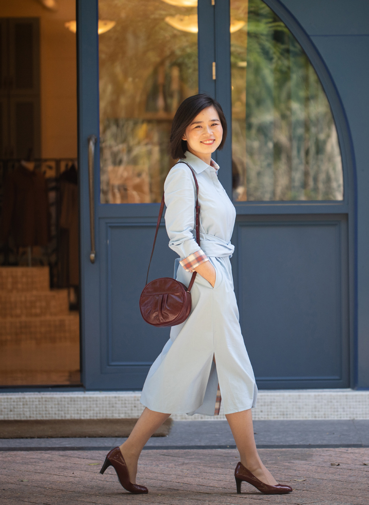 无论是面对突然的骤变、受限的环境还是不定的未来,真正的淑女有着不被限制的宽广的心!明净的天空蓝,象征着淑女的纯一清洁,腰带的扭结仿佛点题似的表达着淑女坚强的持守,也使经典的衬衫裙,营造出盈盈一握的柔软和纤细;暗门襟带来含蓄沉静的细节;袖口与门襟的格纹拼接增加了丰富与深沉……淑女们的海阔天空是在内心,是阴晴圆缺都可翱翔的所在,那是一片无法剥夺的感人天地……