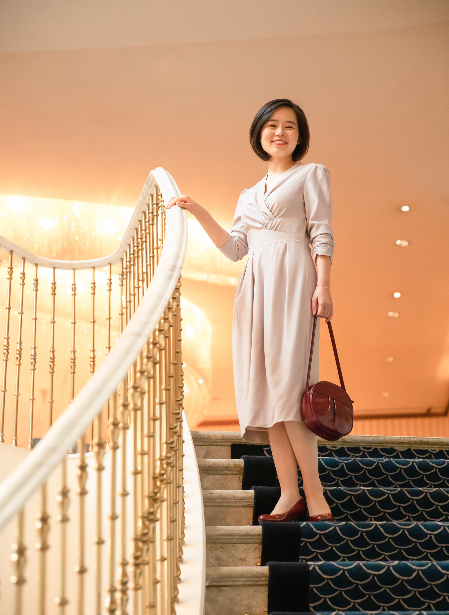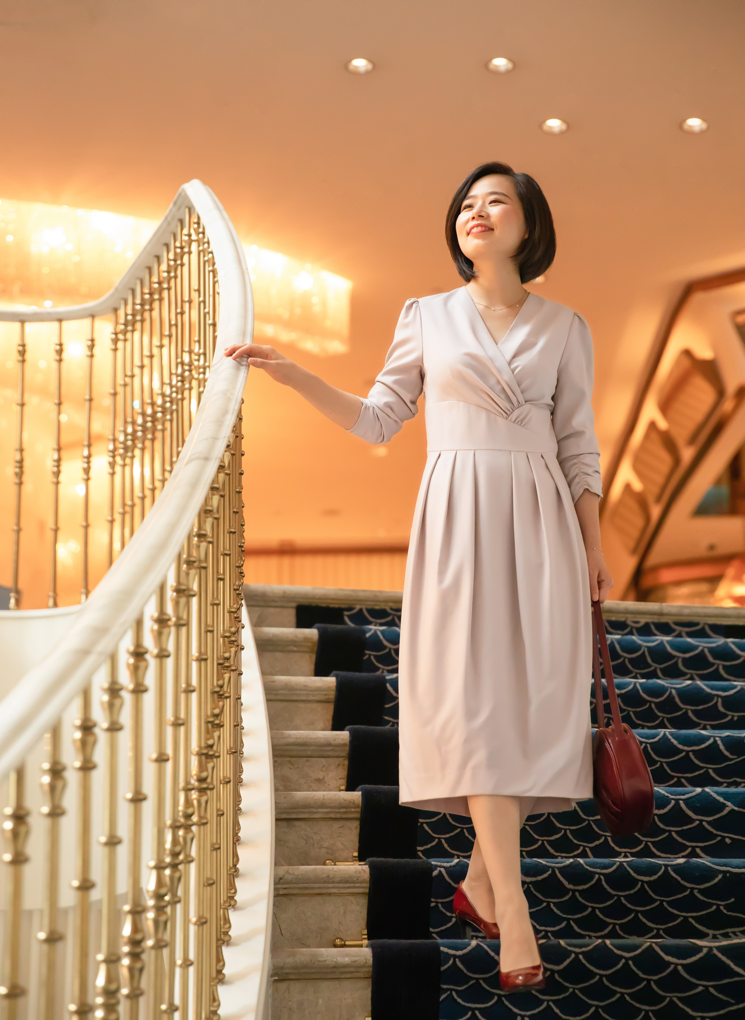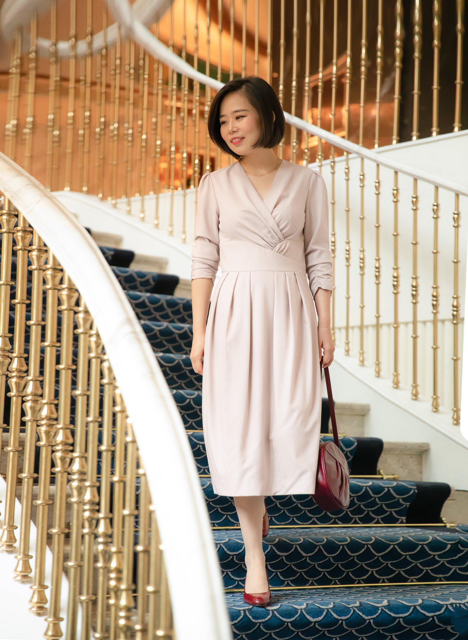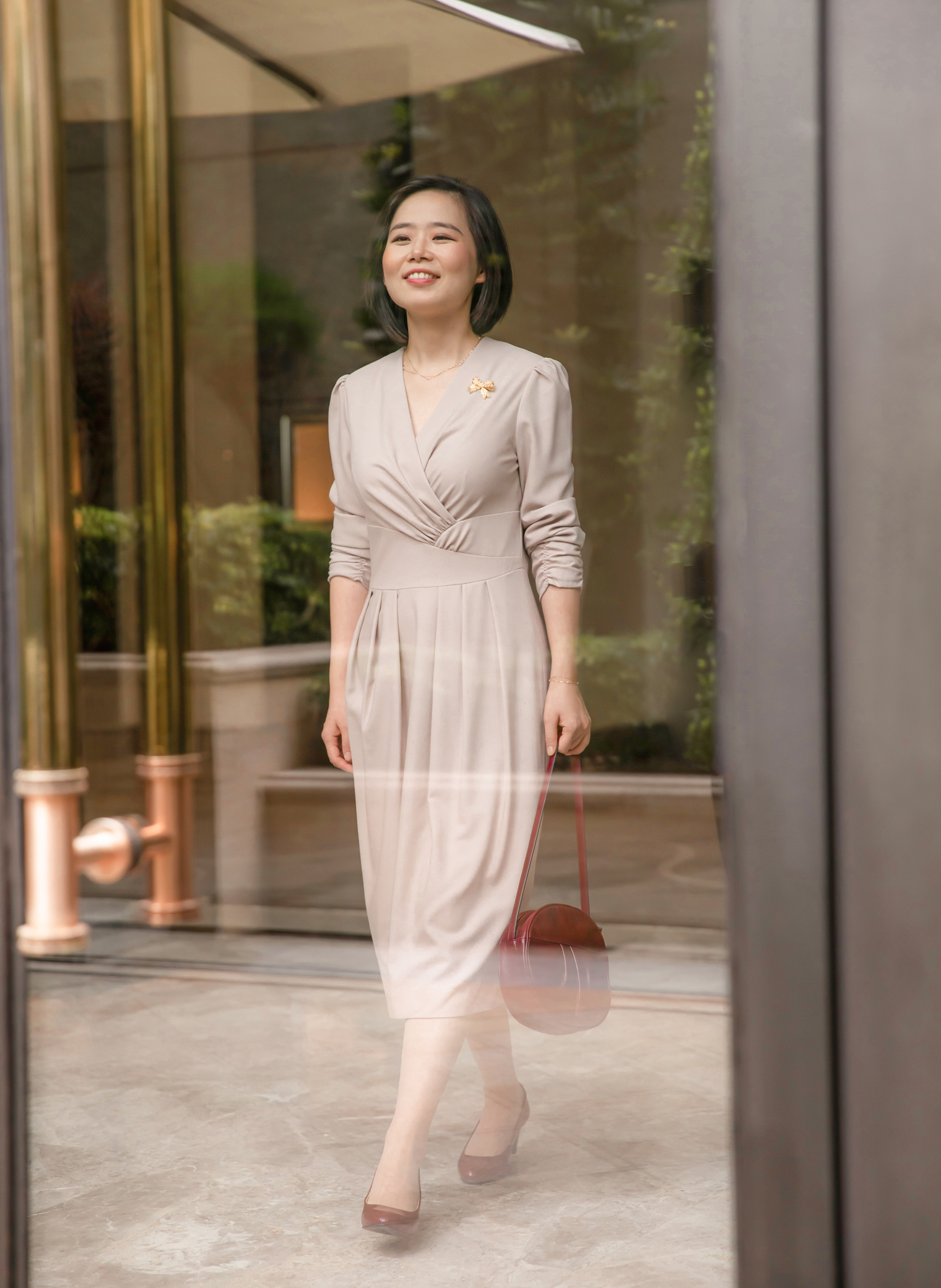 意大利面料制作工艺出品的全羊毛面料精致细腻,色泽高雅、柔腻,呼应着淑女内里的荣美与尊贵。此款连身裙看似简洁实则蕴含巧思,传递出力量感;优美不规则的腰部设计,能适应不同身高的淑女,展示美好比例,上半身的交叠式两襟上丰富的碎褶,渲染着古典的美丽,也如“慧美的以斯帖”卓绝的缜密、勇气、过人的睿智,面对艰险将万千思绪和忧愁归向心中的平安、信心和舍己。裙身简洁利落有份量,犹如光洁的大理石温润安稳;愿每一位淑女因内心有真理面对人生就有力量,形象有尊荣,心中有平安!